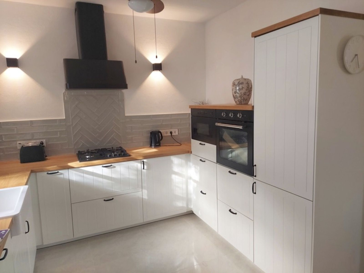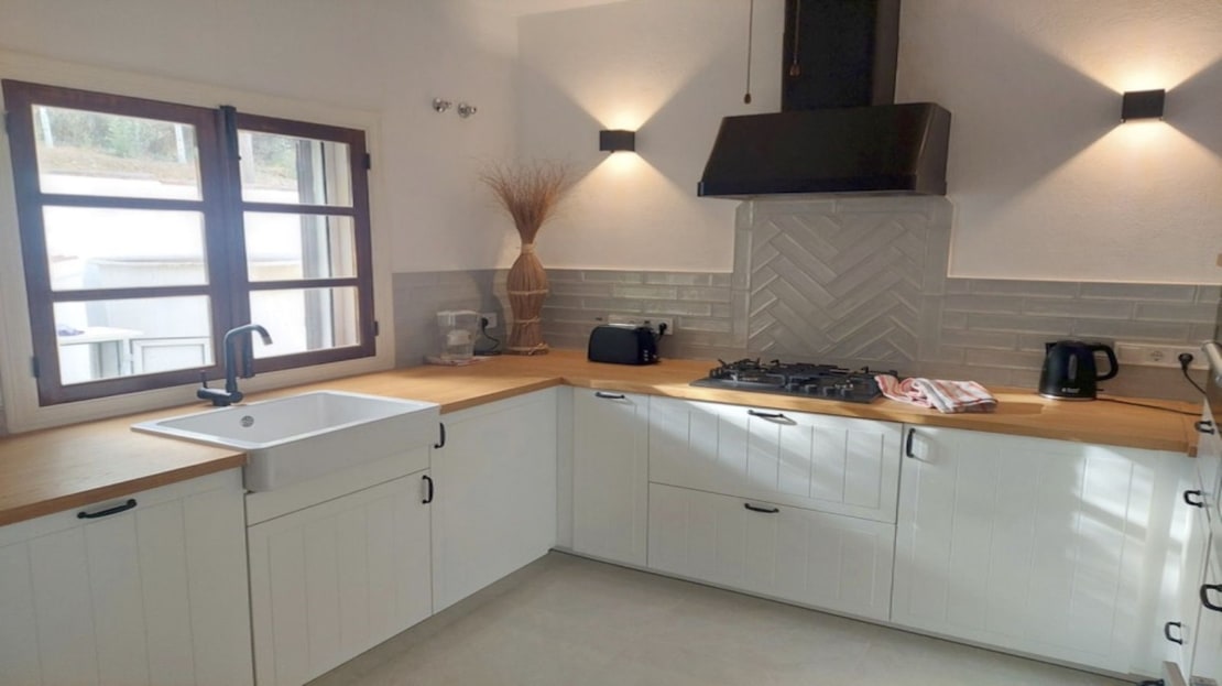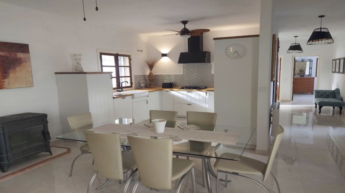 The accommodation briefly comprises: Covered porch and entertaining area, Open-aspect living and dining room with log-burner, very well fitted new kitchen with quality appliances including integral fridge and freezer, built-in oven (unused) with matching microwave, gas hob (unused), and integral dishwasher. There are ample oak work surfaces and a super selection of cupboards and deep storage drawers. The property is fully air-conditioned (hot and cold), and there are 2 new instant hot water boilers (gas).