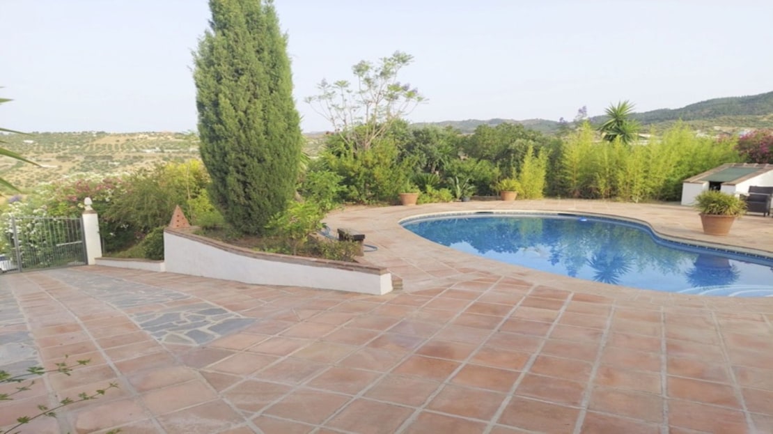 Returning to the covered terrace and you will find a separate utility and storeroom with a new Samsung washing machine. There are various seating areas around the house, a pergola and as aforementioned a very welcome, kidney shaped swimming pool. The established garden is landscaped and mature and there is a pleasant lawn area for happy family gatherings. The property is fully fenced, has automatic gates, and has parking for at least 5 or 6 vehicles. Access roads to the property are asphalt and concrete. There are lovely mountain and countryside views.
