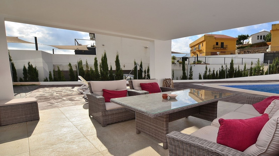House with pool, large terraces and garden.