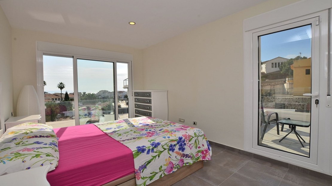 -Top floor: Master bedroom, 2nd bedroom, bathroom and terrace with partial sea views.