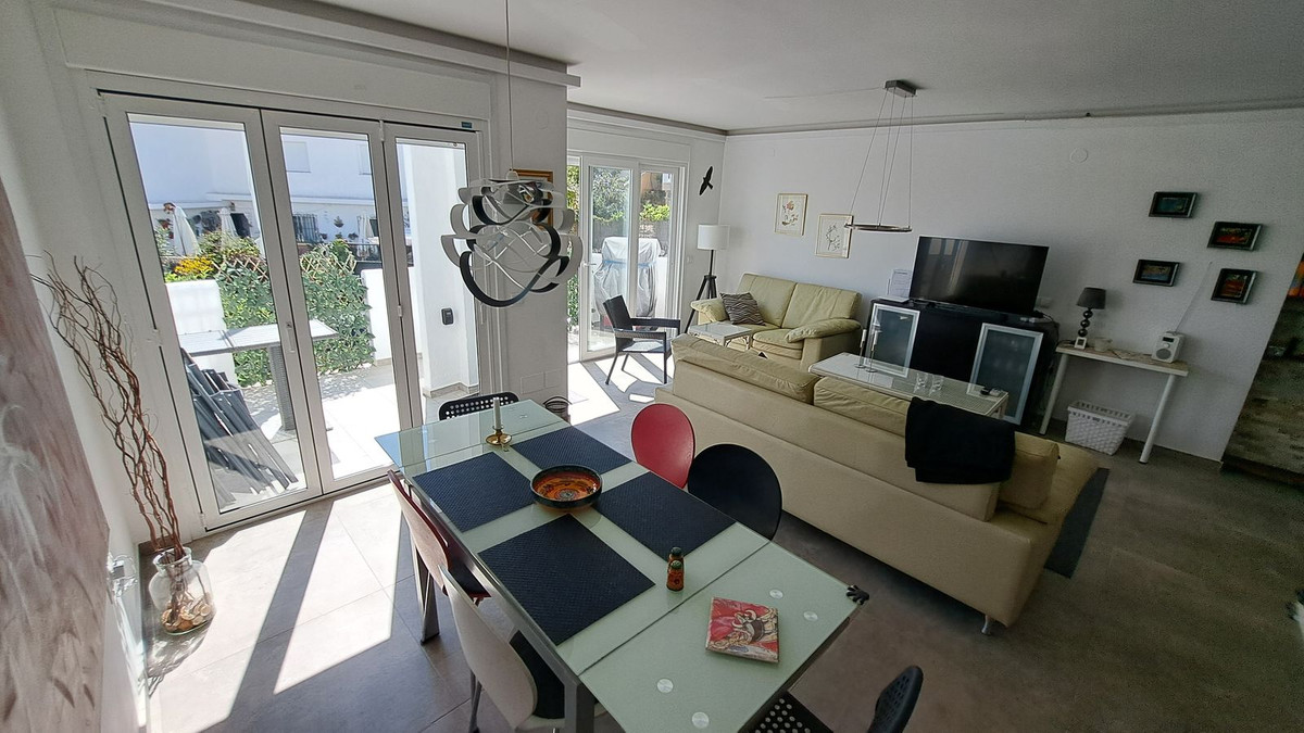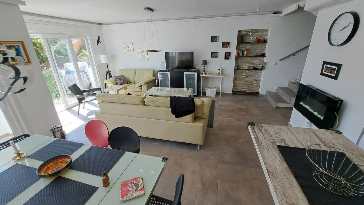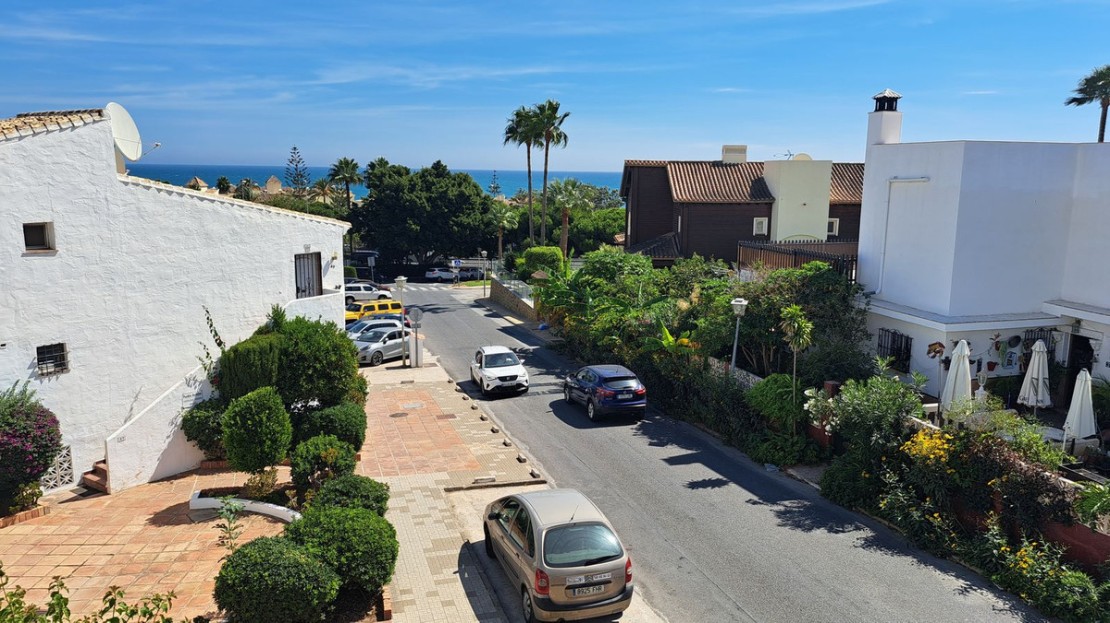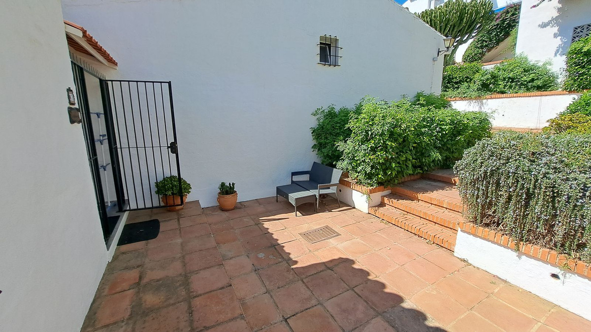 This fantastic semidetached house is in a small Andalusian style complex of townhouses, semi-detached houses with communal gardens, large swimming pool, kid's splash pool, located within 200 metres from the beach on the eastern side of the urbanisation Torrenueva in Mijas Costa, the largest municipality on the Costa del Sol with 14 kilometres of wonderful beaches, stunning mountains and numerous golf courses, with wonderful urbanizations.