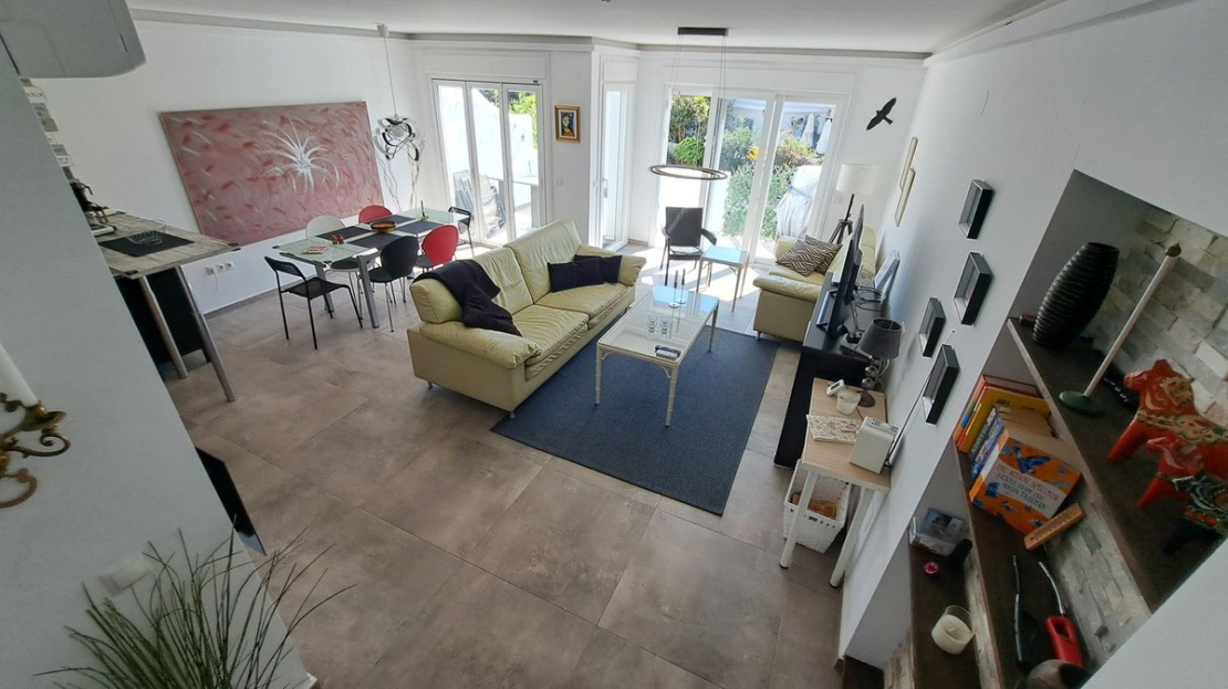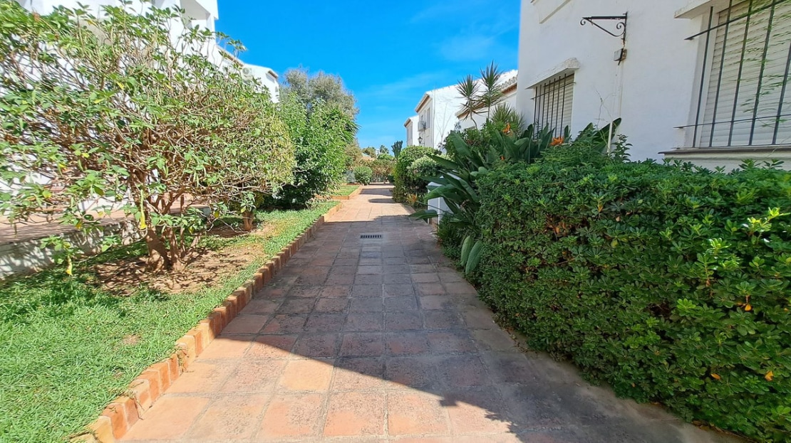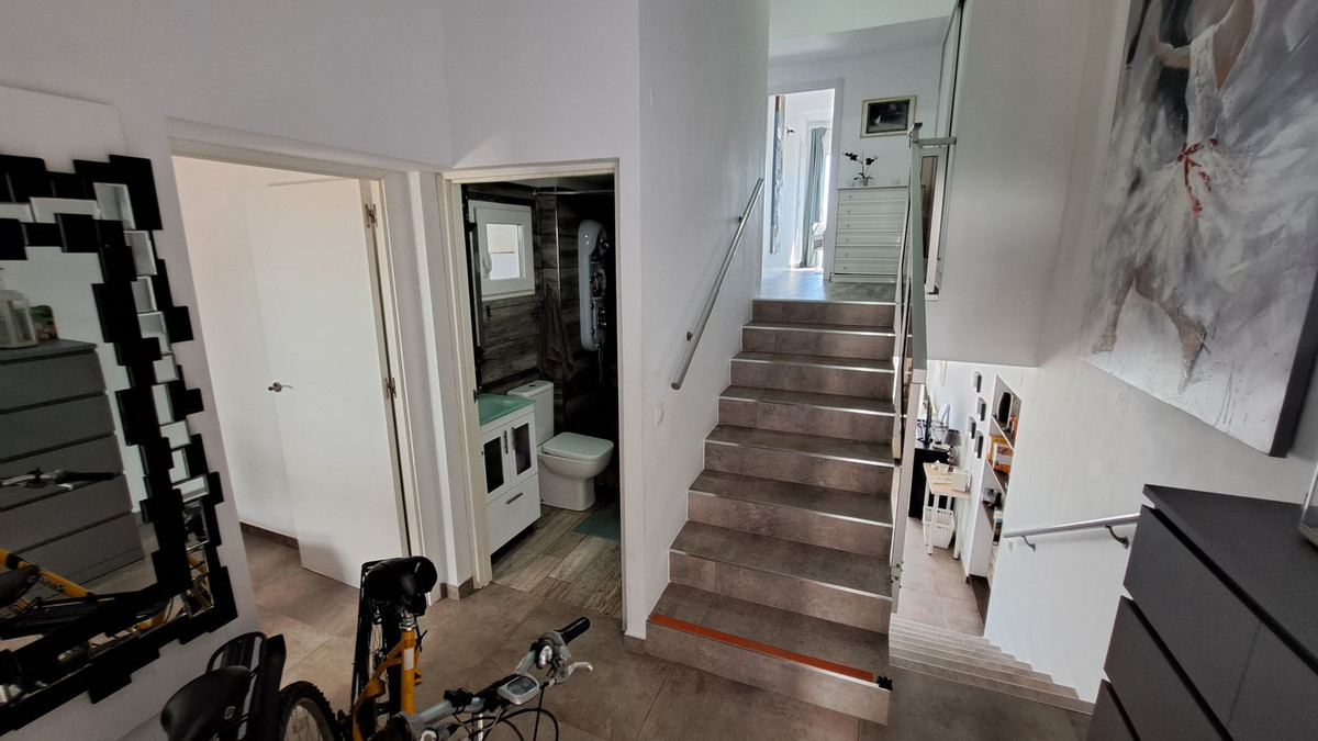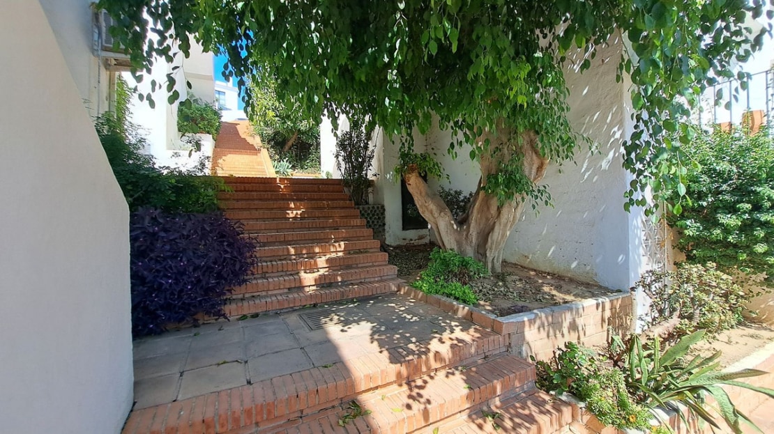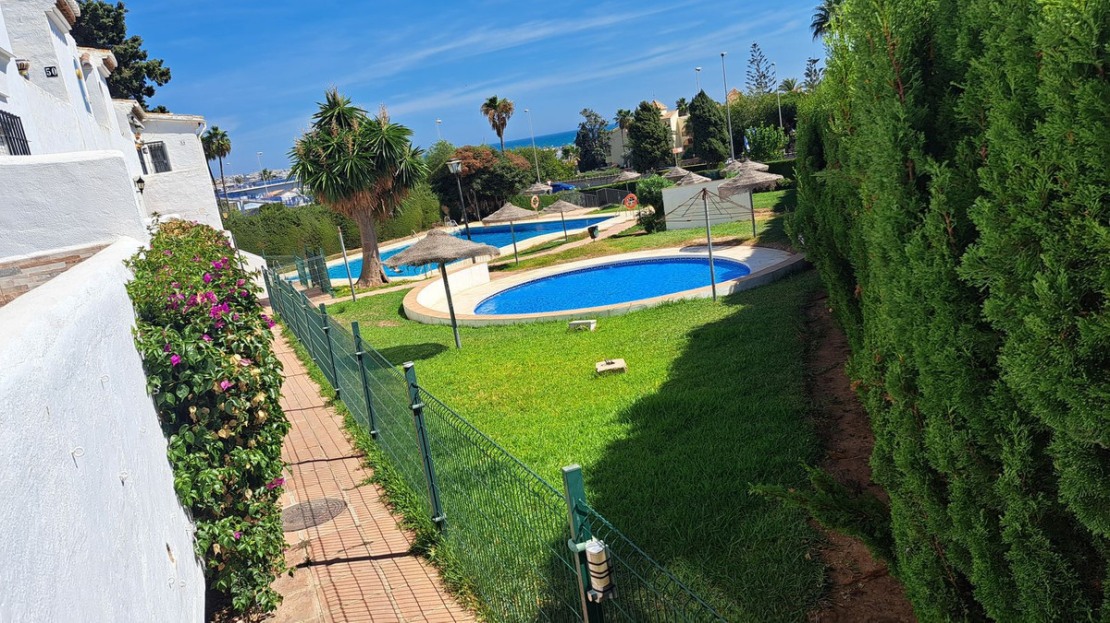 This fantastic semidetached house is in a small Andalusian style complex of townhouses, semi-detached houses with communal gardens, large swimming pool, kid's splash pool, located within 200 metres from the beach on the eastern side of the urbanisation Torrenueva in Mijas Costa, the largest municipality on the Costa del Sol with 14 kilometres of wonderful beaches, stunning mountains and numerous golf courses, with wonderful urbanizations.