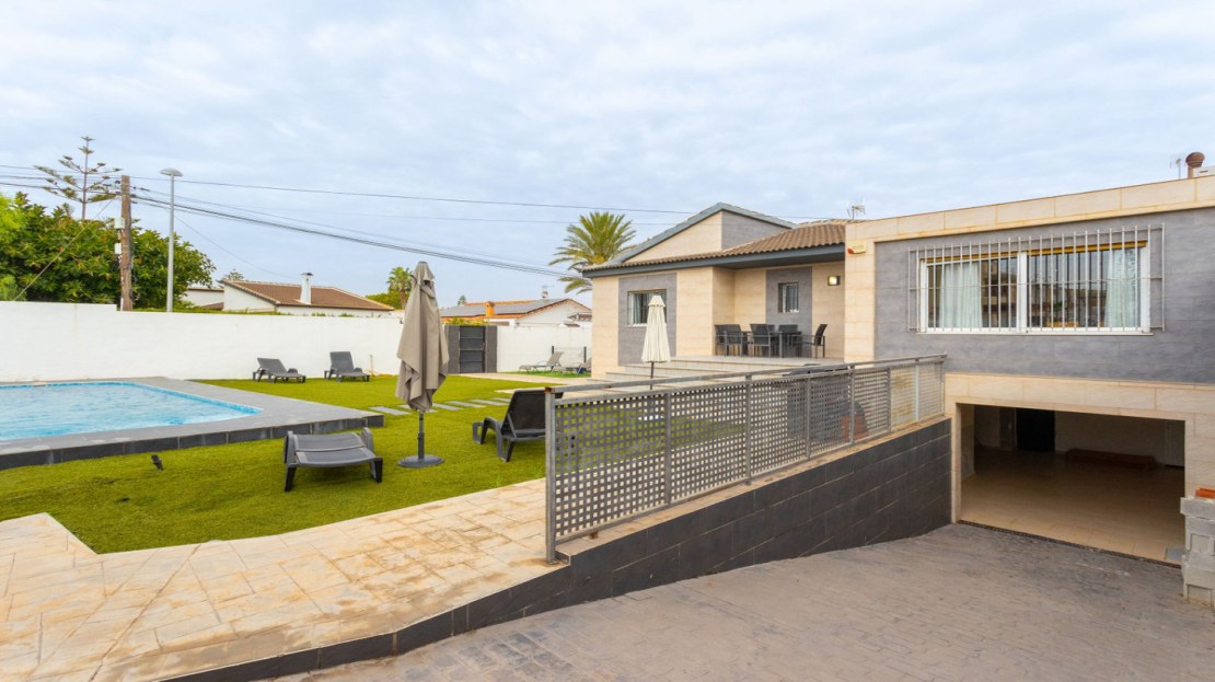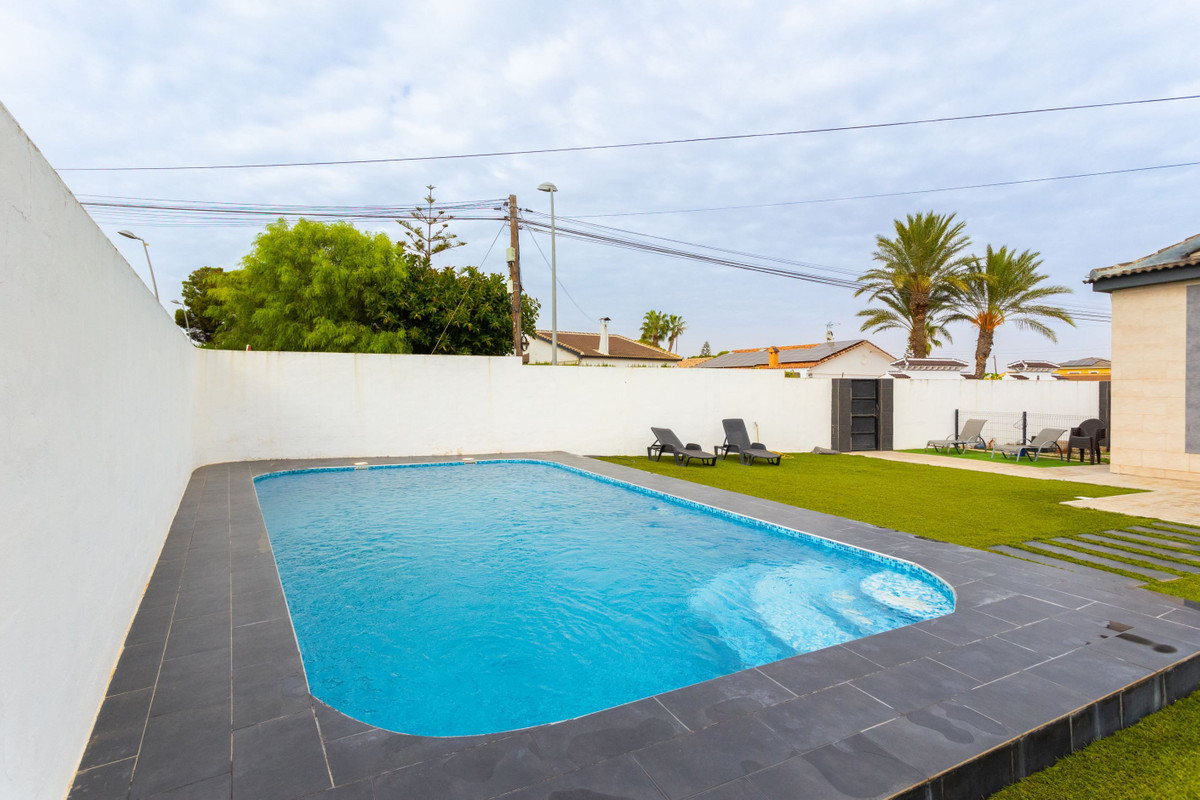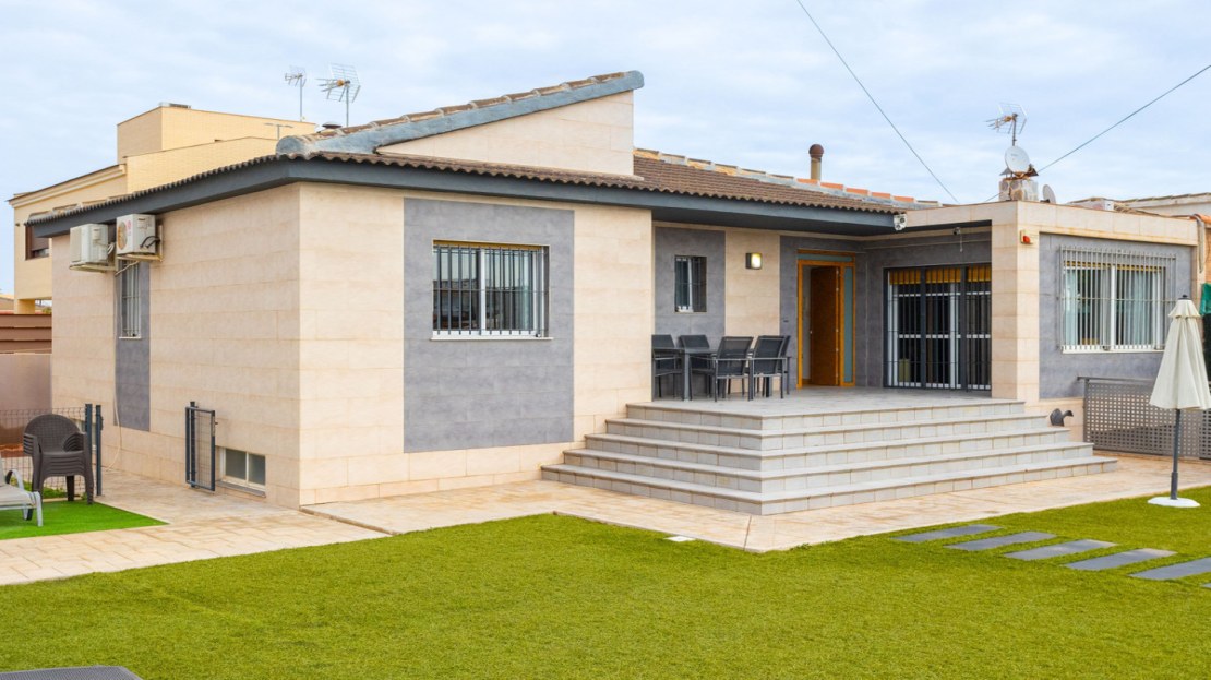 Villa with large plot and private pool in Los Balcones Welcome to the popular area of Los Balcones on the southern Costa Blanca and this well-planned villa with a large plot and a private pool. The villa has three bedrooms, two bathrooms, living room and kitchen as well as a basement.