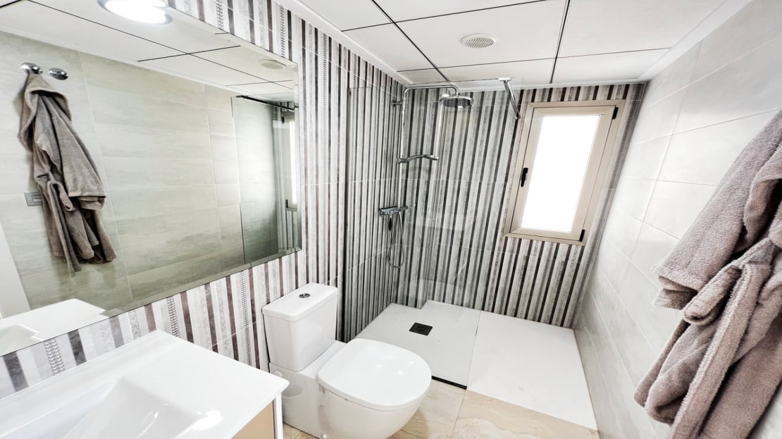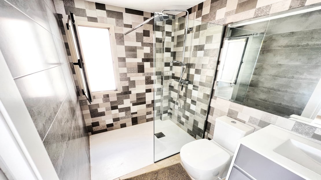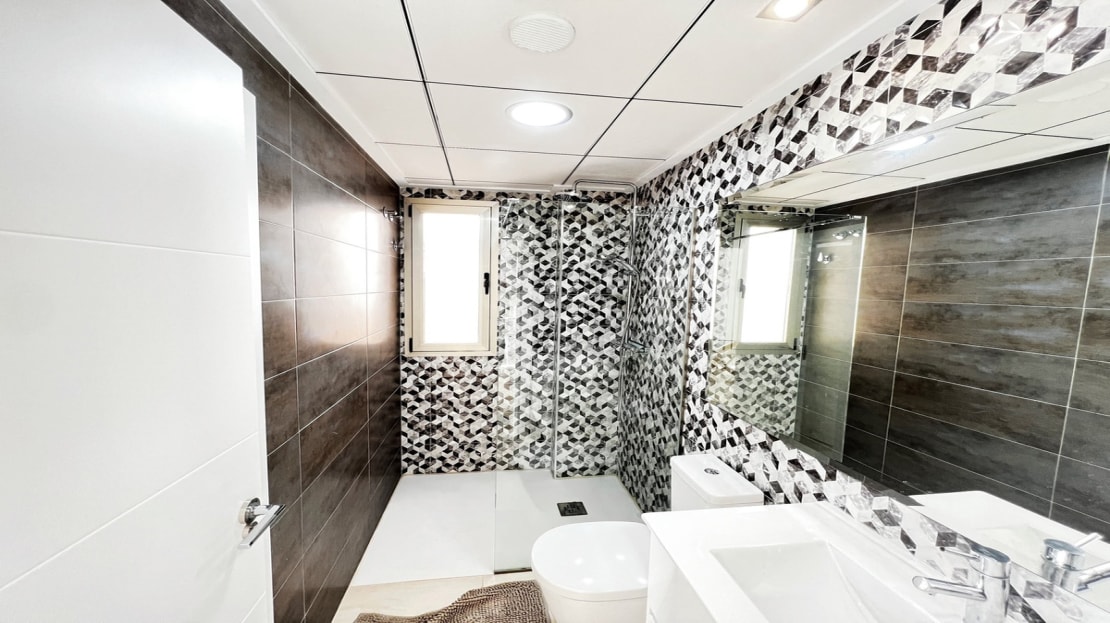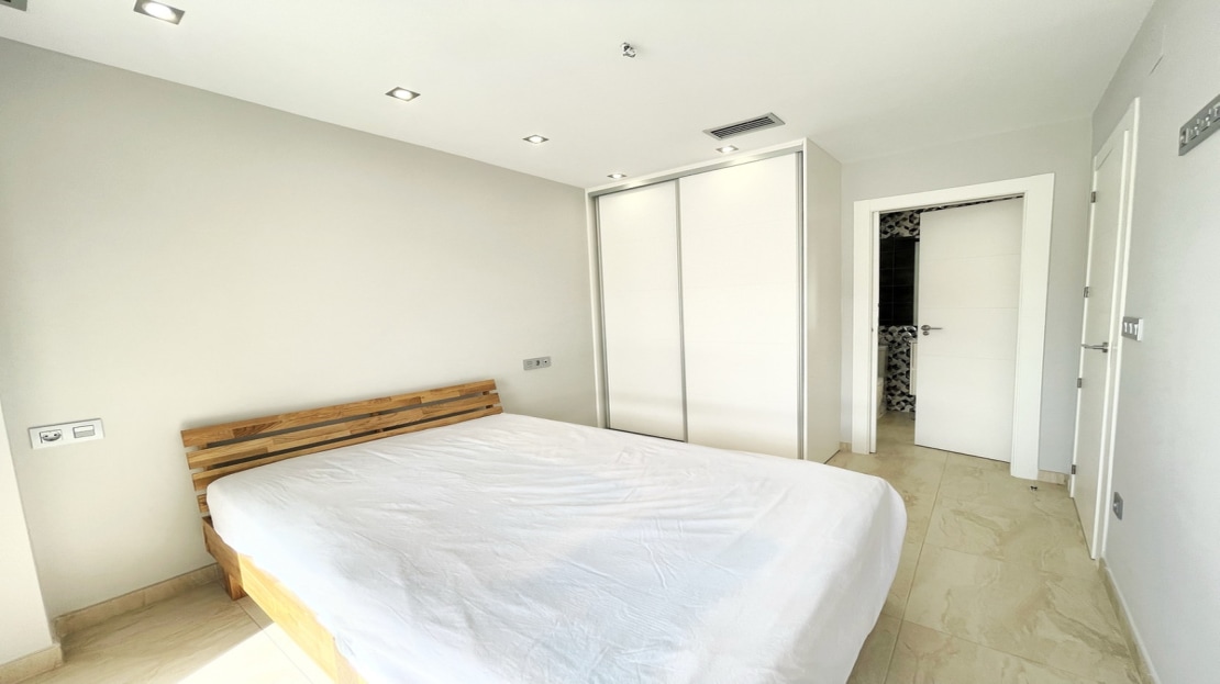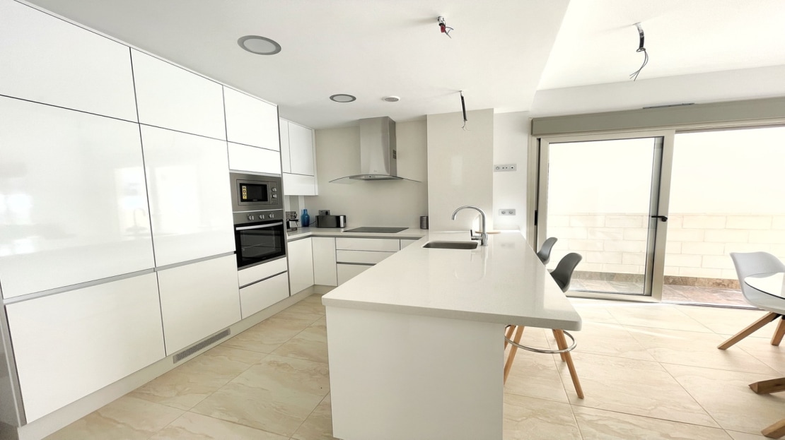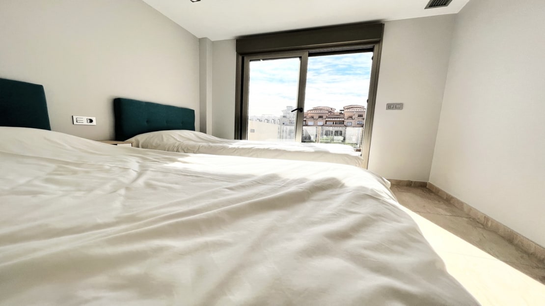 Beautiful detached villa, recently built in a popular, growing area with close proximity to supermarkets, restaurants, shops and numerous world class golf courses. Built over two levels this modern 3 bedroom, 3 bathroom villa is set on a 121m2 plot with a 3×6 private swimming pool, secluded terrace accessed from the upper level along with the stunning solarium boasting panoramic views across the pine forest and pink salt-lake. The property has an open plan living and dining room with an American style kitchen and breakfast bar. The lower level of the villa also has a guest bedroom and bathroom along with a utility room and storage cupboard. On the upper level of the villa you will find 2 big bedrooms both with en-suite bathrooms and access to the sun terrace. The property is sold with many extras including air-conditioning. Viewing recommended.
