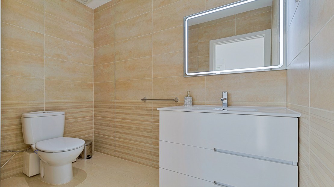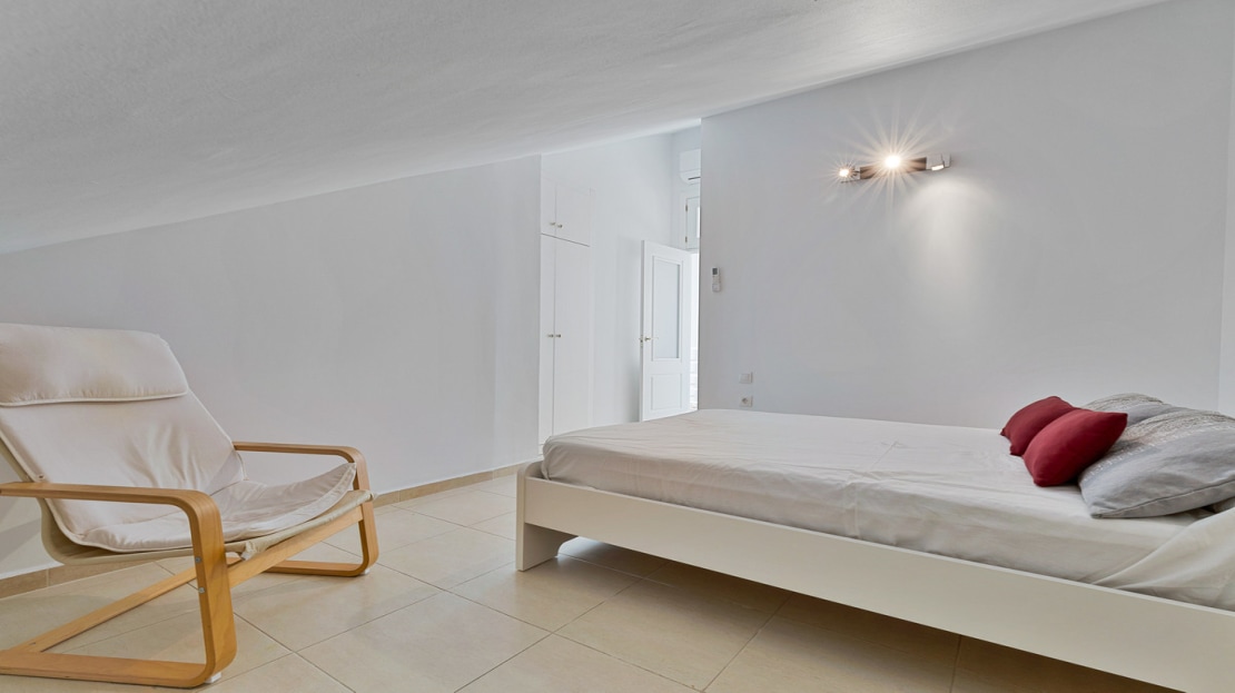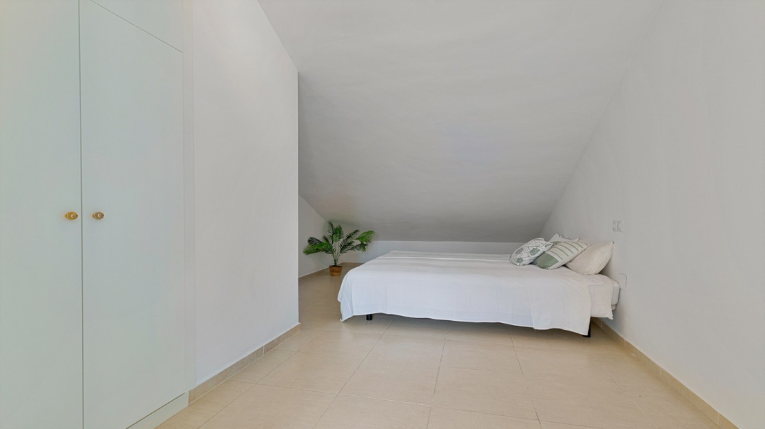 The upper level continues to provide space and comfort with two large bedrooms equipped with spot air conditioning and built-in wardrobes. These bedrooms share a washroom, and from here, you can access a spectacular pergola-covered terrace. This is, without a doubt, a privileged space where you can enjoy unforgettable sunsets with unobstructed views that make every moment an experience of peace and beauty.