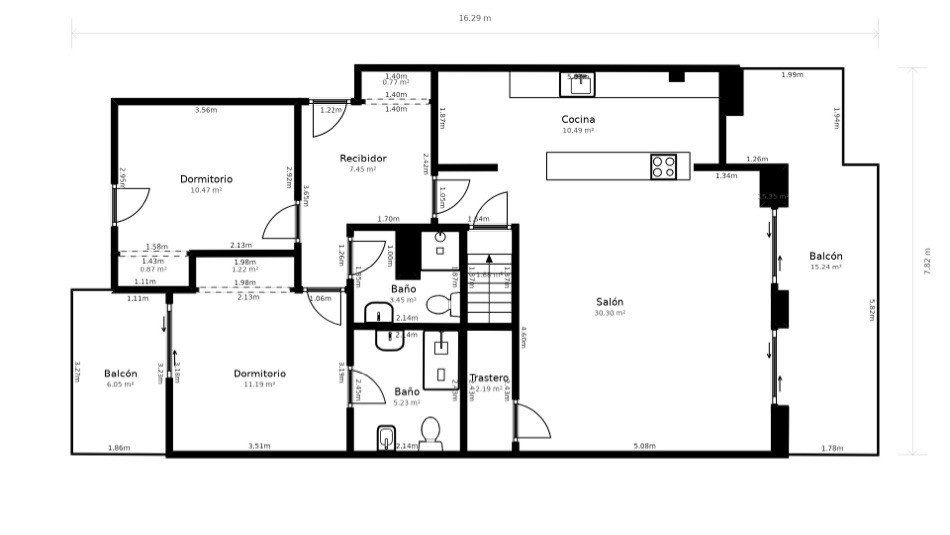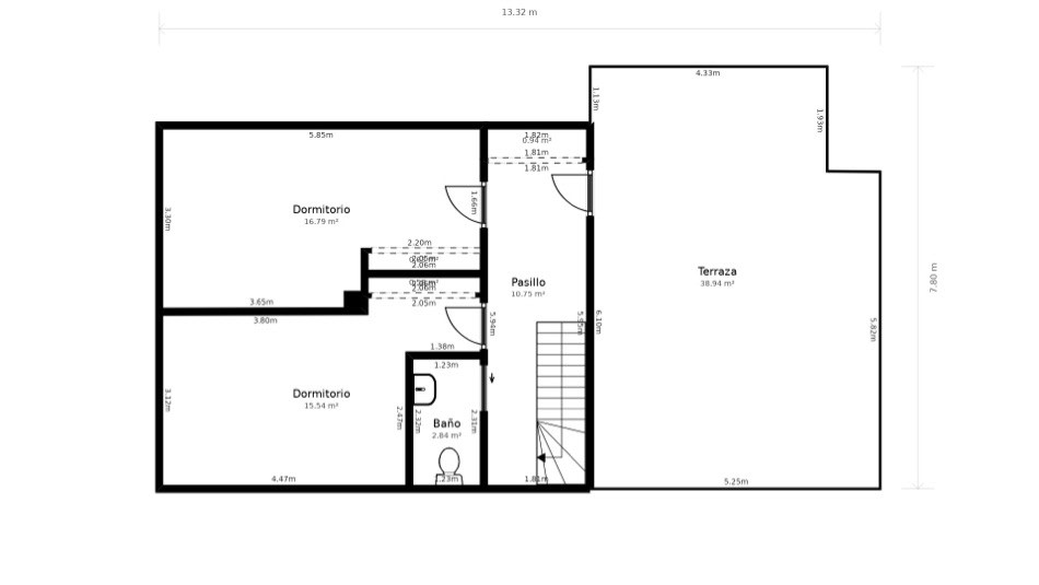On this same floor, there are two spacious bedrooms: one en-suite with access to a charming private terrace, perfect for quiet moments. Additionally, there is a full bathroom that not only serves the second bedroom but also the guests, ensuring privacy and comfort for everyone.
