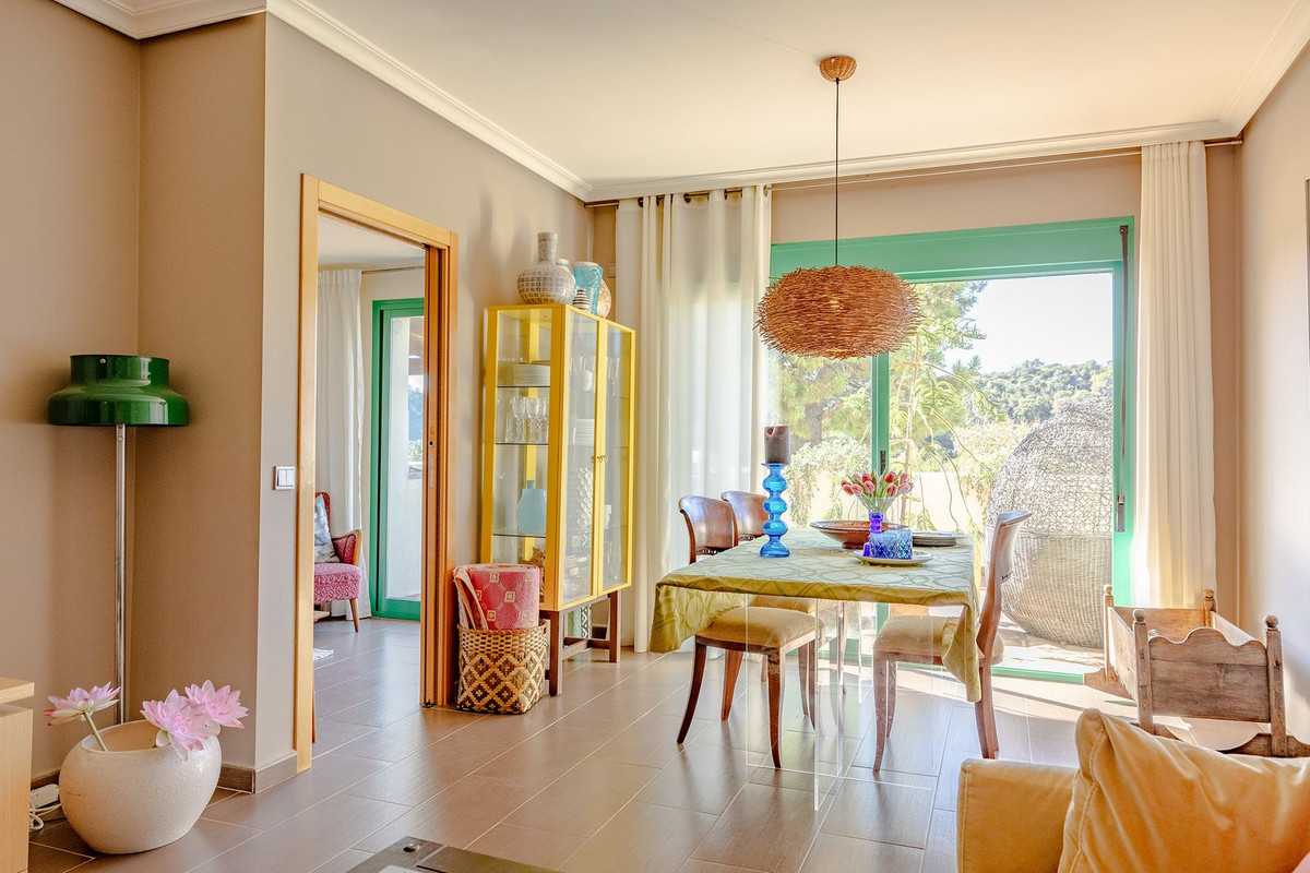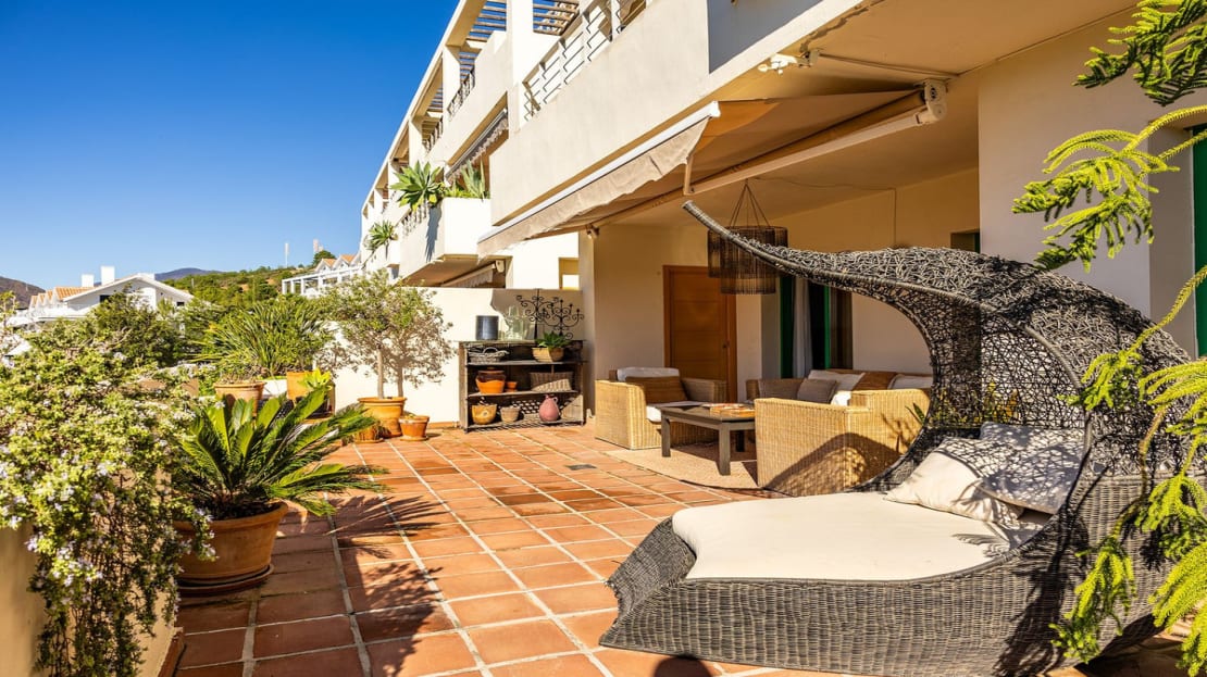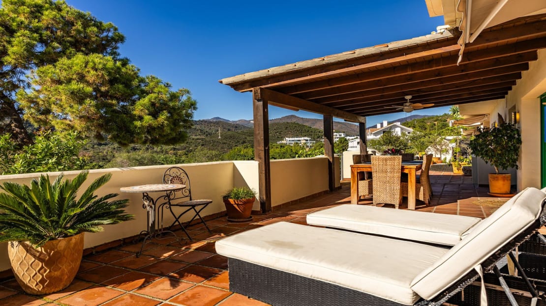 Discover the perfect blend of luxury and tranquility in this exceptional dual apartment unit, nestled in the best position within an exclusive gated community. Boasting panoramic views of the majestic mountains and lush hills, this property offers an unparalleled living experience. Enjoy breathtaking sunsets from the west-facing terrace, complete with a charming pergola, perfect for outdoor relaxation or entertaining guests.