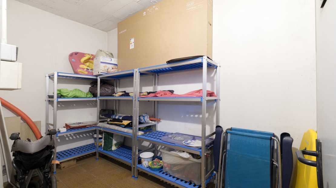 A parking space and a storage room are included for added convenience.