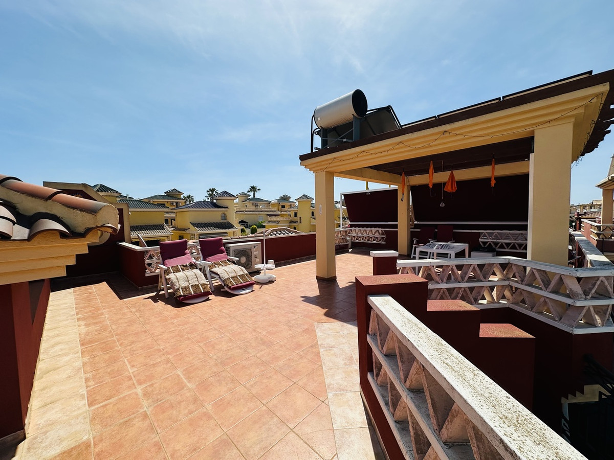 We present to your attention a luxury corner Villa in Lo Crispin, Algorfa! This beautiful house has 4 bedrooms, 3 bathrooms and a spacious, carefully designed living area of 212 m2. In its cozy interior you will find a well-equipped kitchen with a separate utility room and a convenient pantry, spacious living rooms and comfortable bedrooms. One of the bathrooms has a Jacuzzi, and large windows let natural light into the rooms. In the main living room you will find a fireplace, and infrared heaters and air conditioners are provided for your comfort. The large roof terrace will surprise you with stunning views. The house is equipped with solar panels, which significantly reduces the cost of electricity, and can also be used to power an electric car charger. The 811m2 plot is decorated with a beautiful garden, and also has a private pool and garage. It is located in a gated community. Within walking distance of all amenities, including a supermarket and numerous shops, bars and restaurants – excellent location.