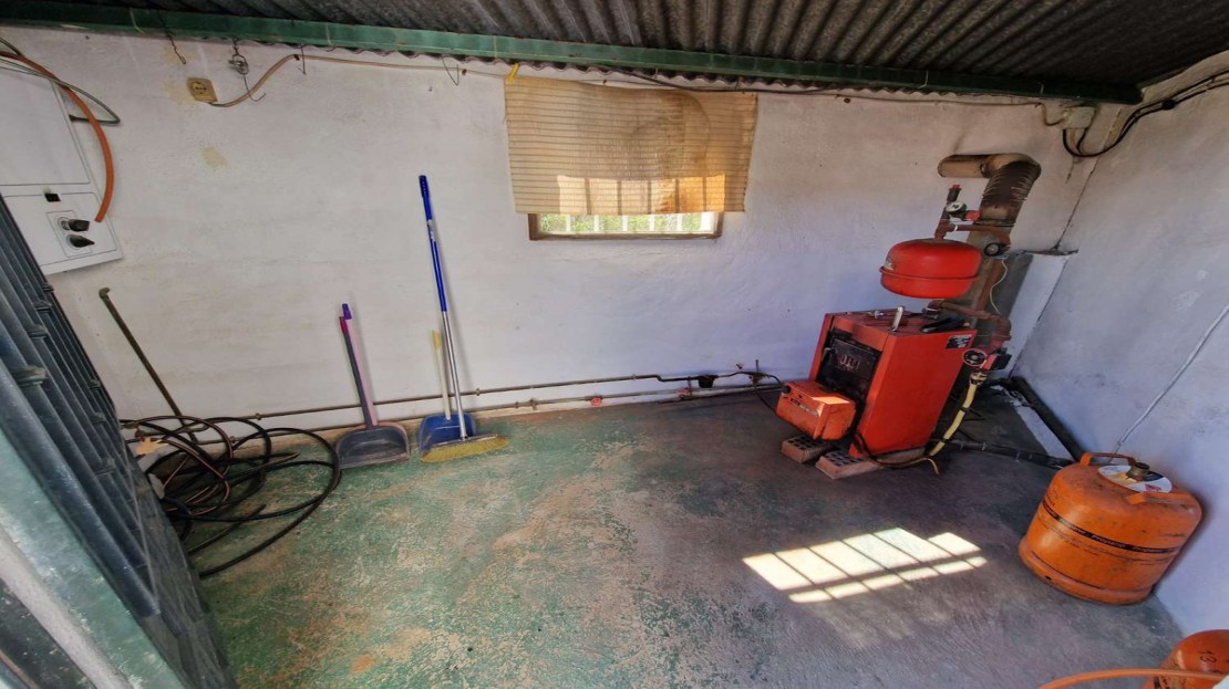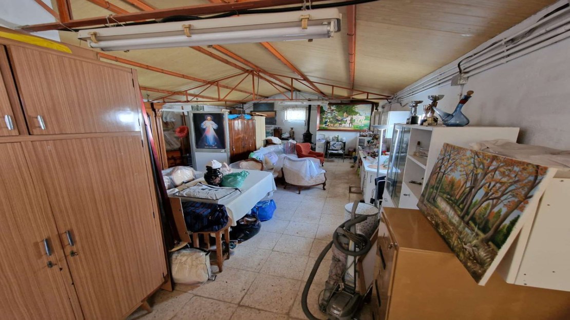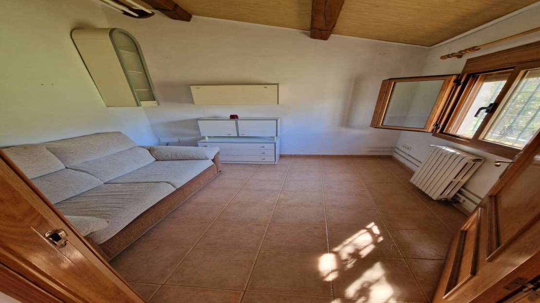 Independent villa for sale on a 2,288m2 plot of which 1,288m2 are urban plots and 1,000m2 are rustic plots, the entire property is fenced. The chalet consists of one floor with a living-dining room with a fireplace, an independent fitted kitchen, four bedrooms with fitted wardrobes and 2 bathrooms, oil central heating. Next to the chalet there is a 100m2 attached warehouse with 1 bathroom that can be converted into a home, several storage rooms, a garden with fruit trees, several car spaces on the plot. The house has been renovated a few years ago.