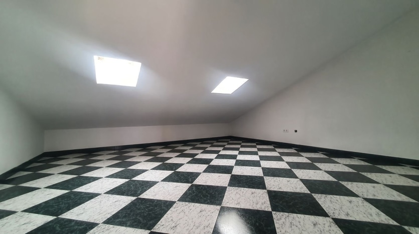 Upstairs, the property offers two additional double bedrooms. One of them is very spacious with a cozy attic-style ceiling, creating a versatile and welcoming space. On this floor, you will also find a second full bathroom and a large terrace of approximately 47m², perfect for enjoying the weather year-round and ideal for relaxation and entertaining.