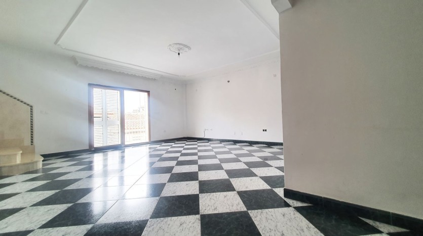 Upon entering the property, a flight of stairs leads you to the main floor, where you will find a spacious, bright living-dining room, a kitchen without appliances, and an additional dining area that can be converted into a fifth bedroom if desired. This floor also includes a large bathroom with a bathtub, two double bedrooms, and a small semi-covered patio that houses the utility area.