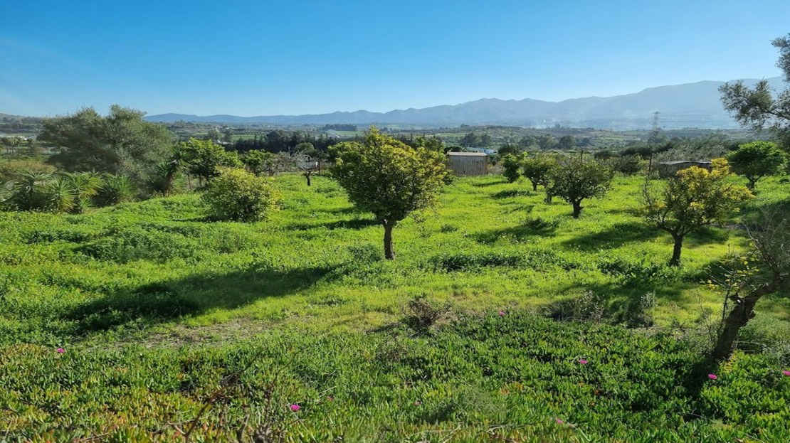 – Flourishing orchard with **olive, orange, apple, plum, and lemon trees**.