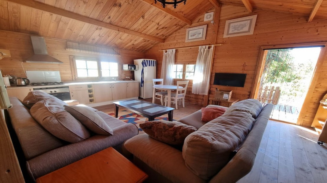 – Charming **Wooden House** with 1 bedroom, a lounge/kitchen area, and a shower room.