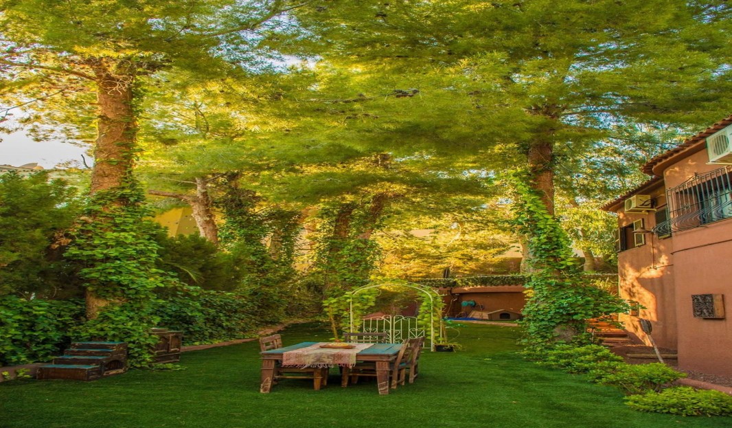 The villa's garden is a green oasis that combines design and functionality: