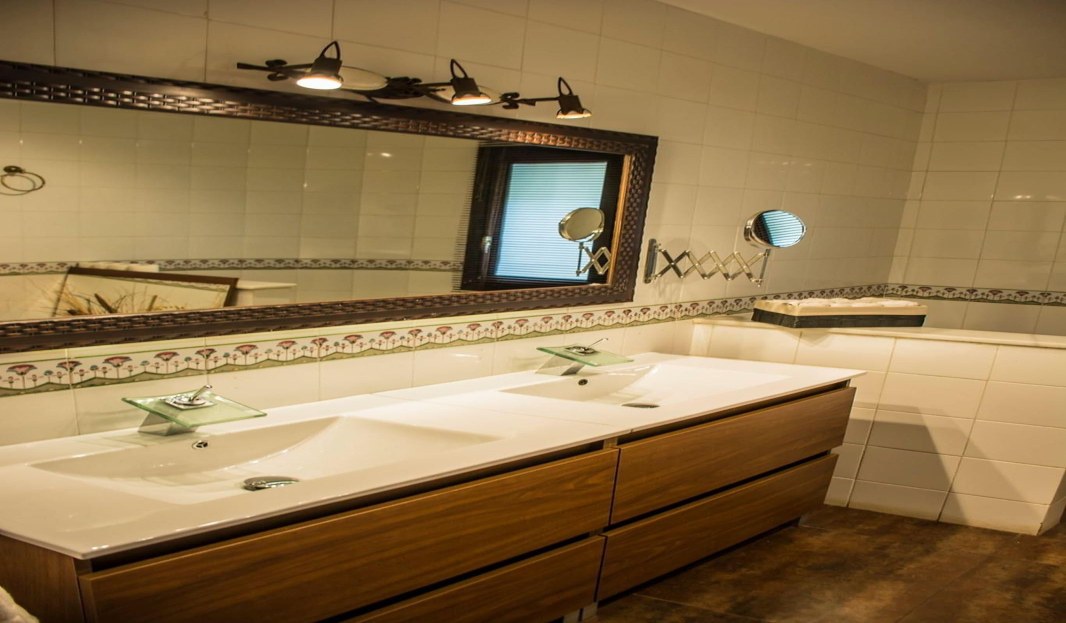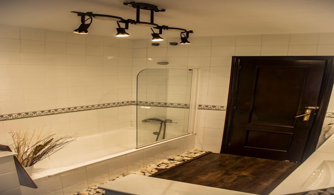 Smooth painted walls and premium bathroom fittings from Roca.