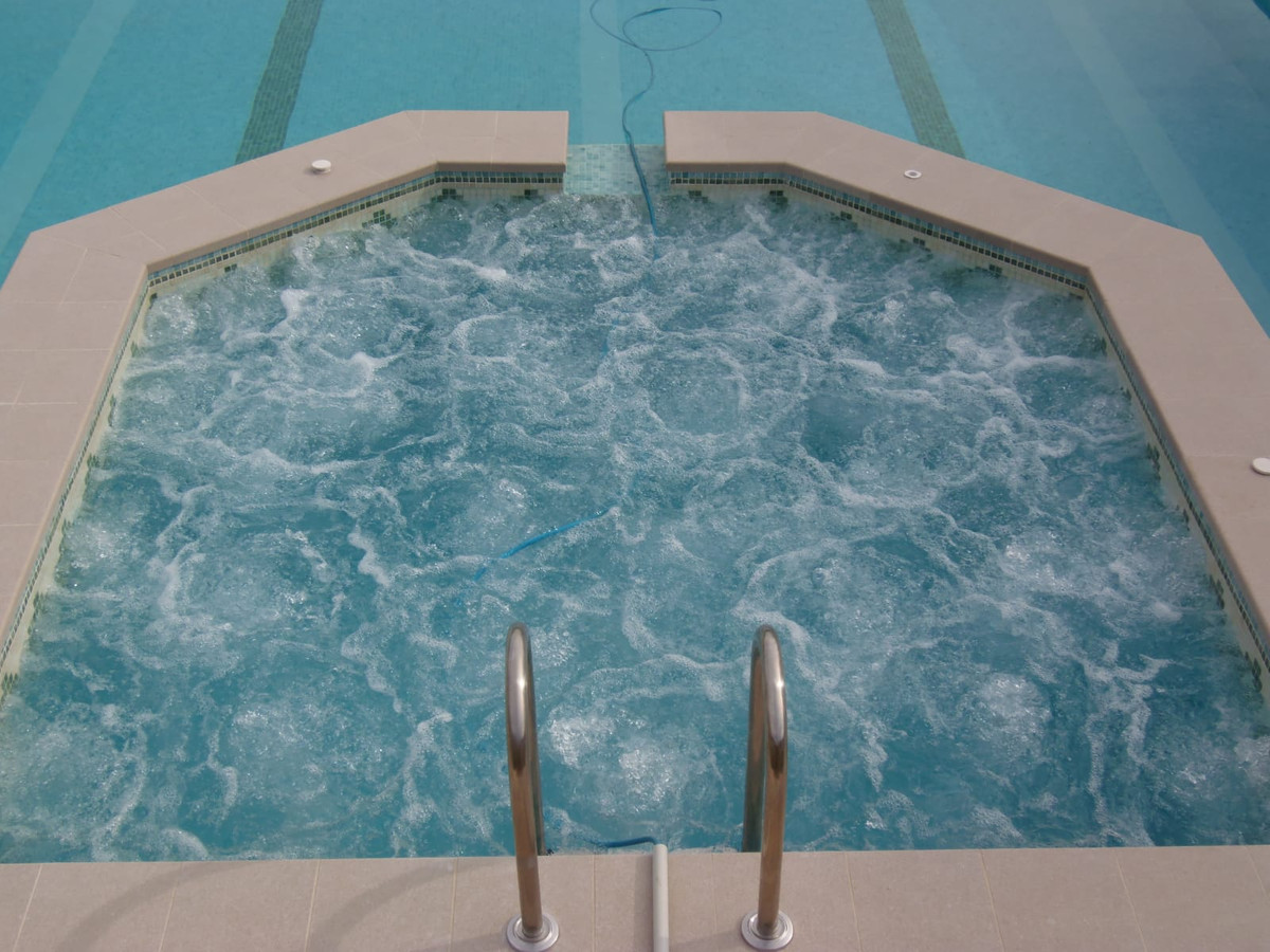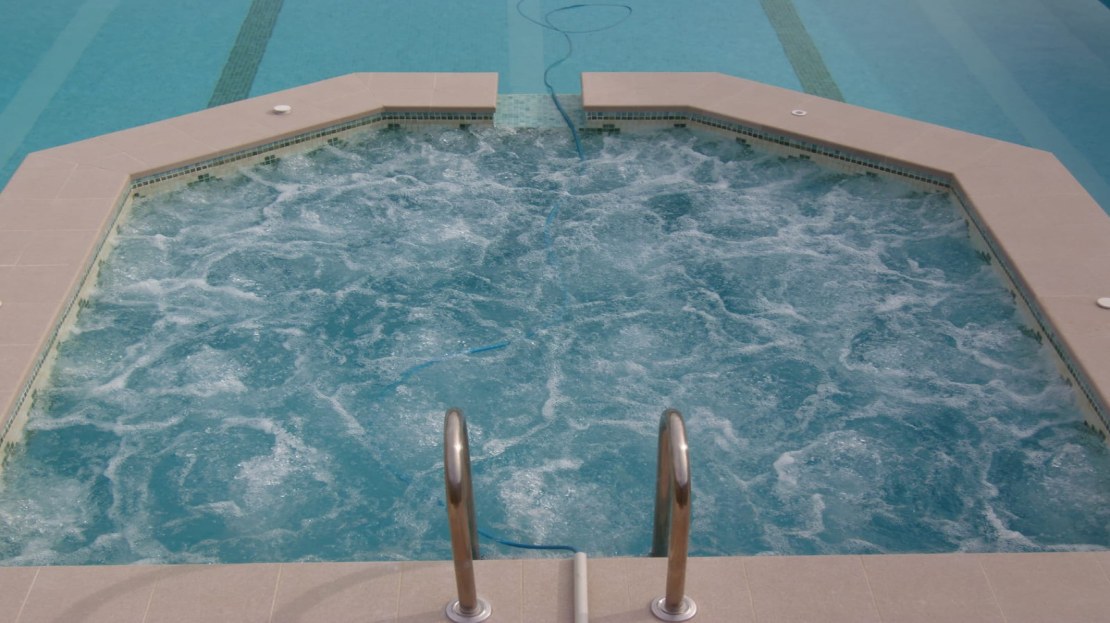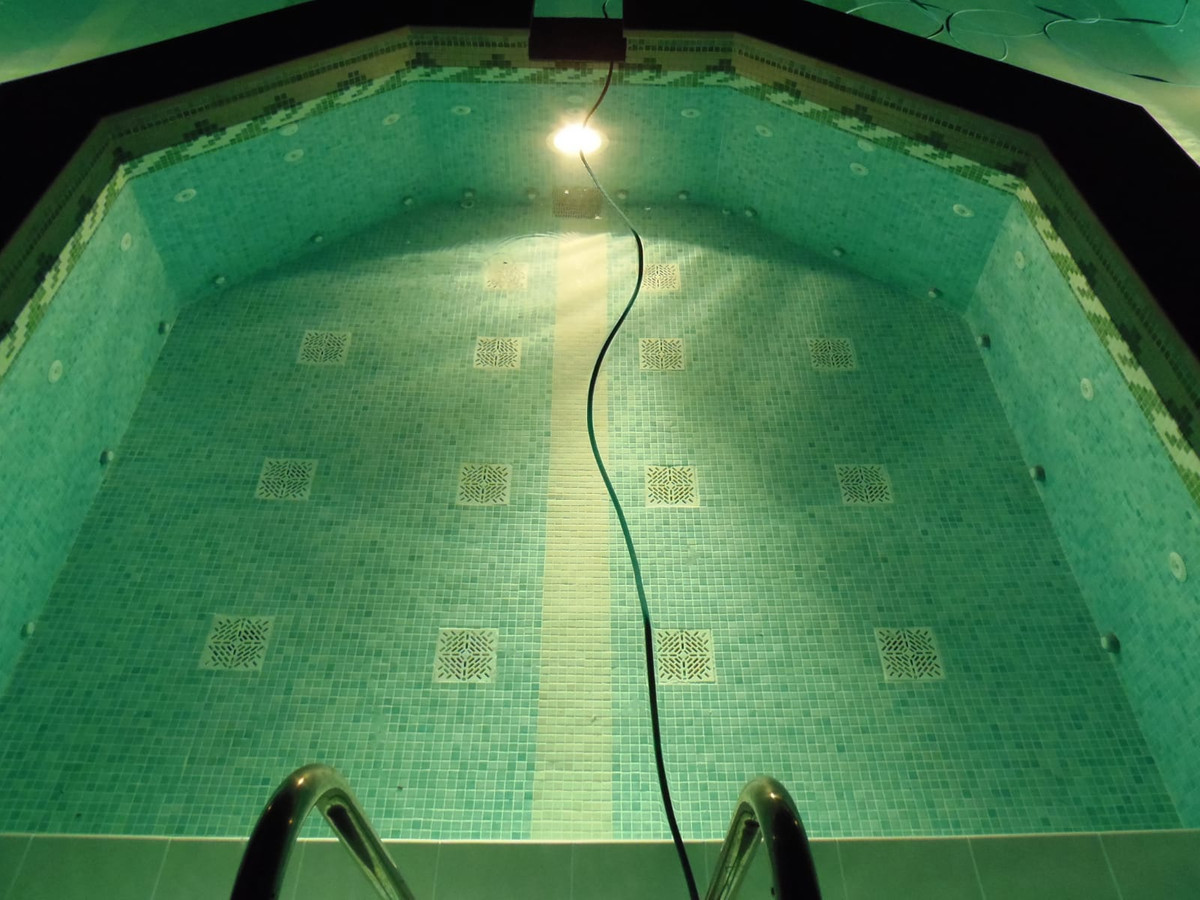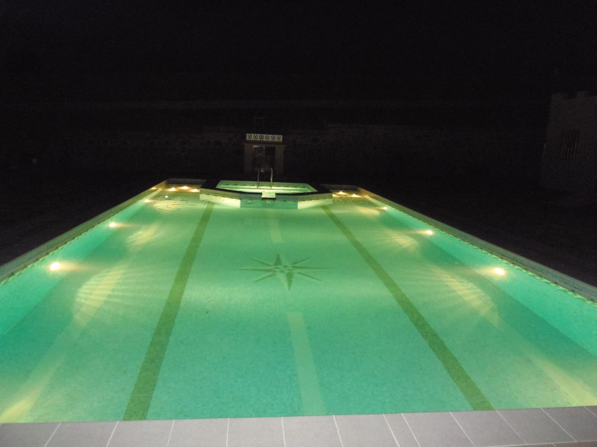 Enjoy a large swimming pool with jacuzzi in front of the mountains and a private gym.