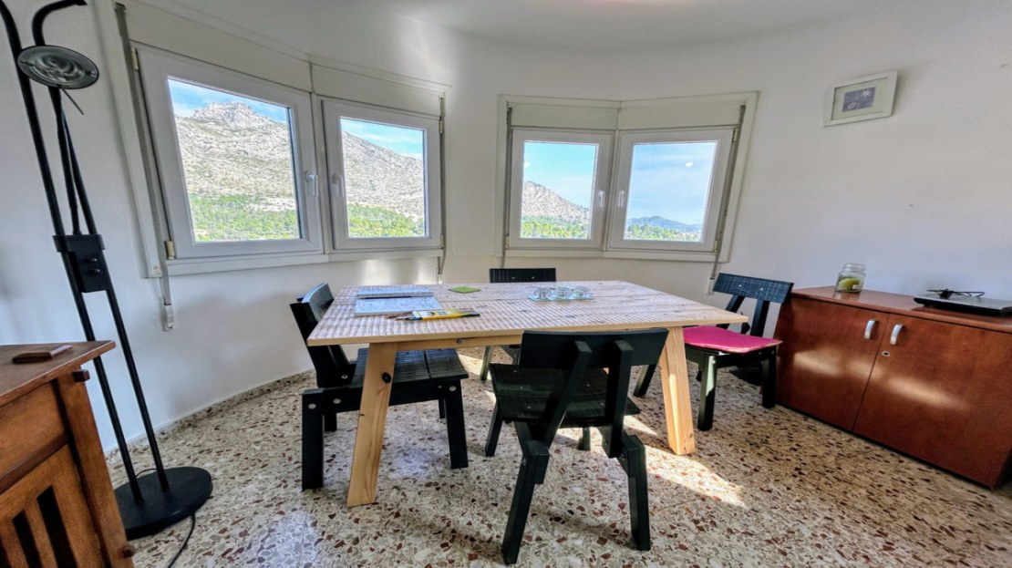 Outside, the property is nothing short of spectacular. The crystal-clear pool is set in a panoramic position, offering incredible views of the surrounding hills and valley. The garden is designed to blend harmoniously with the natural landscape, making it feel like an extension of the wild beauty of Benichembla. Whether you’re lounging by the pool, dining al fresco on the terrace, or exploring the area’s hiking trails, this home offers an unparalleled lifestyle of relaxation and immersion in nature.