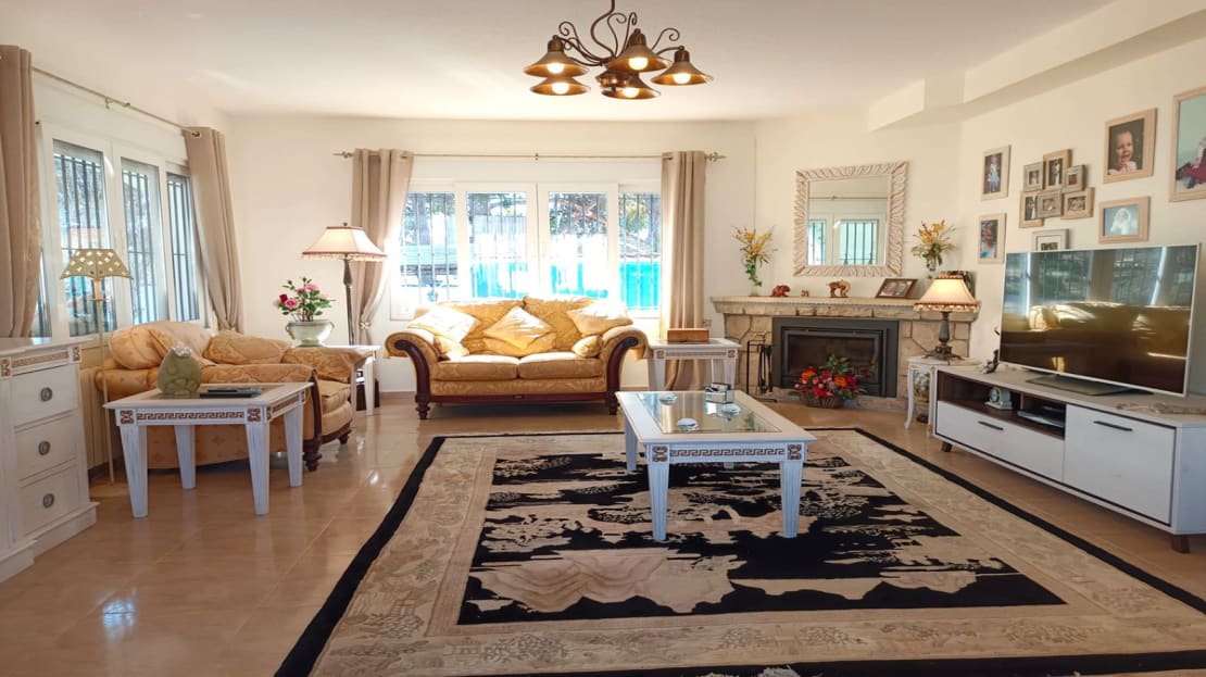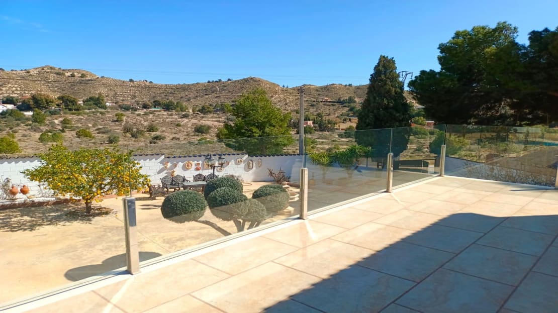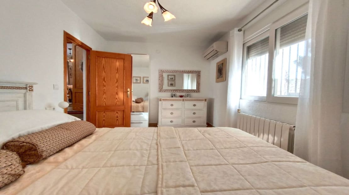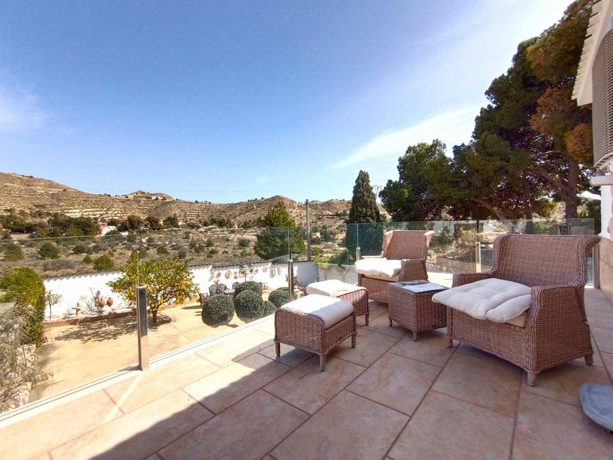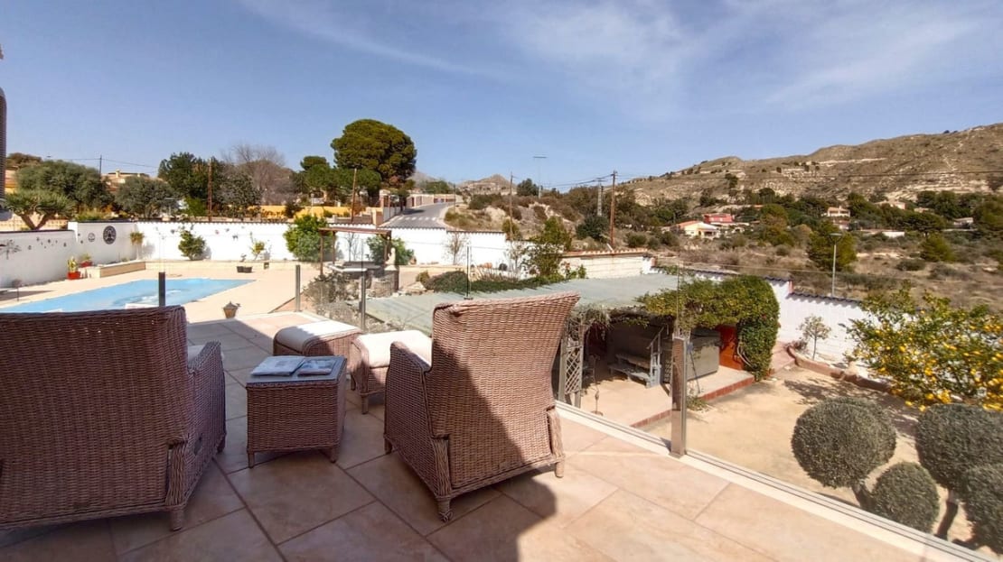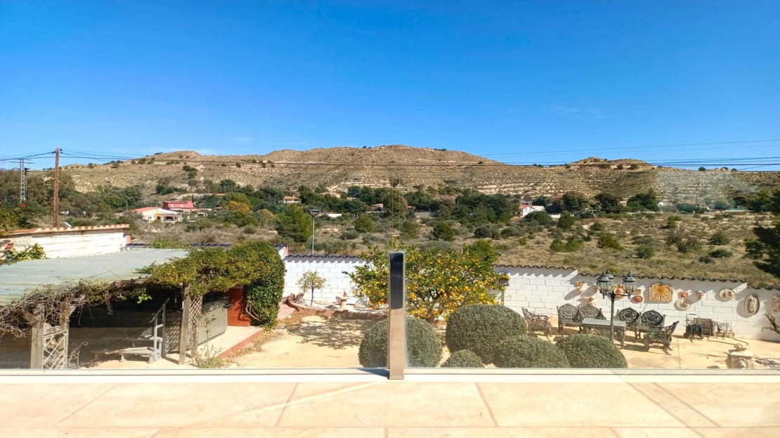 Renovated chalet located in a prime residential area of Busot (HOYA DE LOS PATOS), boasting stunning mountain views and tranquility. The property features a spacious 1,089 m2 plot meticulously landscaped as a private garden. The solid construction spans across 2 floors with a total of 140 m2. The ground floor offers a covered and glazed terrace, a generous living-dining room with fireplace, a separate fully equipped kitchen with garden access, 2 double bedrooms, and a full bathroom. Upstairs, there are 2 additional double bedrooms, 2 bathrooms, and a large uncovered terrace overlooking the mountains. The property includes a variety of fruit trees, an independent swimming pool, Jacuzzi, barbecue area with kitchen facilities, and multiple storage spaces. Technical amenities comprise air conditioning throughout and central gas heating. The chalet enjoys convenient proximity to essential services and excellent connectivity.