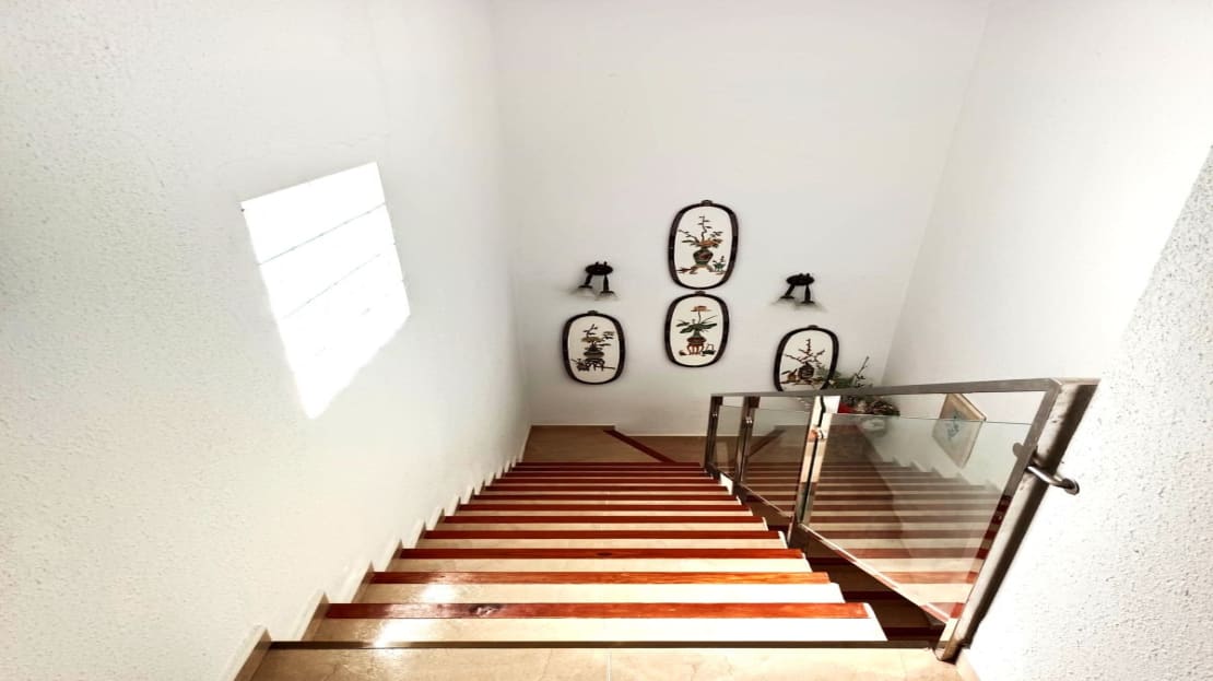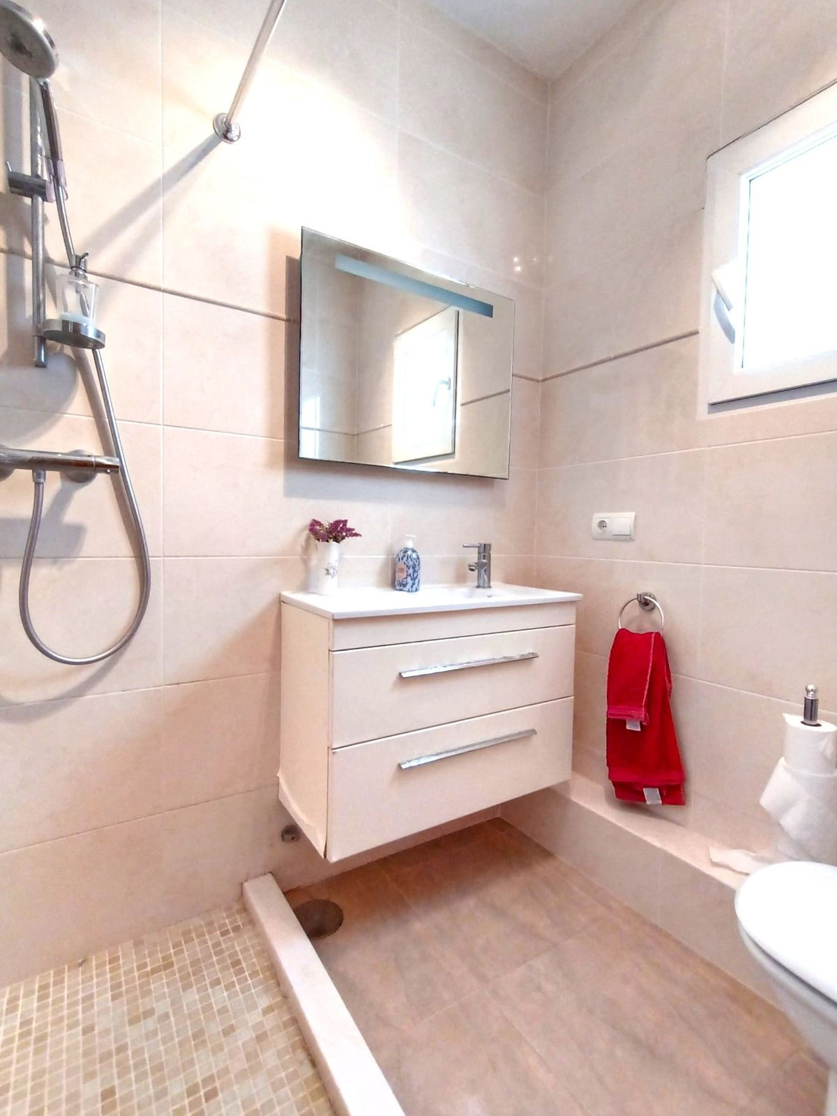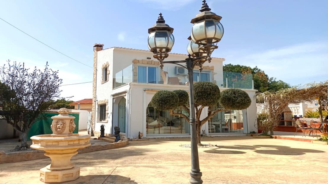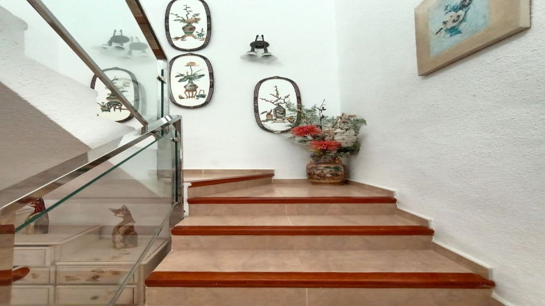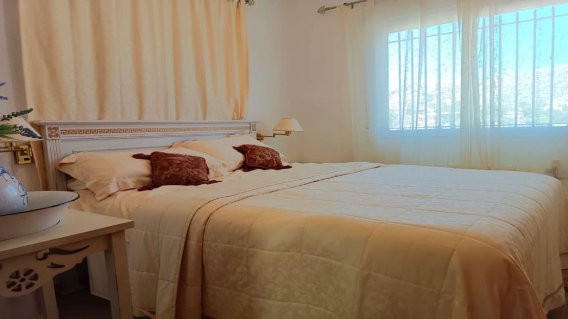 Renovated chalet located in a prime residential area of Busot (HOYA DE LOS PATOS), boasting stunning mountain views and tranquility. The property features a spacious 1,089 m2 plot meticulously landscaped as a private garden. The solid construction spans across 2 floors with a total of 140 m2. The ground floor offers a covered and glazed terrace, a generous living-dining room with fireplace, a separate fully equipped kitchen with garden access, 2 double bedrooms, and a full bathroom. Upstairs, there are 2 additional double bedrooms, 2 bathrooms, and a large uncovered terrace overlooking the mountains. The property includes a variety of fruit trees, an independent swimming pool, Jacuzzi, barbecue area with kitchen facilities, and multiple storage spaces. Technical amenities comprise air conditioning throughout and central gas heating. The chalet enjoys convenient proximity to essential services and excellent connectivity.