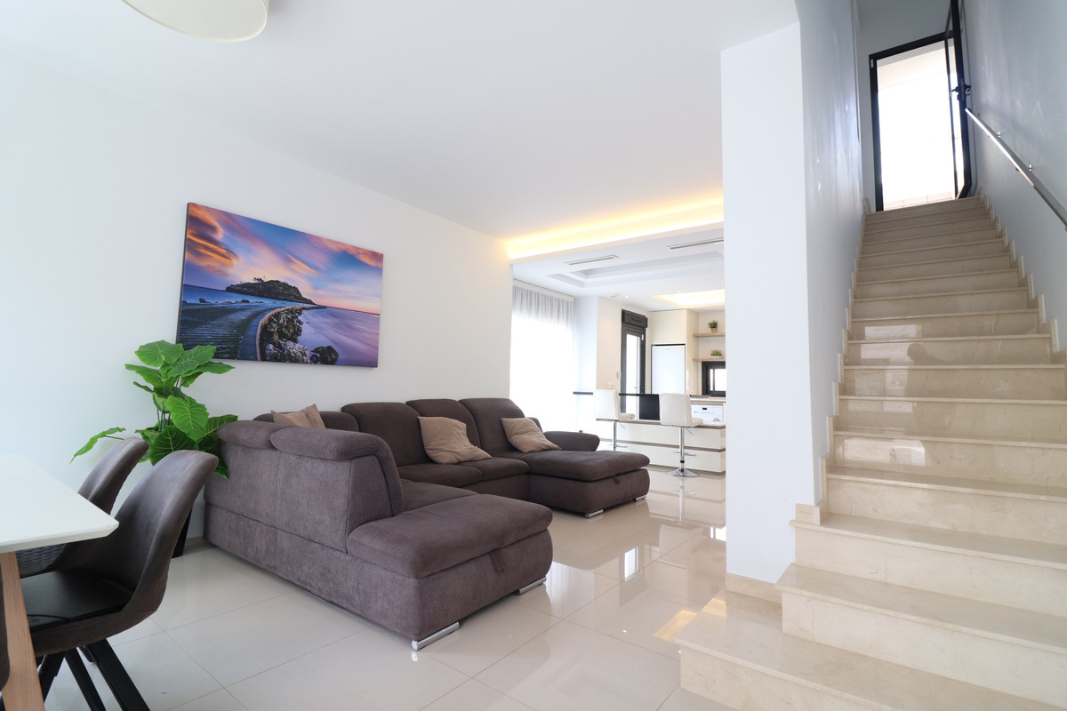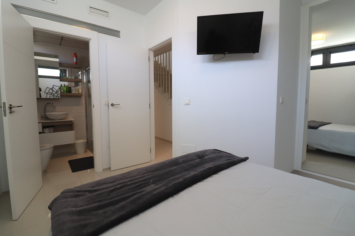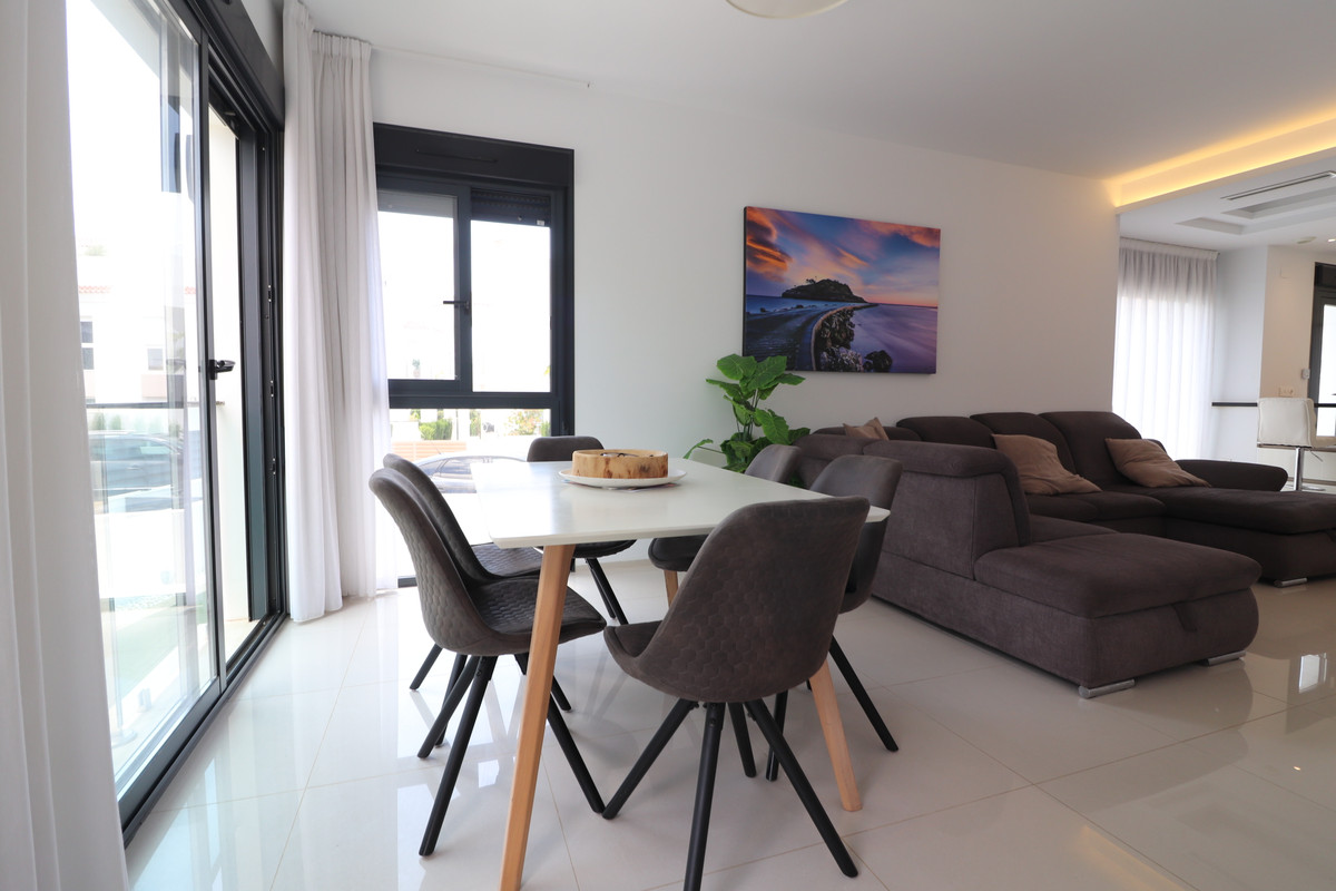 This Superior, Stunning, Luxury, Corner, Four Bedroom, South-East & South-West Facing Semi Detached Villa in La Laguna is located in Ciudad Quesada, close to Pueblo Bravo & La Fiesta. Situated within a 6 minute walk or a minutes drive to the nearest amenities and facilities, including main brand supermarkets… Beaches also at Guardamar in just an 8 minute drive! This fabulous property has been finished to a very high standard, consisting of four levels, comprising on the ground floor of a modern open plan fully fitted kitchen, with a breakfast bar & side door to the garden + parking area; lounge/dining room with lovely decor and finish, with access out to the front gardens + direct access to the communal gardens & swimming pool; and a cloakroom also on this level. On the first floor there are two double bedrooms, the master with en suite bathroom + large sliding doors out to a superb covered terrace, with views over the communal swimming pool; the other bedroom with private terrace too; and a family shower room. On the 2nd floor is an extremely spacious, private roof top solarium, fully equipped with pergola + Jacuzzi, benefiting from spectacular panoramic views all around the area, countryside and salt lakes… The under build consists of a further two double bedrooms, both with en suite shower rooms; and a storeroom on this level too. Outside is a low maintenance graveled and artificial grassed garden, with off road parking, room for a private pool, and plenty of space to relax and entertain, not forgetting the fitted outside kitchen area & utility cupboard! This super property comes with many different extras such as fitted wardrobes, air conditioning throughout, under floor heating in all the bathrooms, sun awnings and more… Simply wow!!!<br /