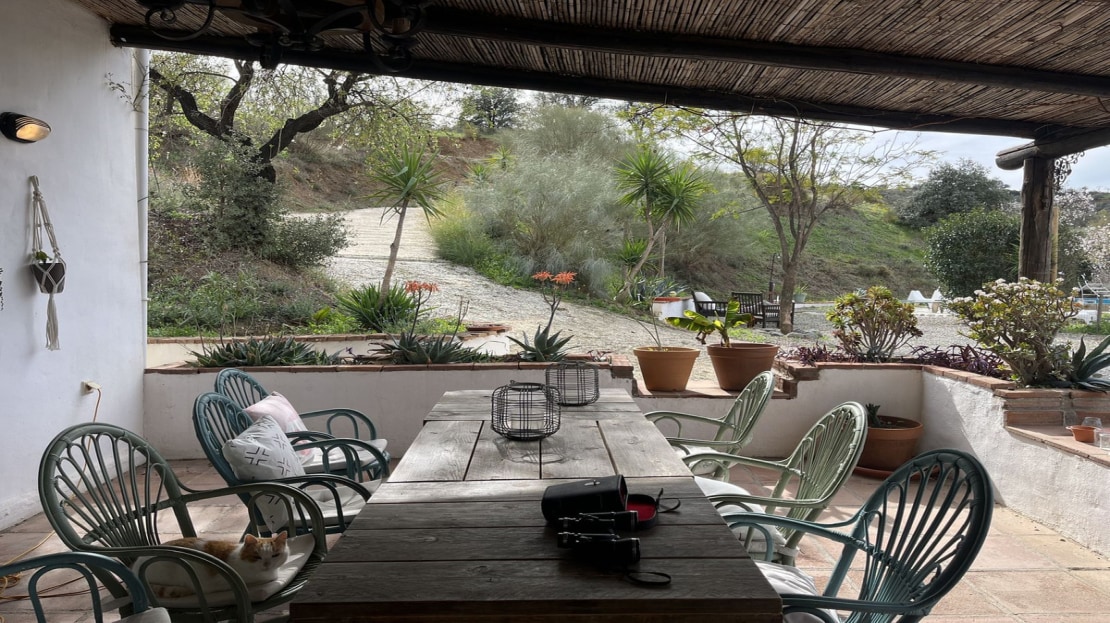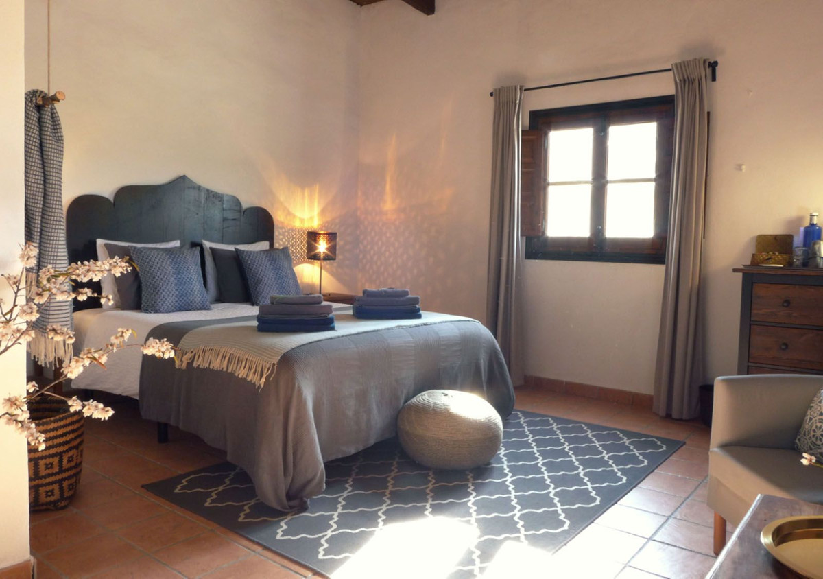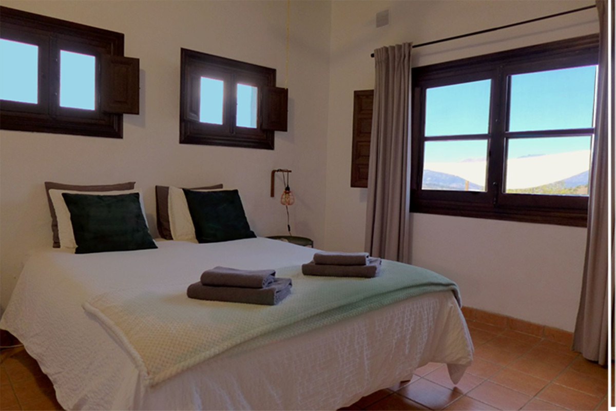 This spacious house, set at the top of a large hillside plot of 27,000m² offers the perfect peace and quiet of the countryside while still only 15 minutes from Coin town centre and with a popular local restaurant at the end of the track. Perched on the hilltop with 360º views of the Sierra de las Nieves biosphere reserve on one side and the Guadalhorce valley on the other, this spacious home with about 200m² built is at the end of a country lane, offering complete privacy and very few neighbours. The road to the property is mostly tarmac with the last 1km on a dirt track, maintained in good condition by the neighbours.