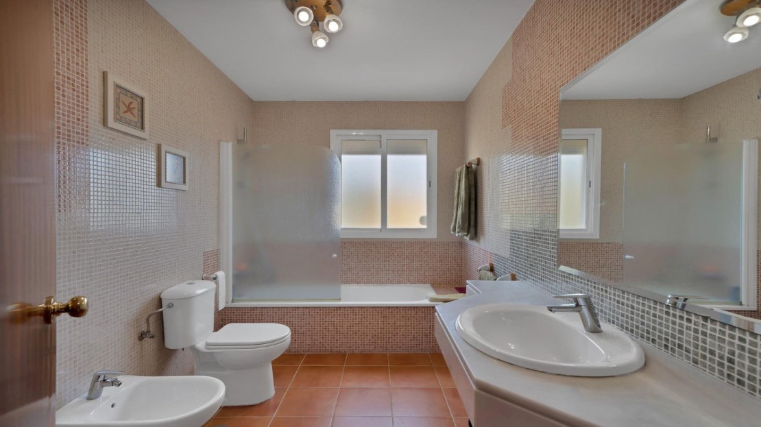 It features 4 bedrooms, 3 full bathrooms, and a guest WC, making it an ideal home for families. The interiors stand out with spacious rooms, high ceilings, and abundant natural light, complemented by several terraces.