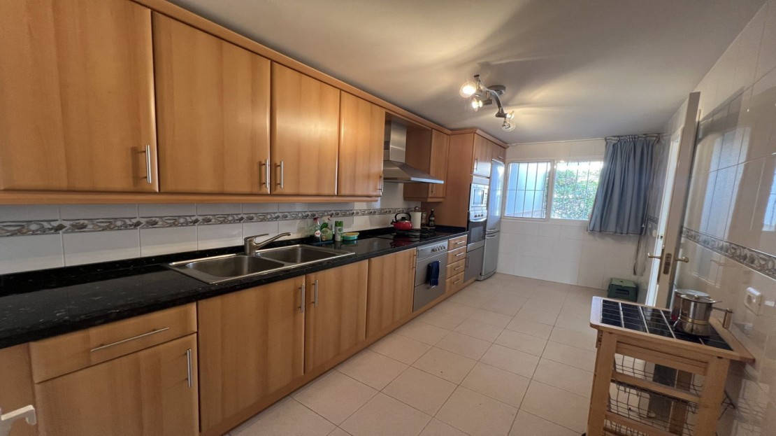 With a thoughtfully designed layout, this two-story home features 4 generously sized bedrooms and 3 full bathrooms. The main floor includes a large, accessible bedroom and a spacious bathroom, making it ideal for guests or family members who prefer single-level living. Upstairs, the master suite offers a private ensuite bathroom, while two additional bedrooms share another full bathroom. Two of these bedrooms open out onto large terraces, perfect for enjoying the Mediterranean climate and stunning views.