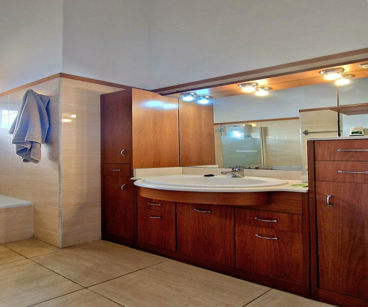 Moving through we then enter a large master bedroom with a lot of natural light. Onward we then enter to the third smaller bedroom which can also be repurposed as a spacious office or a very large walk in wardrobe and another bathroom with a massage shower.