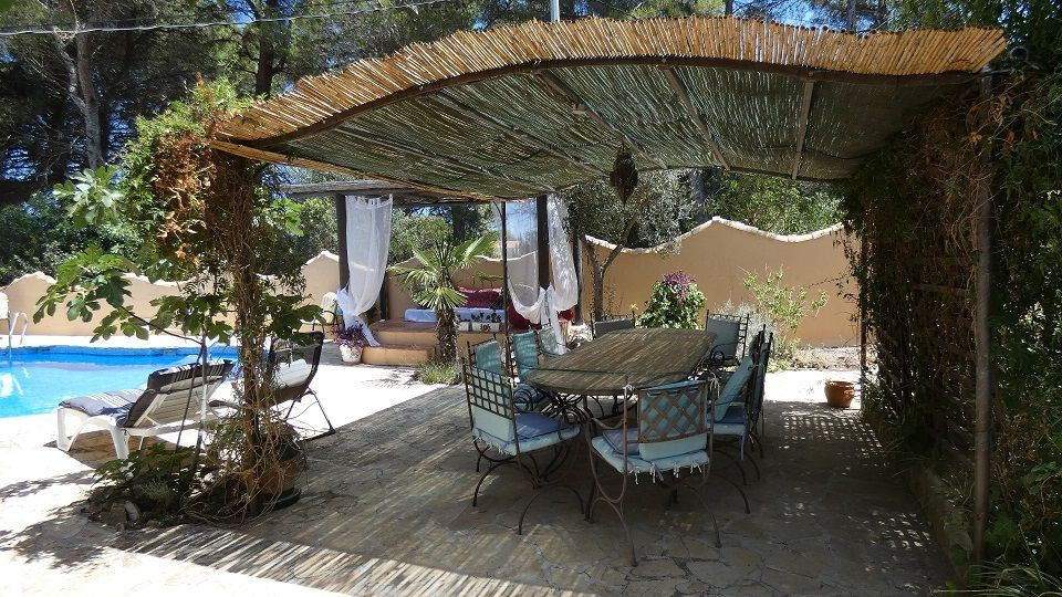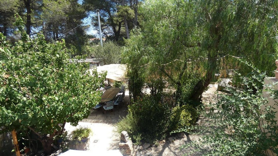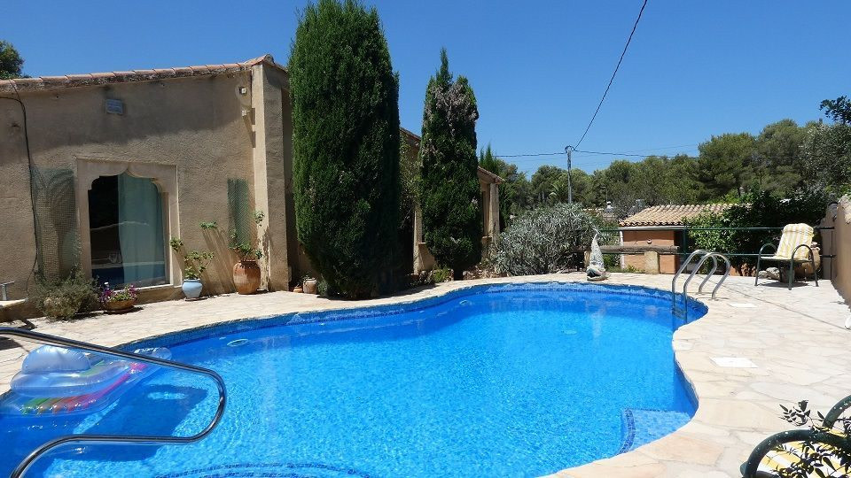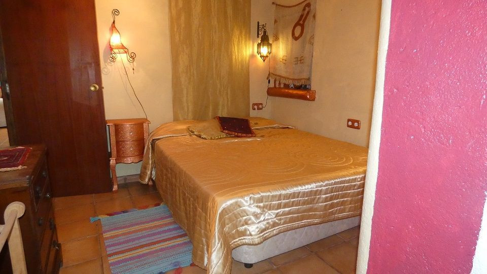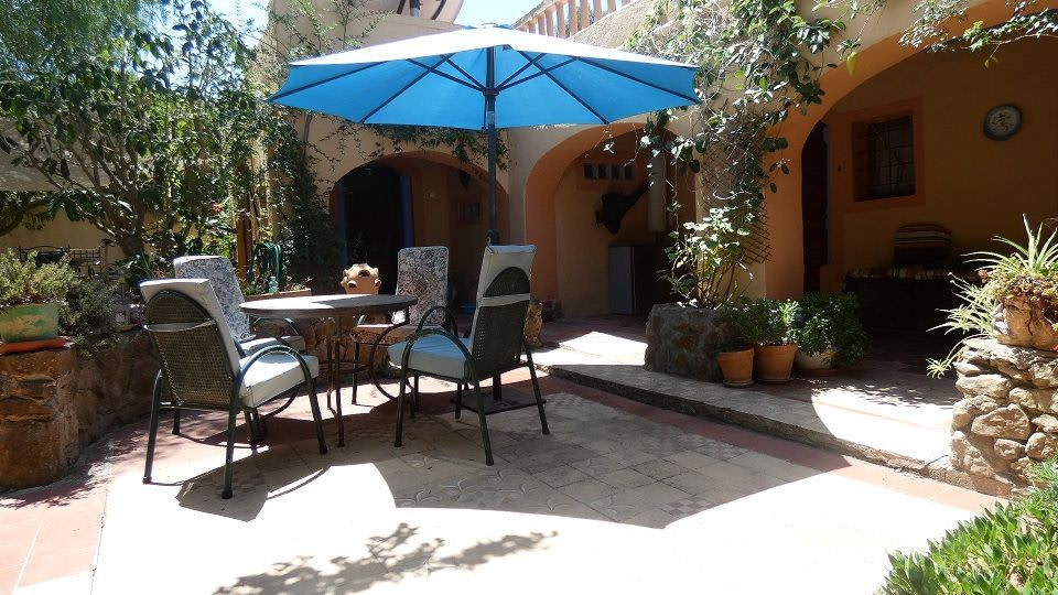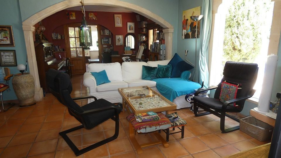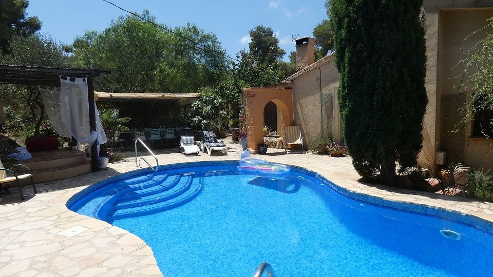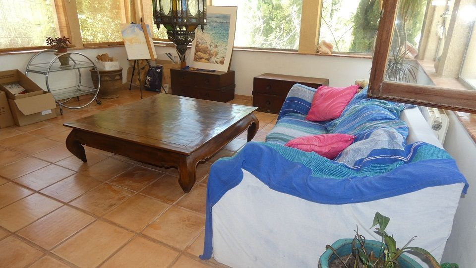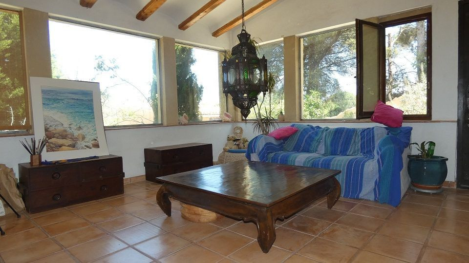 Beautiful Artist's house on a magical promontory of the Montgo Natural Park.Ideal for people looking for a quiet and peaceful environment, but only 5 minutes drive from Javea town or Denia with supermarkets, shops, bars, restaurants and beaches, .3-bedroom house with entrance to the living room with air-circuit windows and fantastic views of the Montgo.The study area opens onto the living room with wood burning stove and Moroccan style window facing the pool.The kitchen has a gas hob and electric oven at eye level.The master bedroom has a walk-in wardrobe and mirrored wardrobes, family bathroom and the second bedroom has a Moroccan theme, again with a walk-in wardrobe.Outside the kitchen is the laundry room with access to the clothesline and orchard.From the living room and the kitchen there is access to the dining room with access to the interior patio.Here is a third bedroom with garden and naya.Steps go up to a sun terrace.