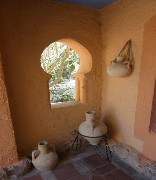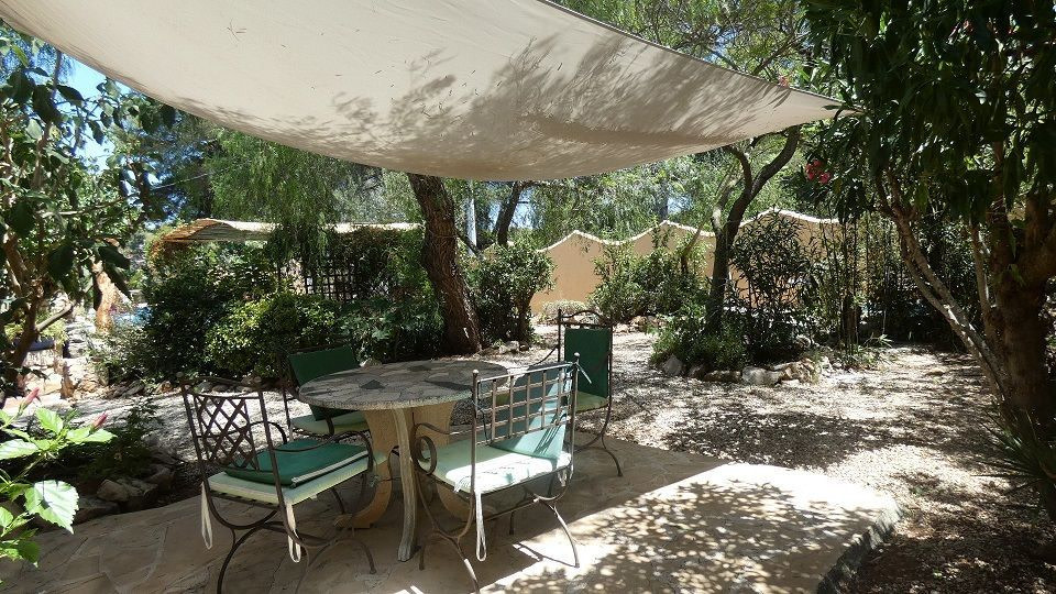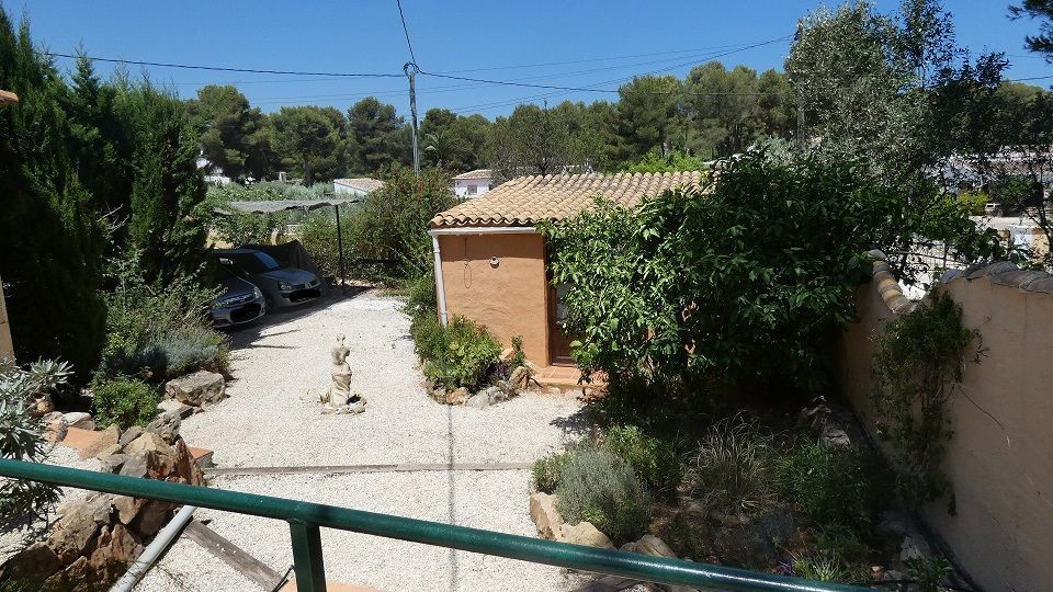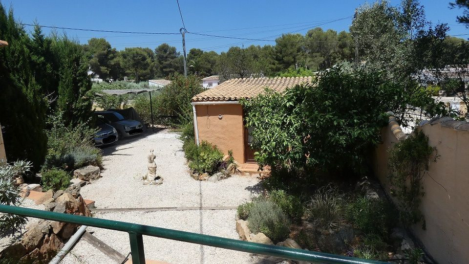 Outside the front door is a large Buddha statue set in a flower bed with jasmine.The front garden has a small patio to the left and then gravels to a carport, garage and art studio.Electric gates and there is also lighting for the night.In addition to a security light in front of the house.The entire garden is walled, so it is totally safe for children and dogs.There are beautiful walks through the forest to the Windmills where you can see the entire bay of Javea.At the end of the road is the Monastery.”