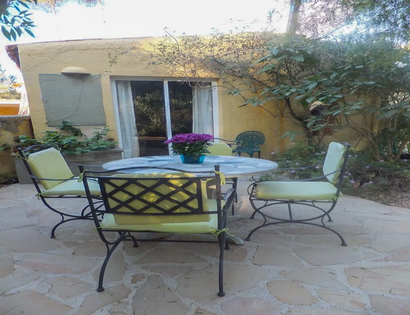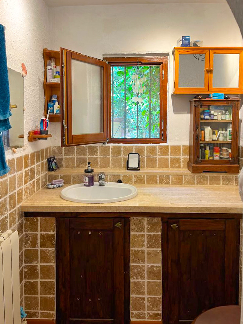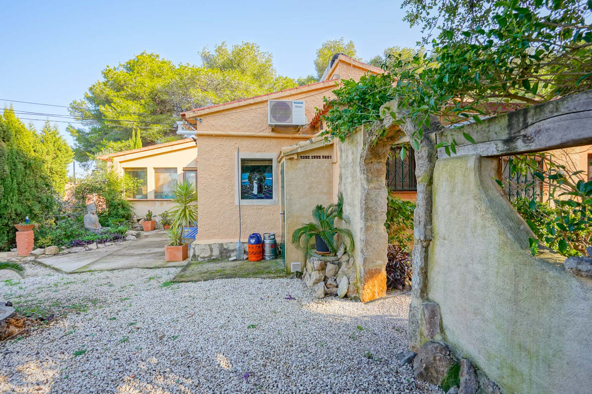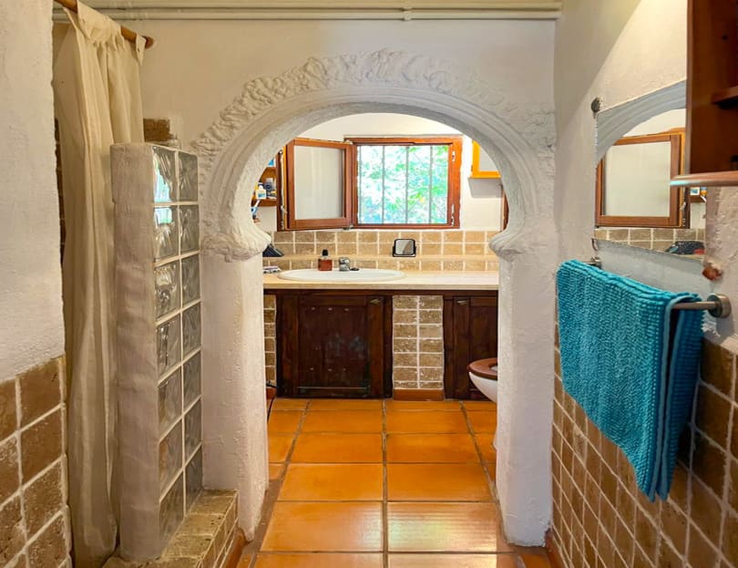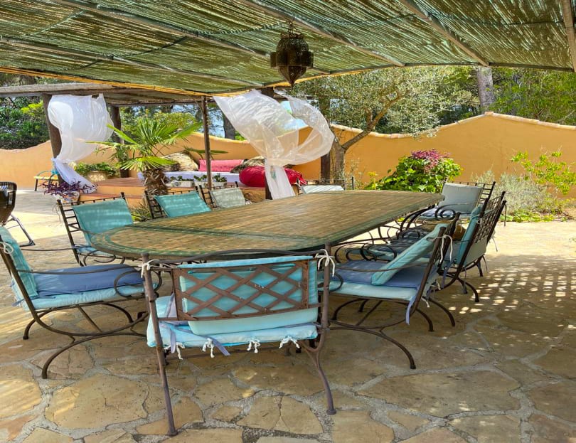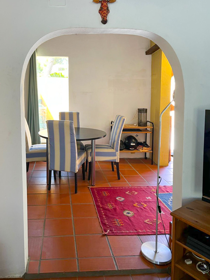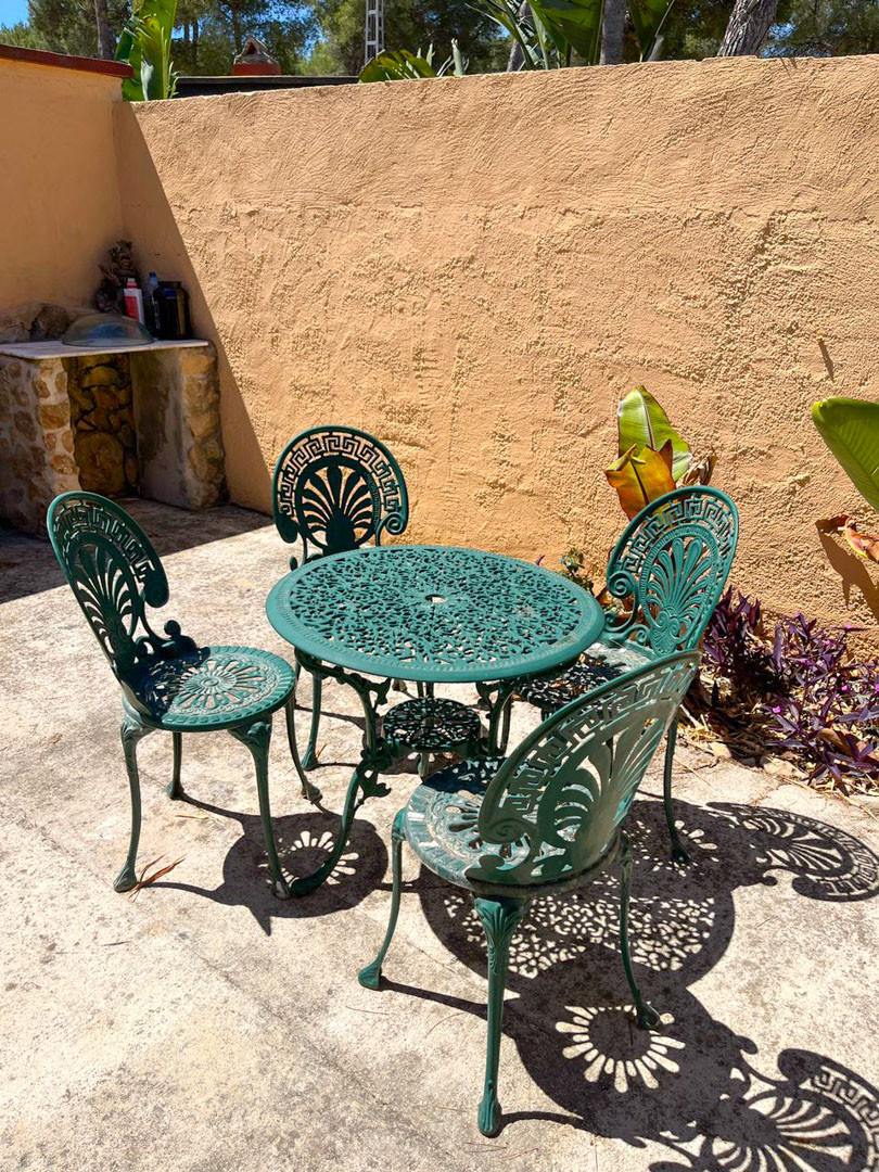 This villa is ideal for people who are looking for a quiet and peaceful environment, but still want to be a short distance from facilities. Due to its location in the Montgó Natural Park, you are in a very quiet area just a 5-minute drive from both Javea and Denia. The house consists of a lounge with large windows where you can enjoy the beautiful views of the Montgó, a living room with a fireplace, a dining room, a kitchen with a gas stove and an electric oven, a laundry room, two bedrooms, both with dressing rooms and mirrored wardrobes and a bathroom. The dining room gives access to a patio where there is a third bedroom. From the patio there is also a staircase that leads to the roof terrace. At the back of the villa is a guest apartment consisting of a living-dining room, a kitchen, a double bedroom and a bathroom. The apartment has a private entrance and private terrace, ideal for family or guests. There is also a garage with an adjacent workshop (which can be converted into a 5th bedroom) and a carport with space for two cars. On the east side of the villa is a 9×5 swimming pool with a surrounding terrace and a large covered dining area with seating for 10 around a Moroccan mosaic-tiled table. Gravel paths wind to the far corner of the plot where there is a fish pond and a bench. The villa has air conditioning in the master bedroom, gas heating, double glazing, an insulated roof, terracota floors, an electric gate and exterior lighting. Moreover, the entire plot is fenced. For hiking enthusiasts, hiking trails through the forest leave right from the villa leading to the nature reserve and to a viewpoint from where you can overlook the entire bay of Jávea. The entire plot is fenced and on the east side of the villa you look out onto a dense forest which guarantees complete privacy by the pool. A true paradise for nature lovers!