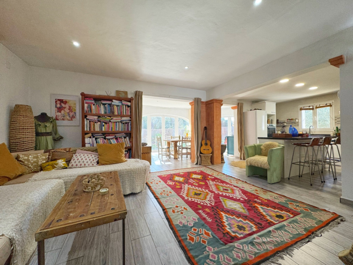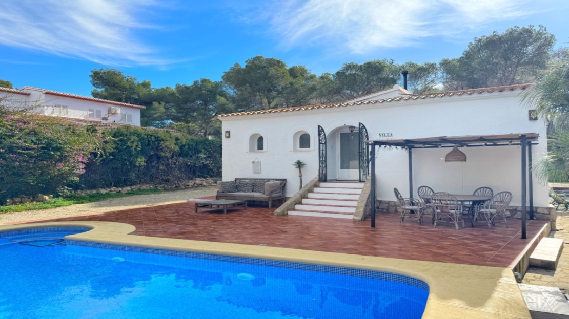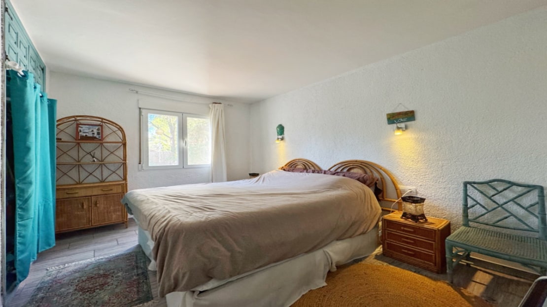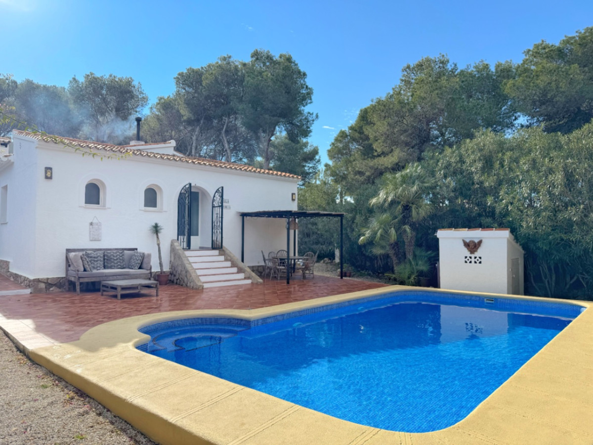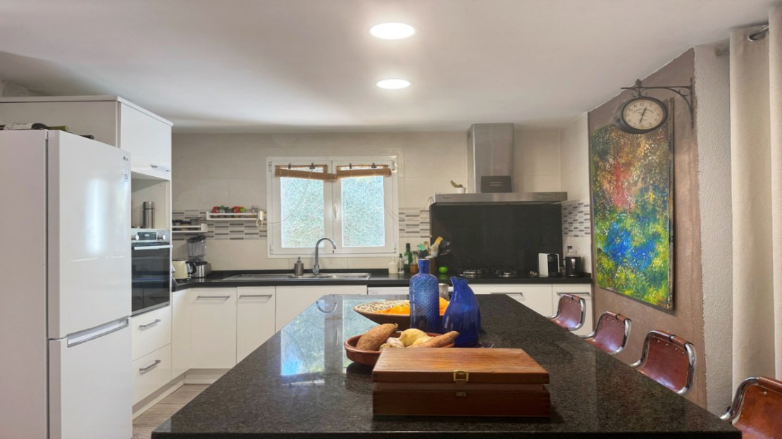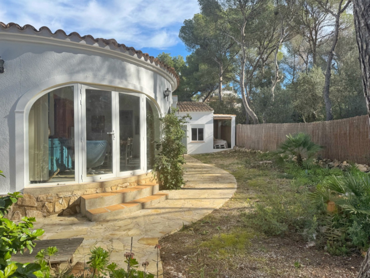 La Naya Real Estate presents this renovated villa, offering plenty of privacy, tranquility, and security. It is fully fenced, and across from the property, there is a green area with a small forest. The total plot covers 730 m² and is completely enclosed to ensure maximum privacy. The house has 4 bedrooms: one with a double bed, another with 2 single beds, and a children's room. There are 2 bathrooms (one en suite and another with a shower and bathtub) as well as a separate guest toilet. The living room features a fireplace and a cozy sitting area. The covered, glass-enclosed terrace (Naya) offers views of the garden. The open kitchen with an island is fully equipped. Outside, there is a saltwater pool with an outdoor shower, a waterproof pergola, a BBQ area, a chillout zone, and a children's play area. The main beach, Arenal, is just 15 minutes away.