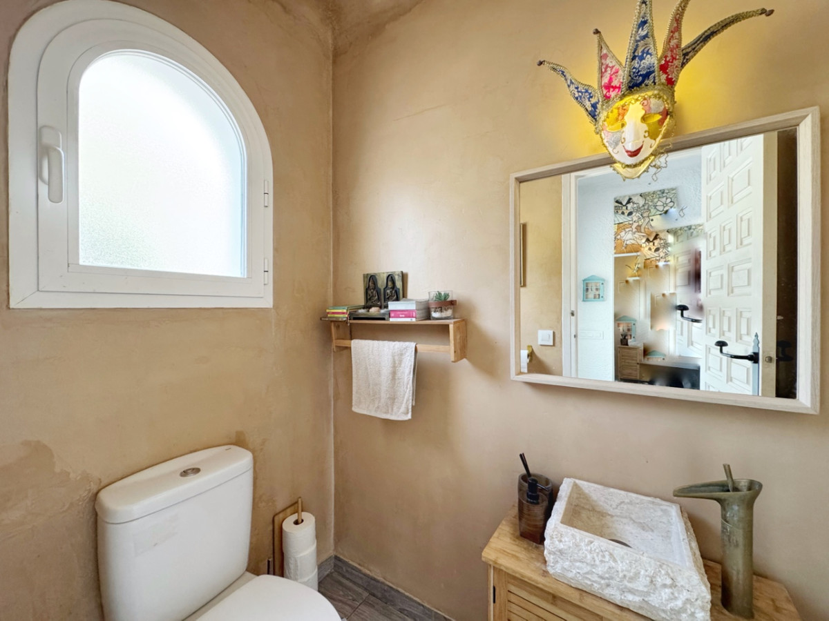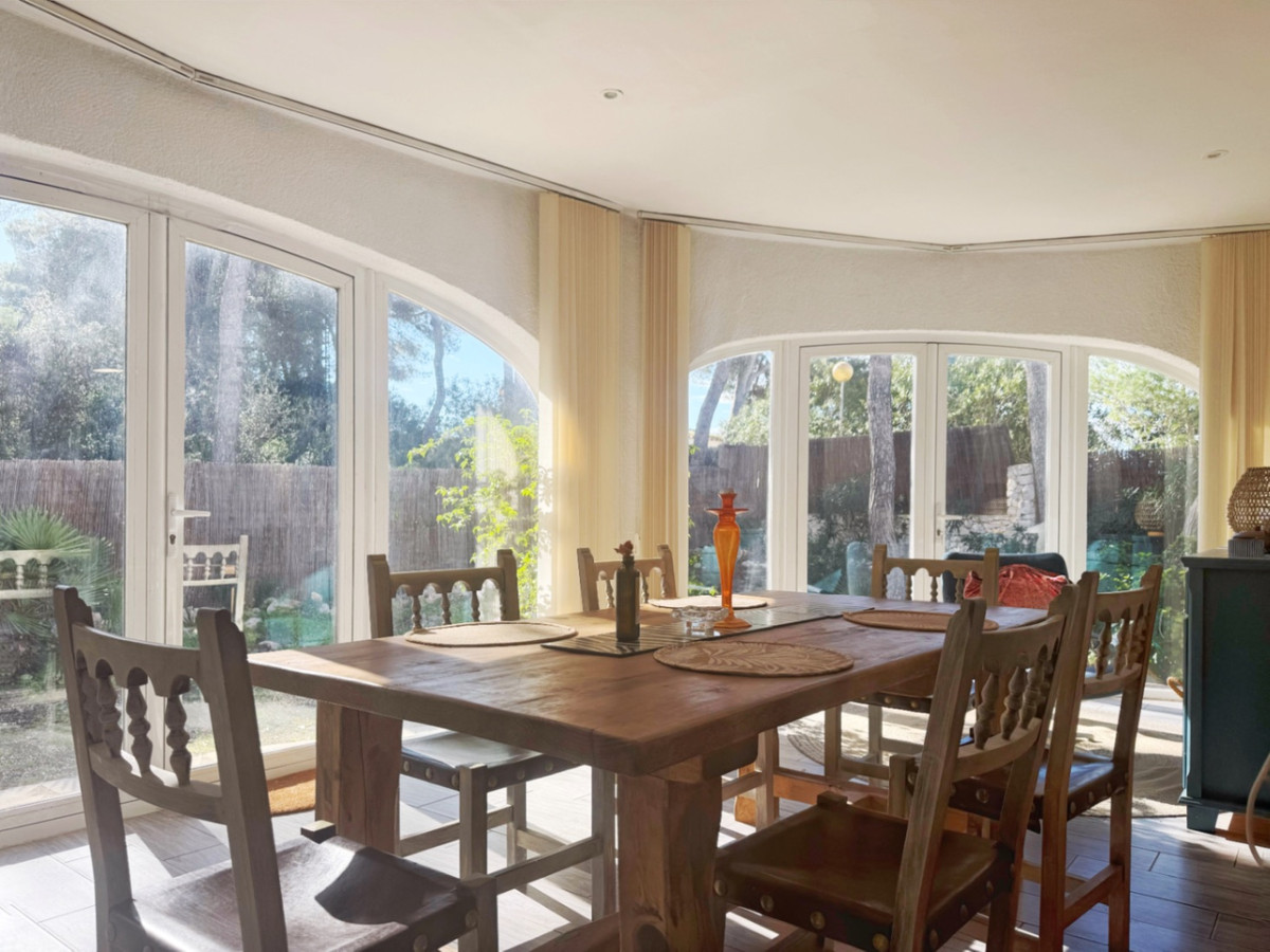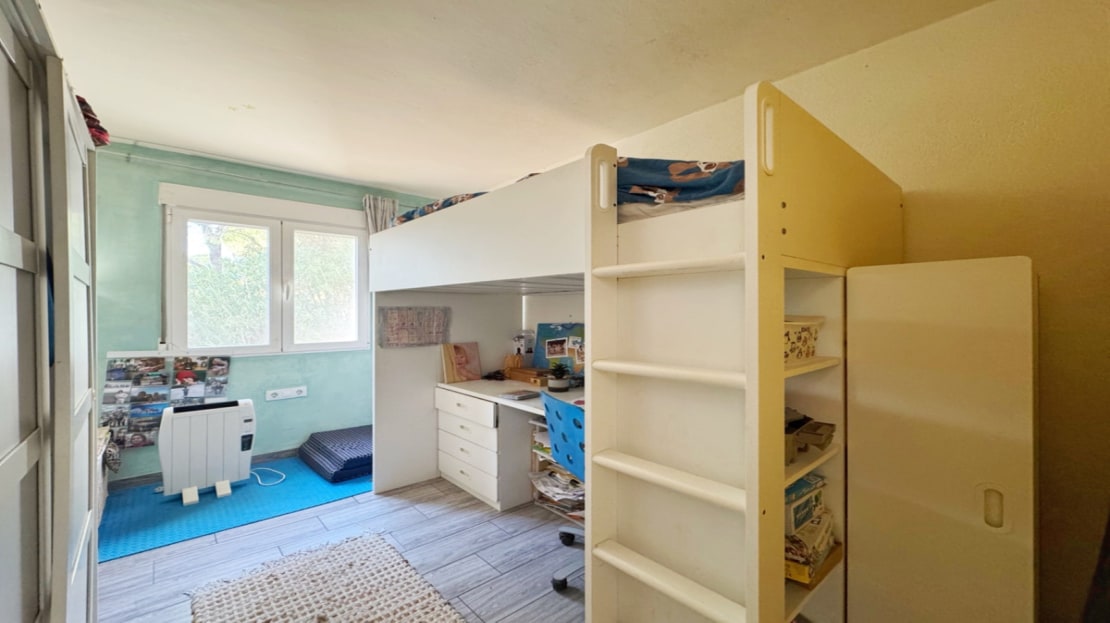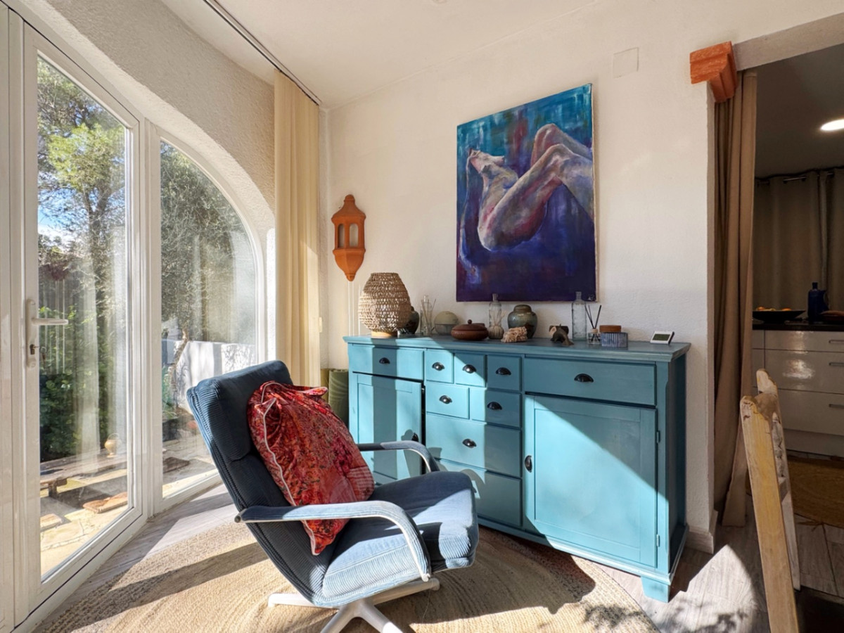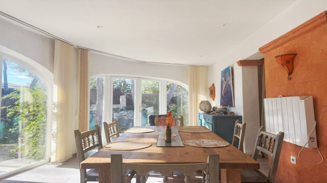 La Naya Real Estate presents this renovated villa, offering plenty of privacy, tranquility, and security. It is fully fenced, and across from the property, there is a green area with a small forest. The total plot covers 730 m² and is completely enclosed to ensure maximum privacy. The house has 4 bedrooms: one with a double bed, another with 2 single beds, and a children's room. There are 2 bathrooms (one en suite and another with a shower and bathtub) as well as a separate guest toilet. The living room features a fireplace and a cozy sitting area. The covered, glass-enclosed terrace (Naya) offers views of the garden. The open kitchen with an island is fully equipped. Outside, there is a saltwater pool with an outdoor shower, a waterproof pergola, a BBQ area, a chillout zone, and a children's play area. The main beach, Arenal, is just 15 minutes away.