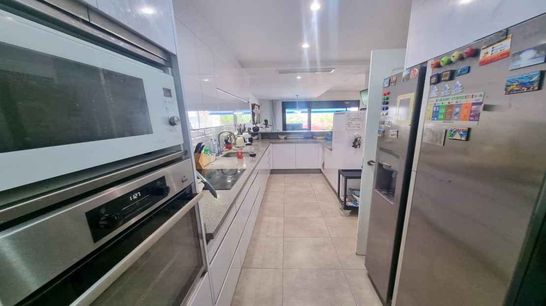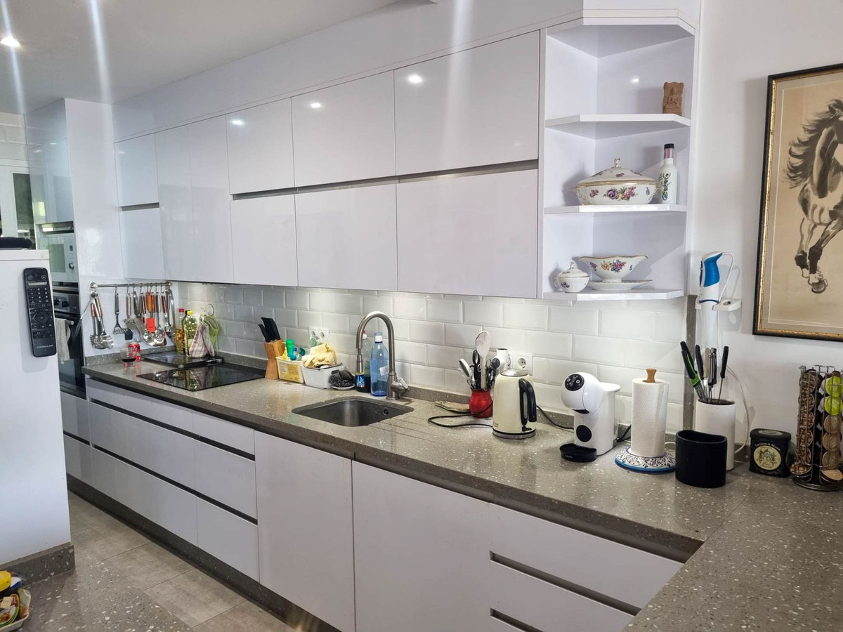 The townhouse includes two beautifully appointed bathrooms, featuring contemporary fixtures and finishes, as well as a convenient guest toilet for your visitors. The heart of the home is the recently renovated kitchen, which is a chef's delight. It comes equipped with top-of-the-line appliances, including an American fridge, making it perfect for both daily cooking and entertaining guests. The furniture is optional, allowing you to personalize the space to your taste.