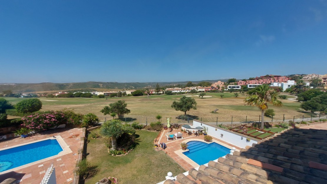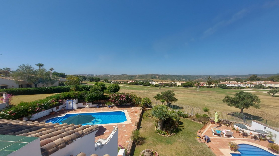 South facing front line Golf Villa / Semi-detached house with private garage + swimming pool. Recently modernised Kitchen + bathroom.