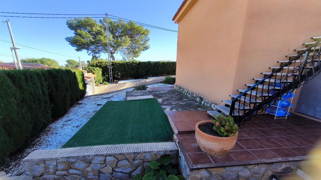 • Three Main Bedrooms: The main floor features three cozy bedrooms, one with an en-suite bathroom, ensuring unmatched privacy and comfort.• Elegant Bathrooms: In addition to the en-suite, the house includes a second full bathroom, carefully designed to meet the needs of the entire family.• Independent and Functional Kitchen: A fully equipped kitchen combining functionality and style, perfect for unleashing your culinary creativity.• Spacious Living-Dining Area: A bright and expansive living-dining room that opens onto a charming glass-enclosed terrace, perfect for relaxation and enjoying stunning views.• Additional Independent Space: Includes a stylish room with a private bathroom and separate entrance, ideal for hosting guests or having an exclusive area.• Garage and Private Parking: The property offers a spacious garage and private parking area, ensuring security and convenience.• Sophisticated Outdoor Spaces: Highlights include an inviting BBQ area, perfect for gatherings, and an elegant poolside space to refresh and enjoy sunny days.