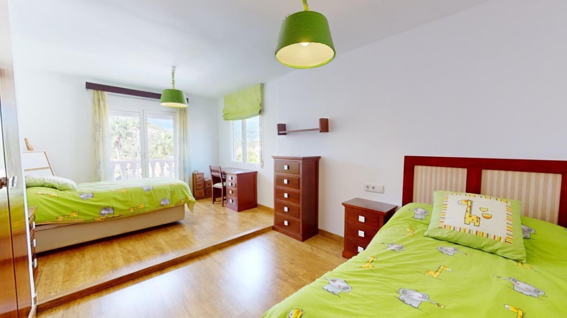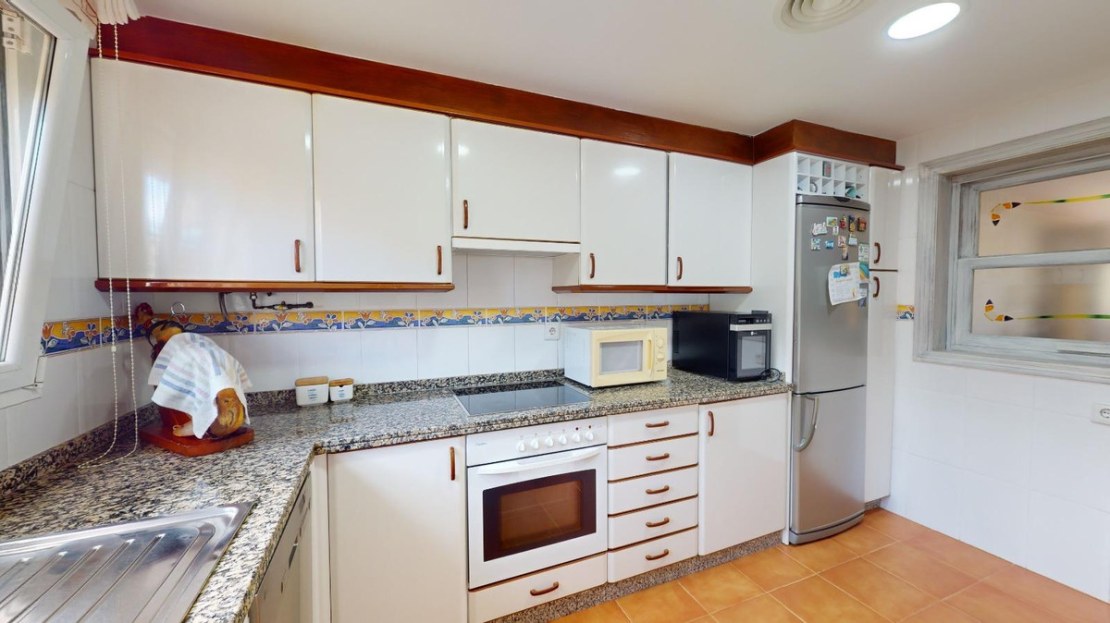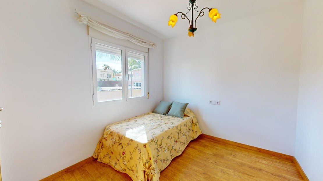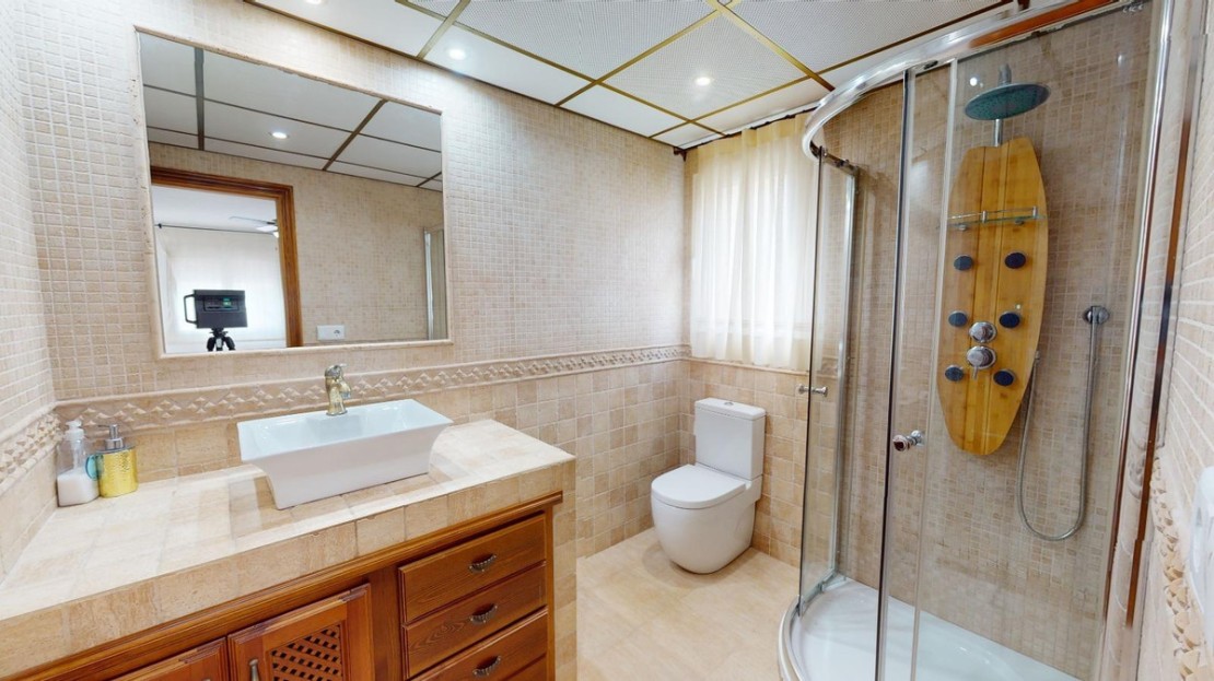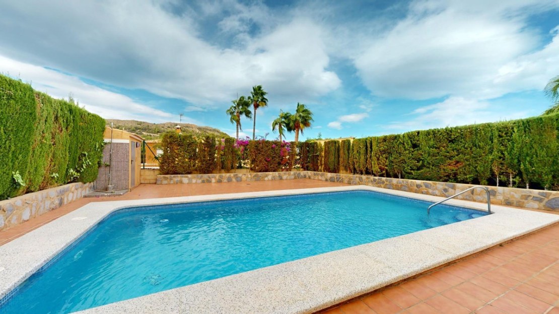 It has 4 very spacious bedrooms with built-in wardrobes. Separate kitchen and 3 bathrooms of different designs and a toilet outside. Large living room with marble floor, fireplace and a covered terrace where you can make your summer evenings magical. It has an enclosed gallery outside for the washing machine and dryer. Outdoor wood-burning barbecue, solarium next to the pool and a covered porch with capacity for 2 vehicles.~Very quiet residential area, close to restaurants and with a city bus stop just 5 minutes away.