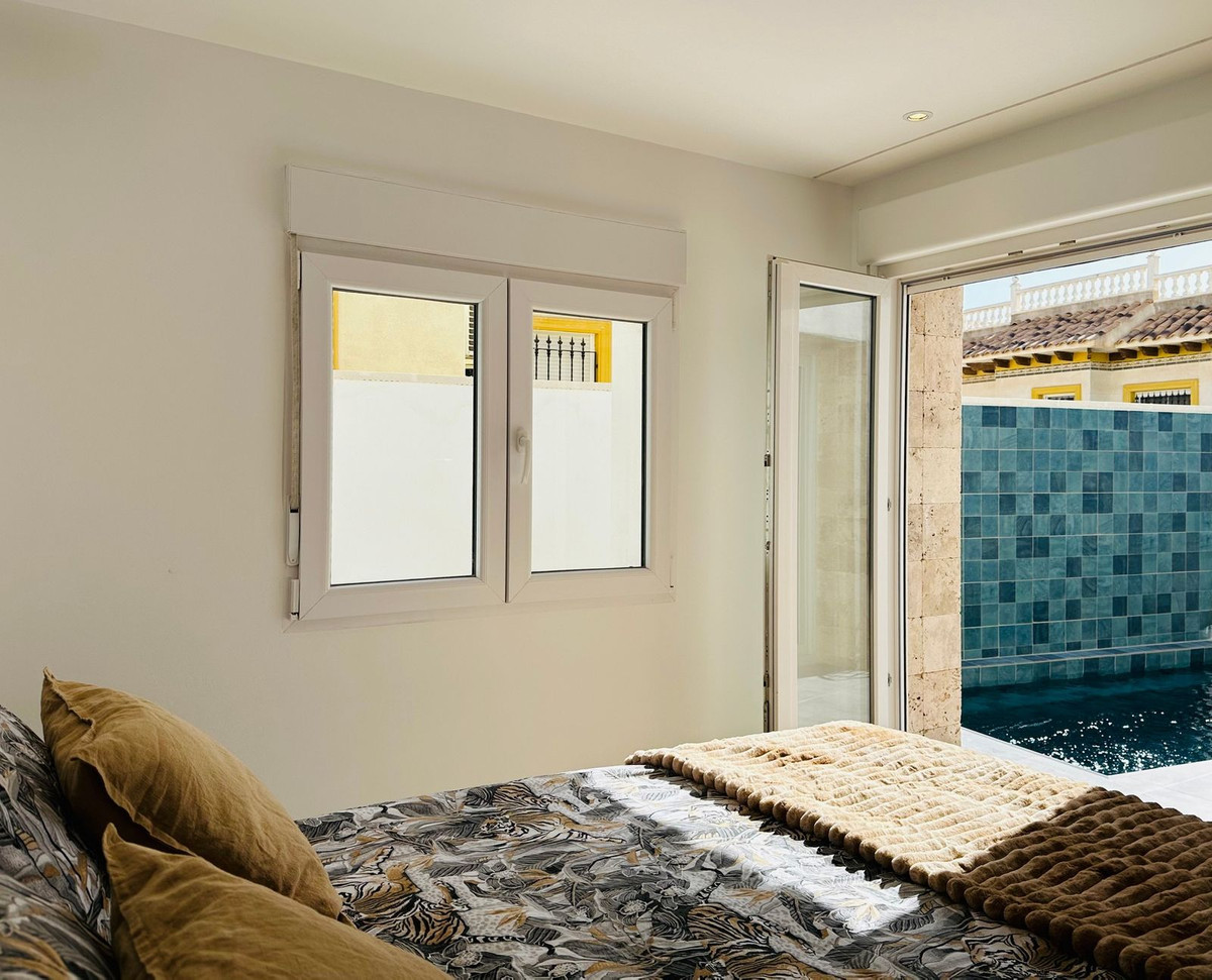 We present to you the Fabulous Detached Villa located in La Zenia and within walking distance to amenities and the beaches. The property consists of 4 bedrooms with wardrobes, 3 bathrooms, living/dining area and a fully fitted kitchen with utility area. The property benefits from private terraced areas, garden, air conditioning, roof solarium and off road parking. The property also offers storage and a private swimming pool.