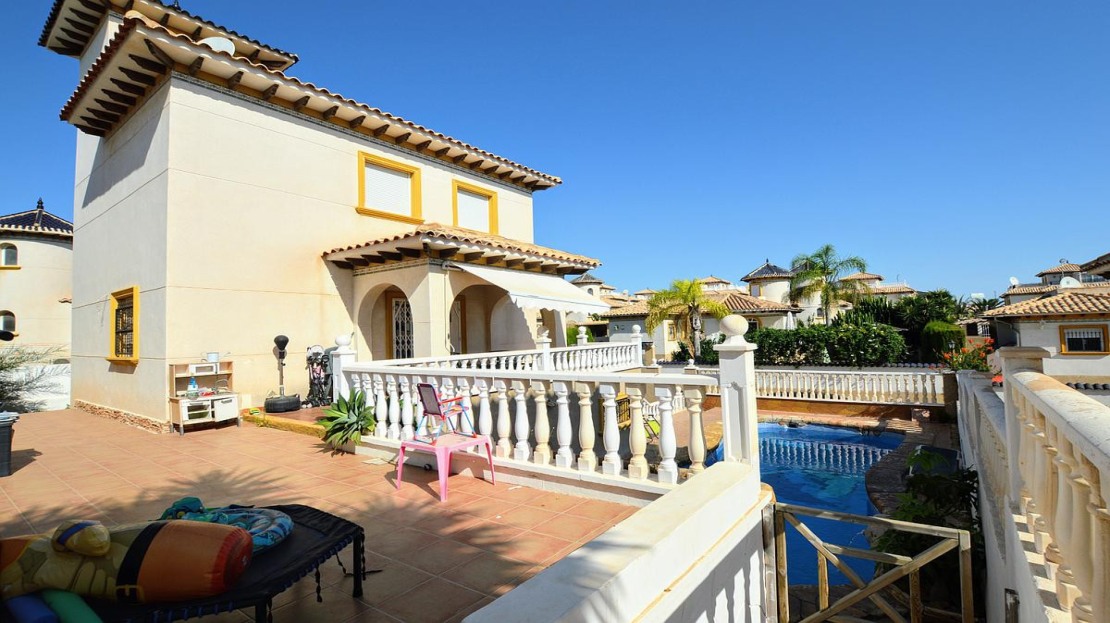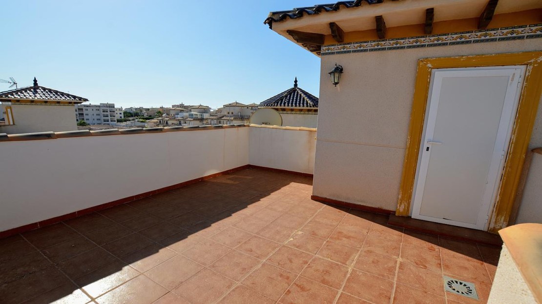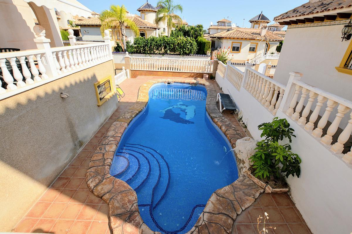 We present to you the Fabulous Detached Villa located in La Zenia and within walking distance to amenities and the beaches. The property consists of 4 bedrooms with wardrobes, 3 bathrooms, living/dining area and a fully fitted kitchen with utility area. The property benefits from private terraced areas, garden with pergola, air conditioning, roof solarium and is fully furnished. An added feature is the garage has been converted into an apartment which offers a living room, kitchen and bedroom with bathroom. The property also offers storage and a private swimming pool.