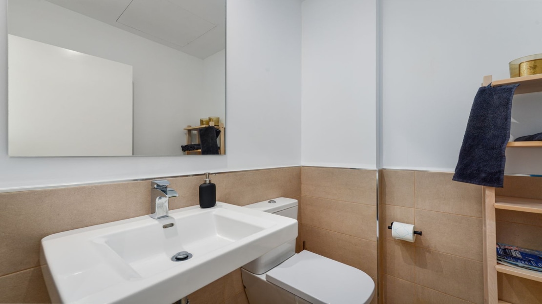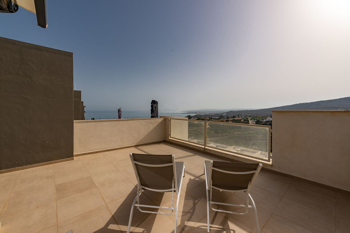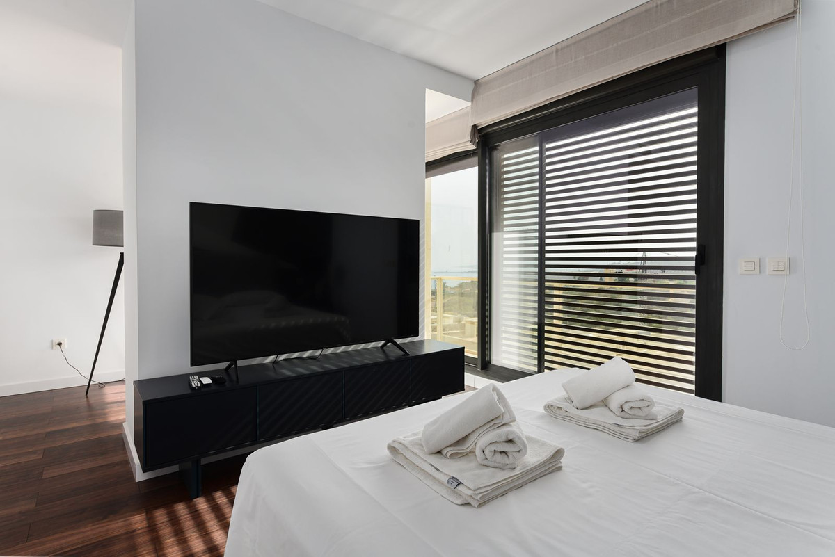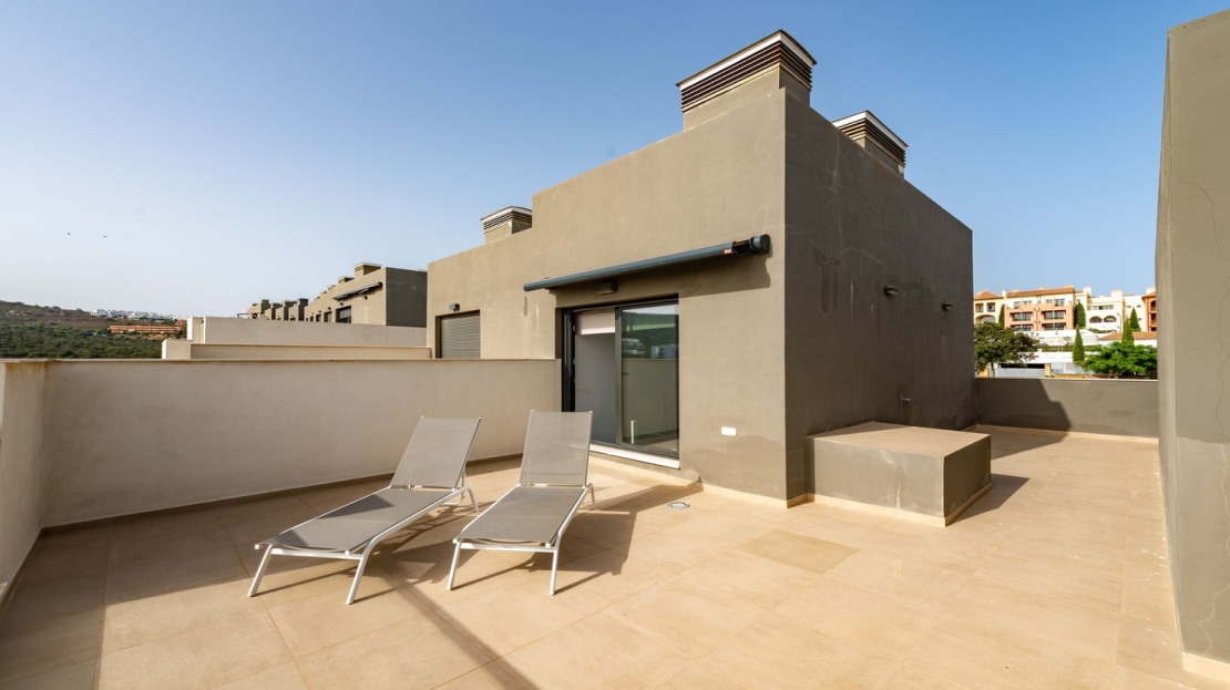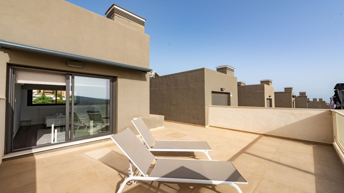 This luxury town house is located in the beautiful area of Bahía de las Rocas, Manilva, Málaga. With its stunning views of the mountains and the sea, this property offers a peaceful and idyllic setting for residents to enjoy.