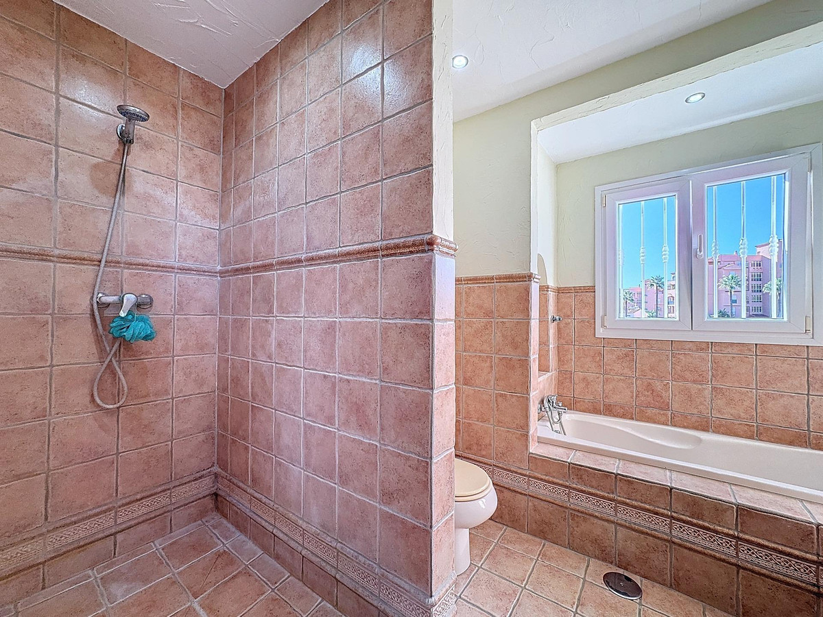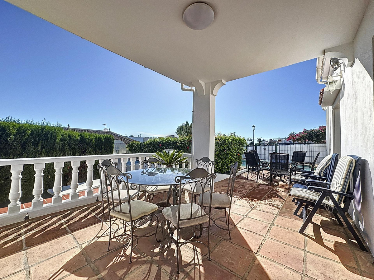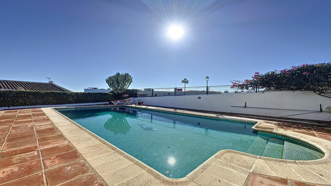 We present to you this beautiful Andalusian villa located in a calm and pleasant community just 350 meters from the Mediterranean Sea.