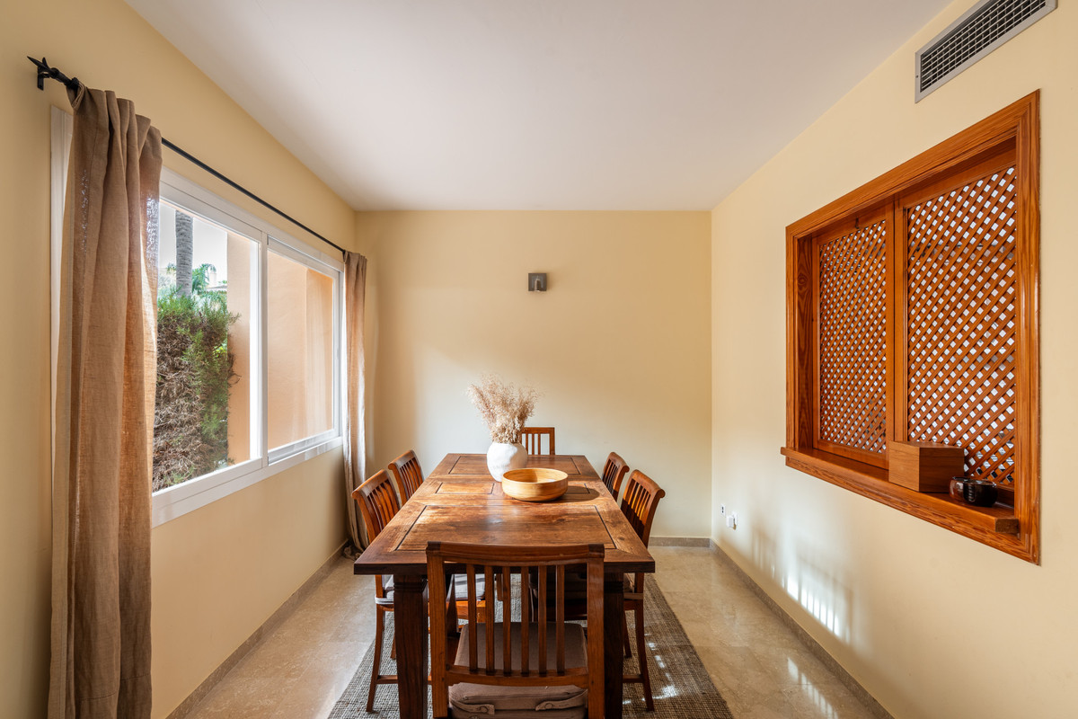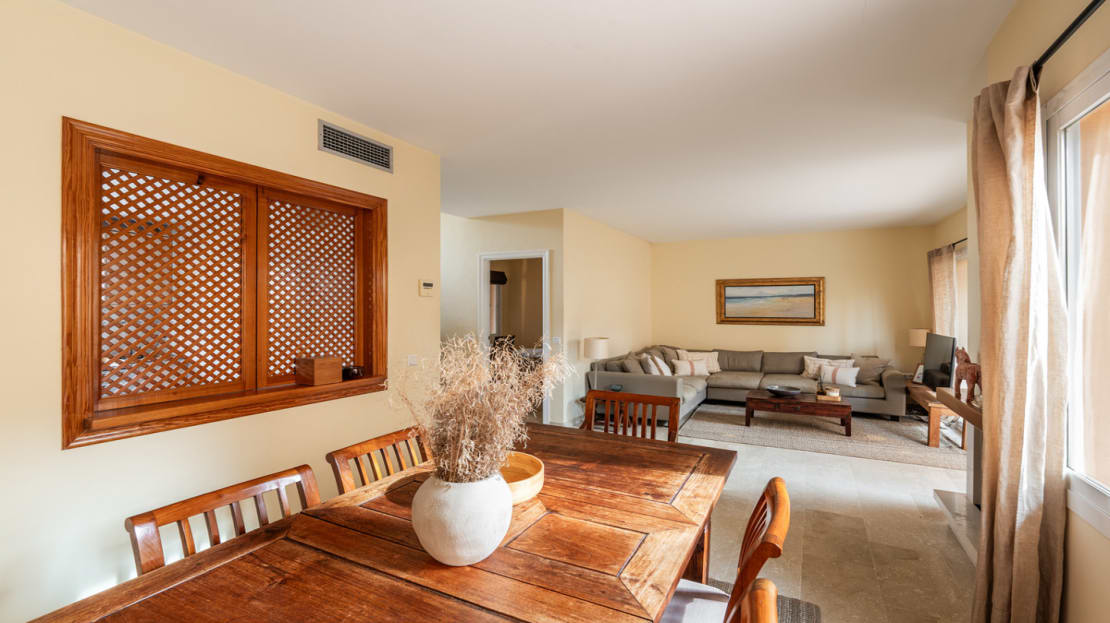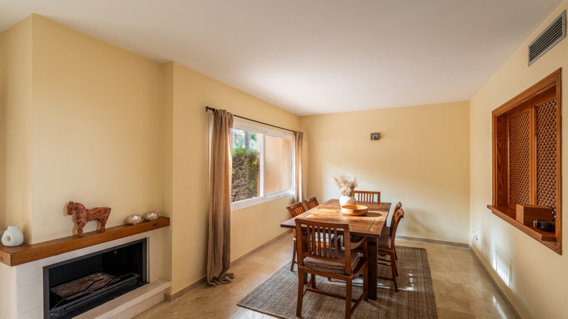 The living and dining spaces are bright and airy. The terrace is an ideal extension of the interior, offering a delightful setting for outdoor dining or relaxing while admiring the mountain views on the rooftop.