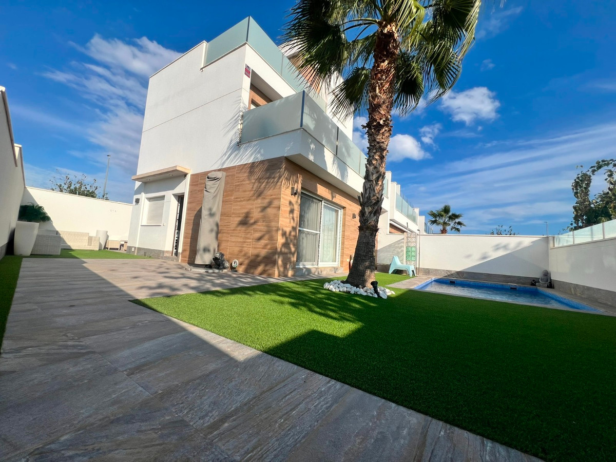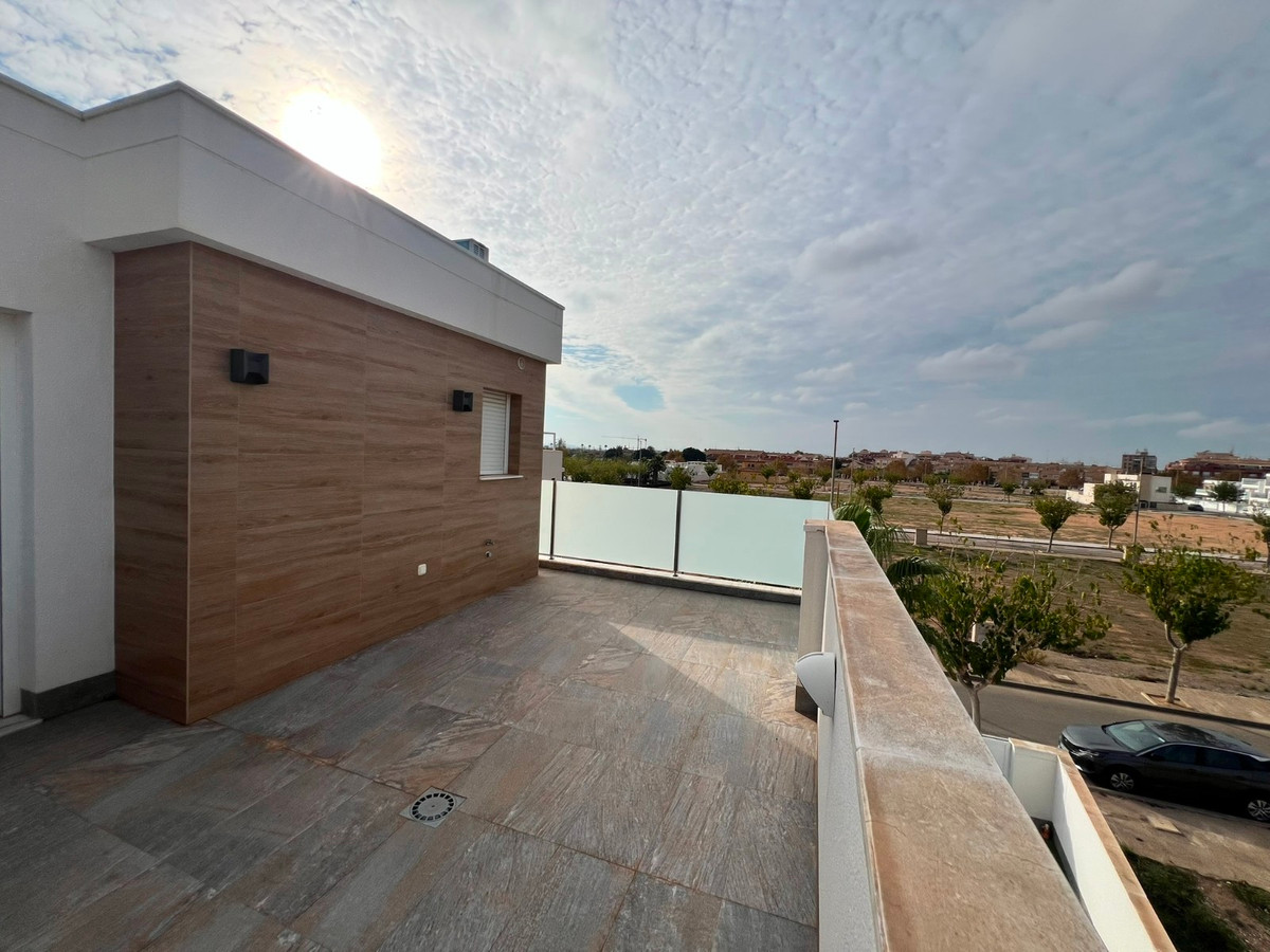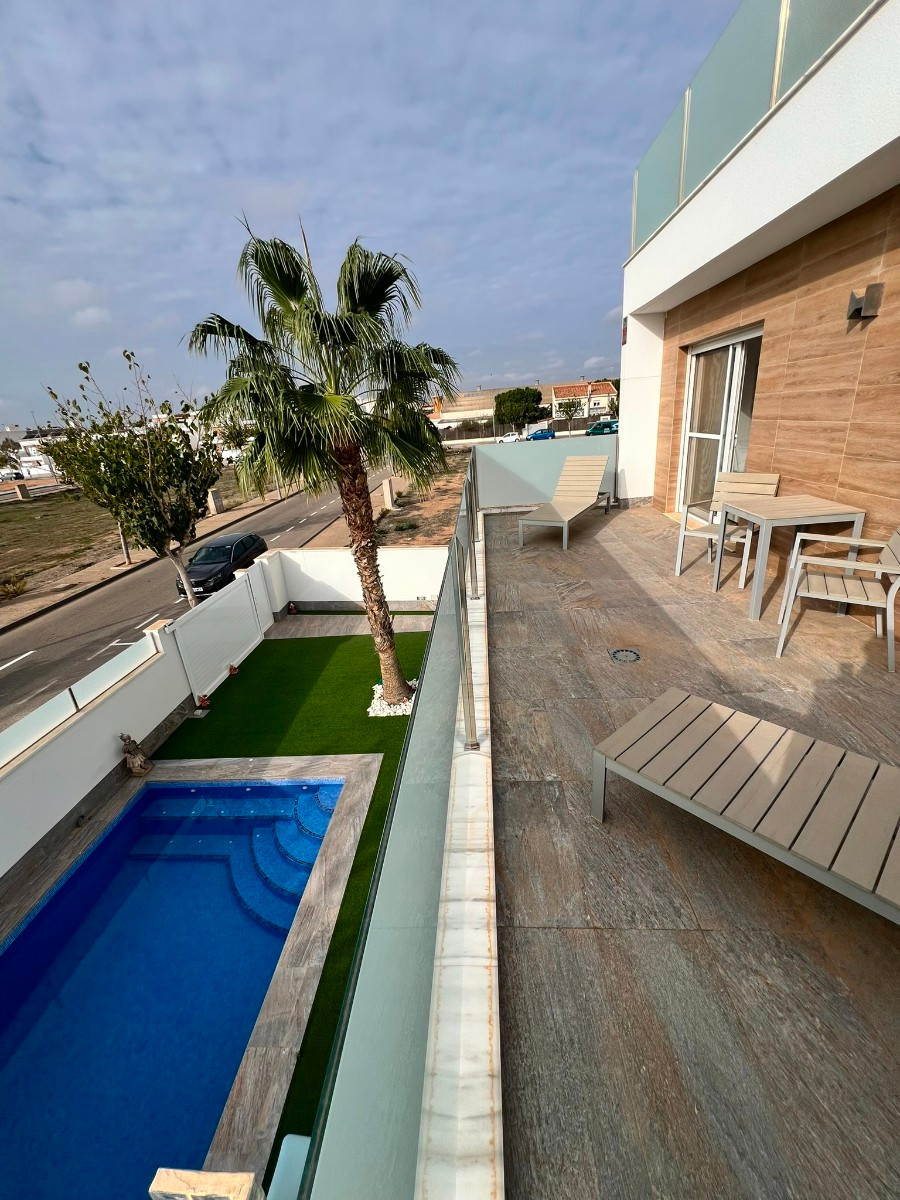 A new villa in the heart of Pilar de la Horadada, close to the sports center and all of the many amenities that Pilar de la Horadada has to offer. This 4 bedroom villa has been built to a very high standard and has sea and mountian views. The property has its own pool and a large garden area for entertaining. The long beaches of La Torre de la Horadada are only 2 km bicycle ride from the property along the cycle lane.