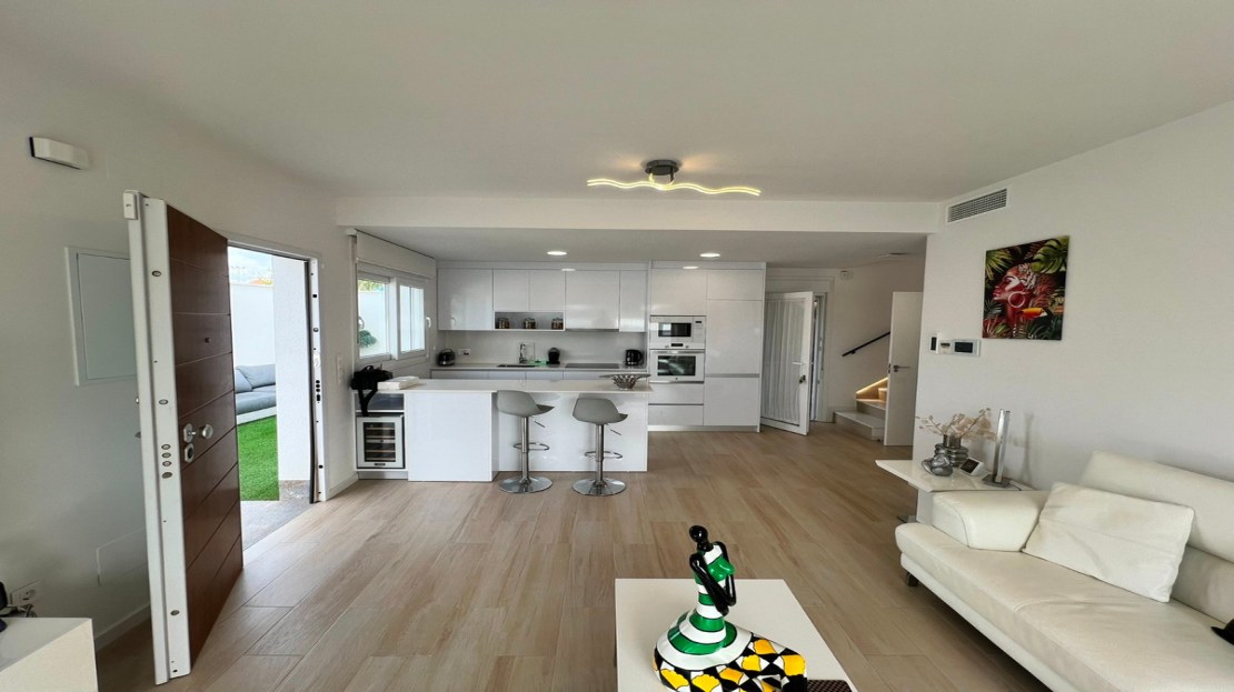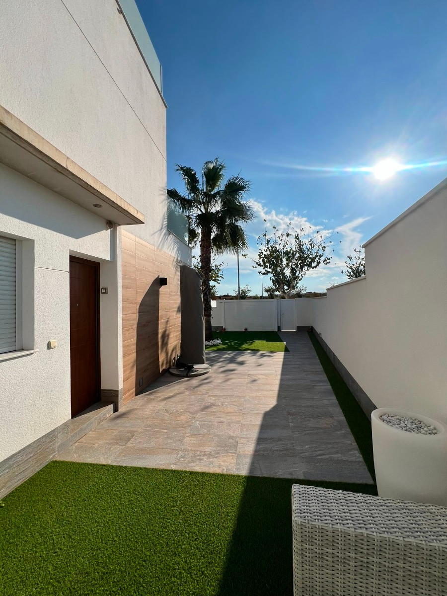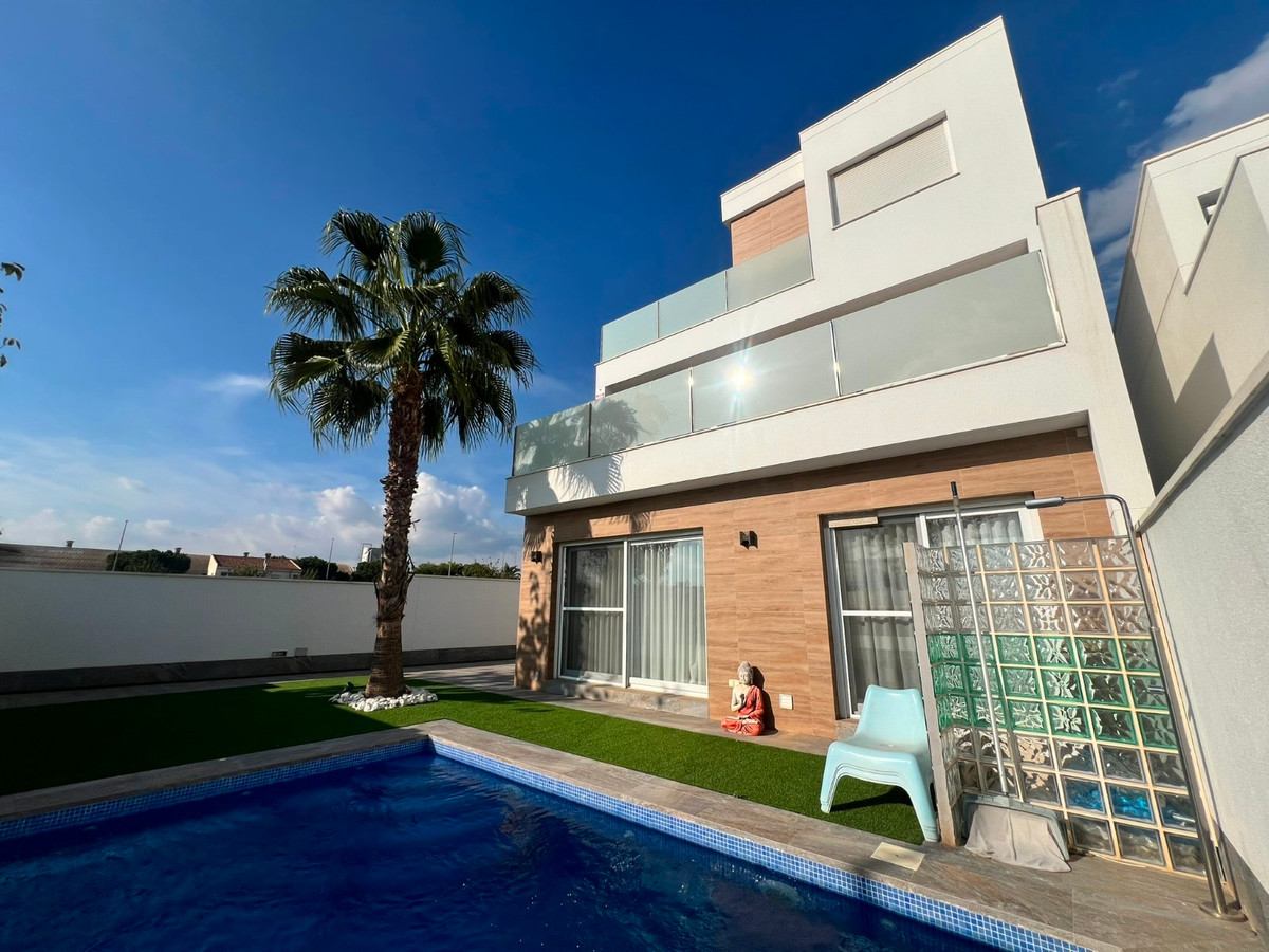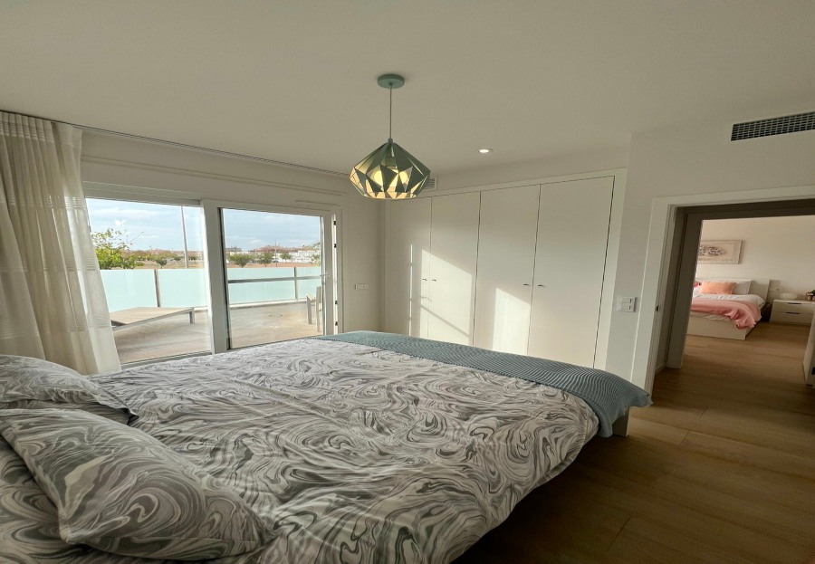 A new villa in the heart of Pilar de la Horadada, close to the sports center and all of the many amenities that Pilar de la Horadada has to offer. This 4 bedroom villa has been built to a very high standard and has sea and mountian views. The property has its own pool and a large garden area for entertaining. The long beaches of La Torre de la Horadada are only 2 km bicycle ride from the property along the cycle lane.