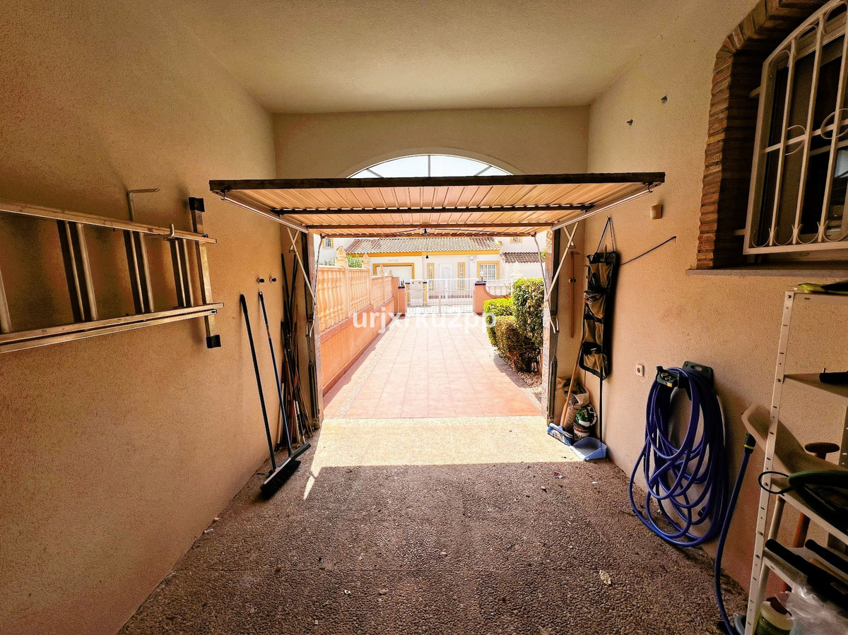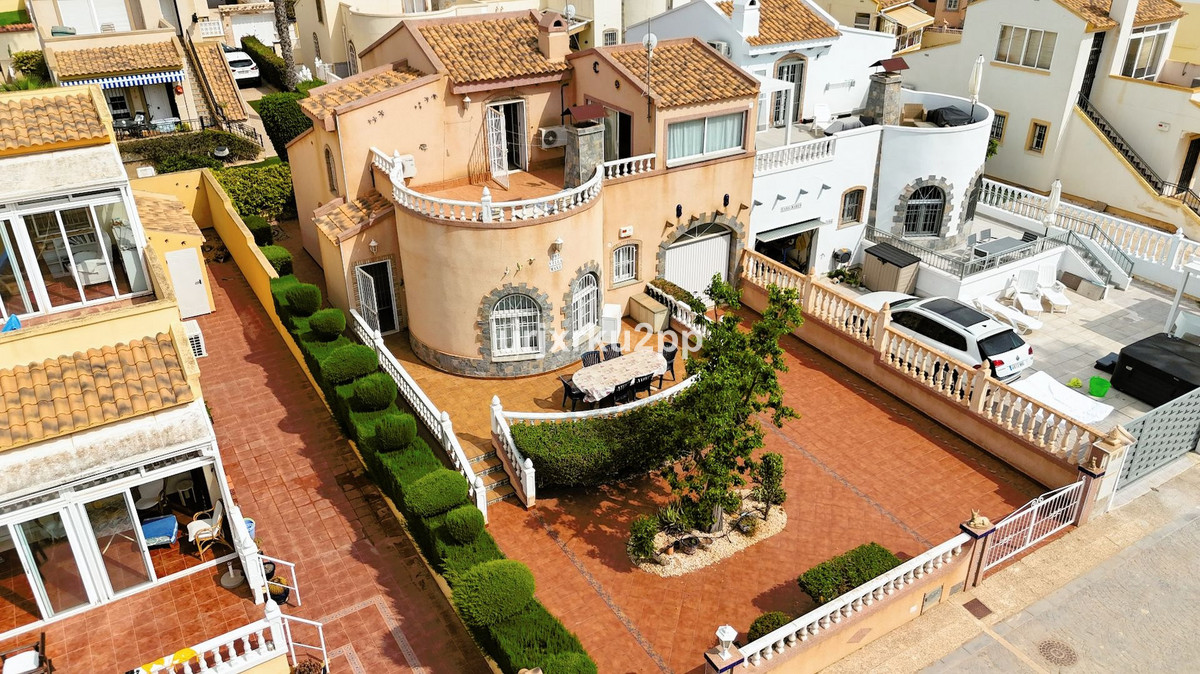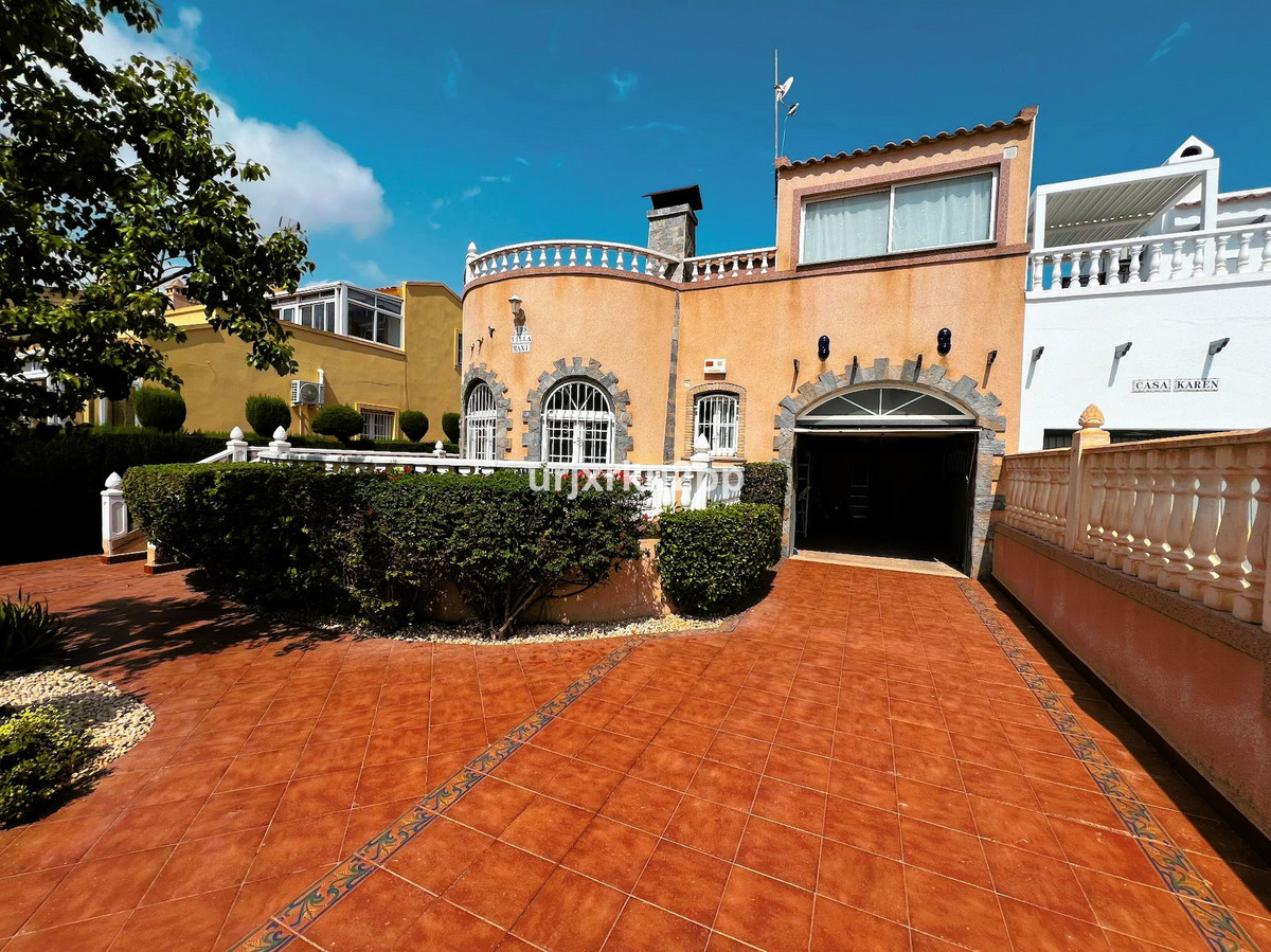 Charming 3 (4)Bed Link Detached Villa With Room For Private Pool. In the heart of Playa Flamenca, this delightful 3-bedroom, 2-bathroom property offers a perfect blend of comfort and convenience. On the ground floor, you’ll find a spacious open-plan living area with fireplace that seamlessly integrates the kitchen, ideal for both entertaining and daily family life. Two bedrooms and a shared bathroom complete this level, providing easy access for guests or family members.