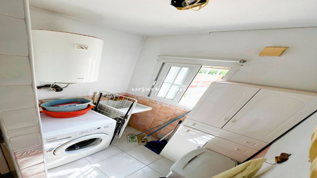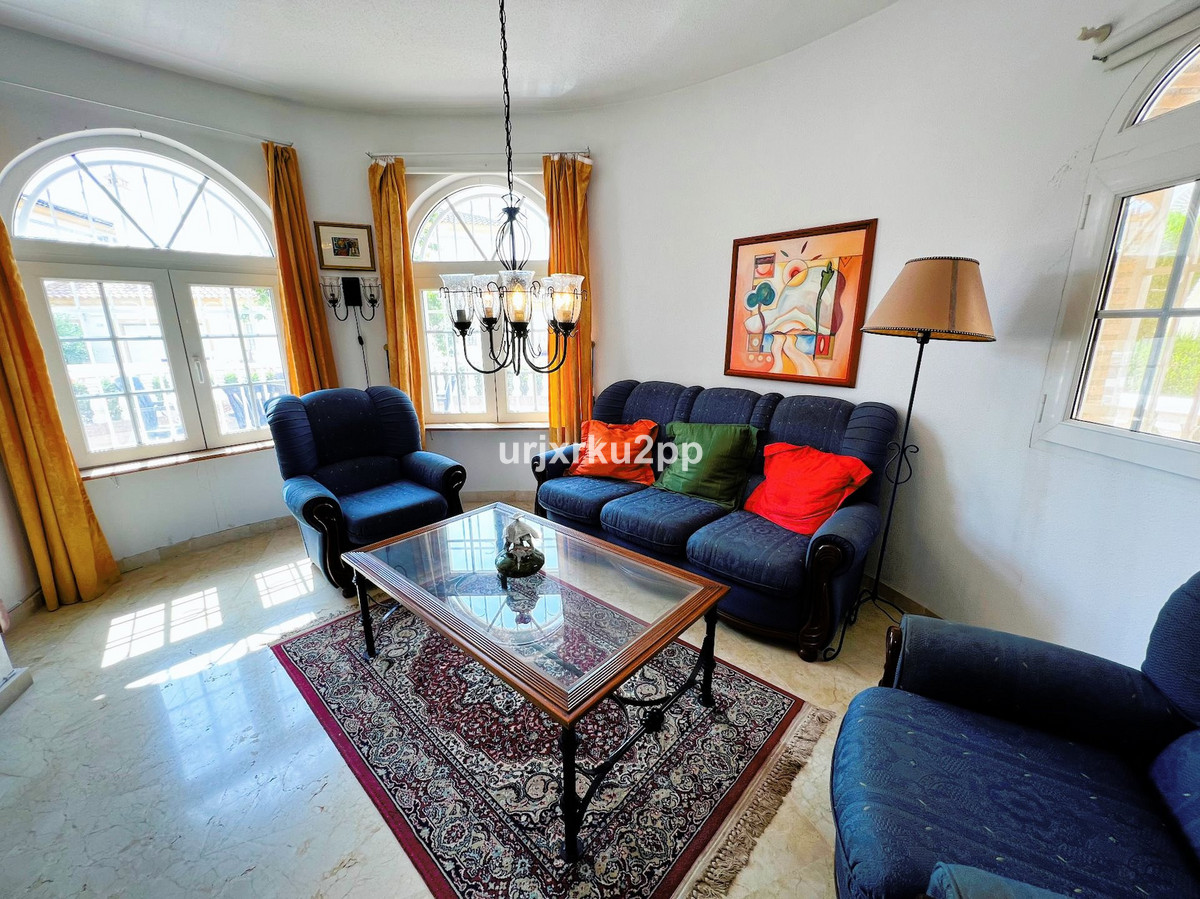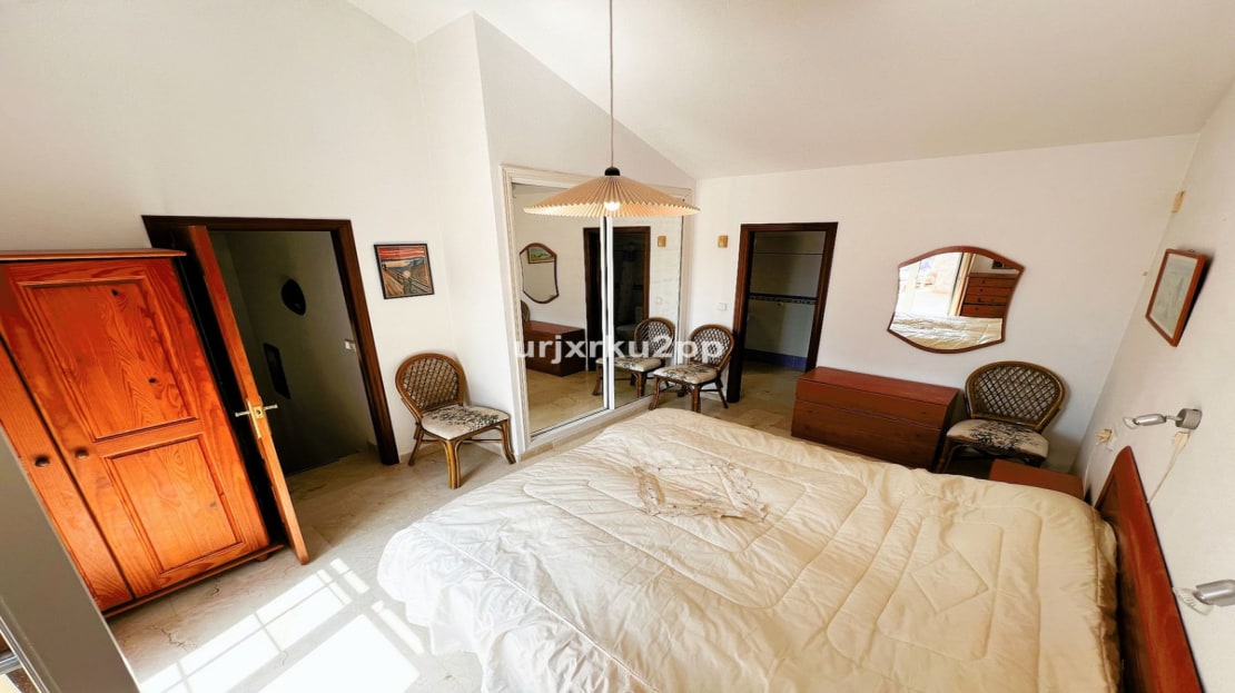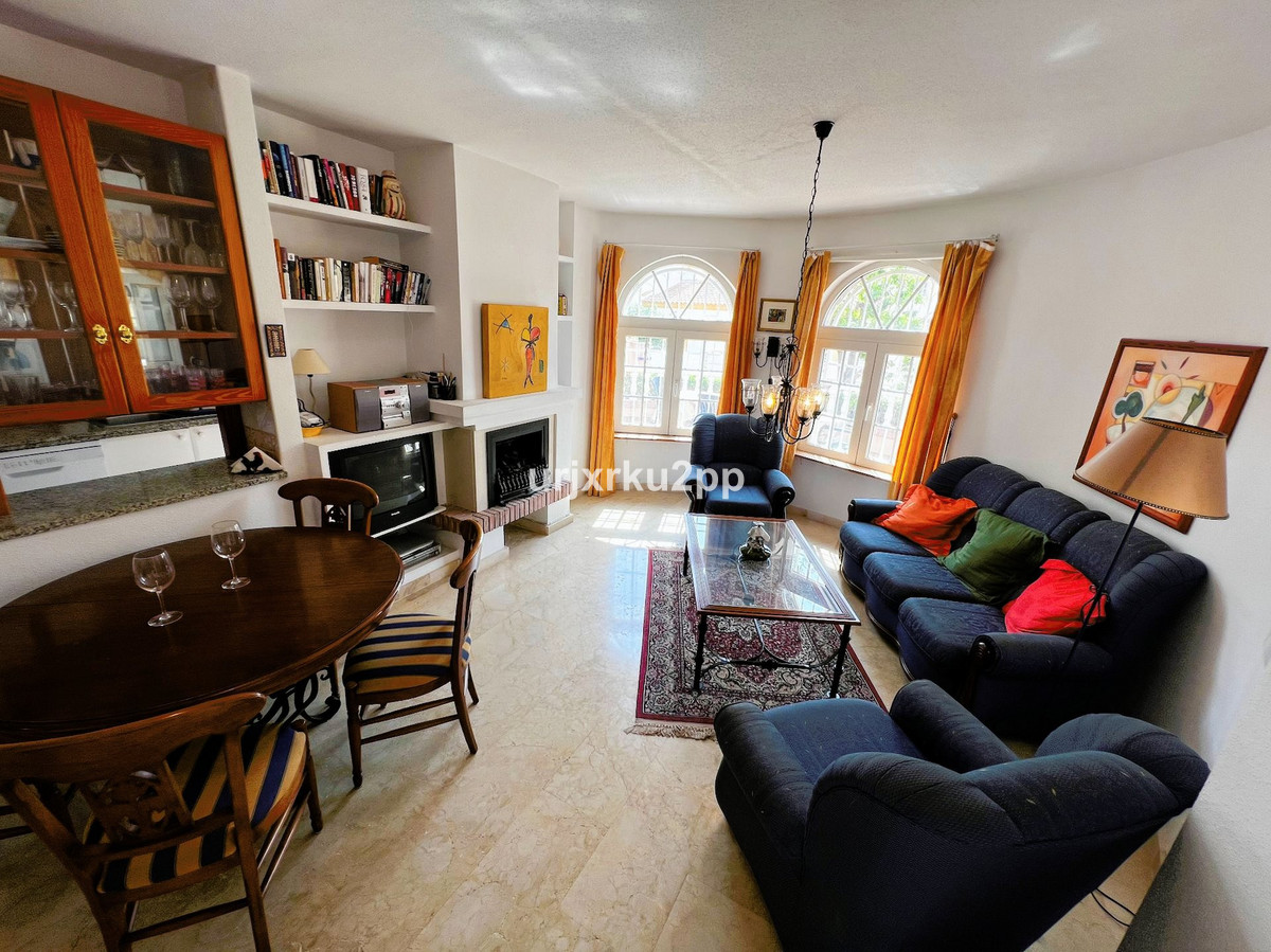 Charming 3 (4)Bed Link Detached Villa With Room For Private Pool. In the heart of Playa Flamenca, this delightful 3-bedroom, 2-bathroom property offers a perfect blend of comfort and convenience. On the ground floor, you’ll find a spacious open-plan living area with fireplace that seamlessly integrates the kitchen, ideal for both entertaining and daily family life. Two bedrooms and a shared bathroom complete this level, providing easy access for guests or family members.