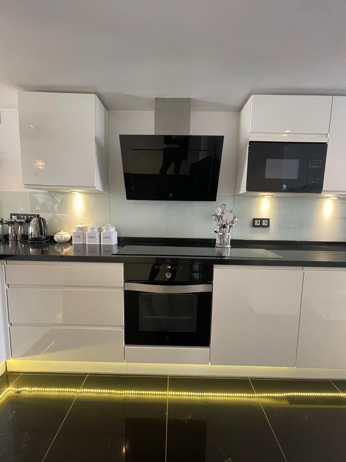 As you enter you enter the property you are greeted by an open plan spacious living area complete with a contemporary fully fitted kitchen with attention to details such as led strip lighting and cabinet up lighters.
