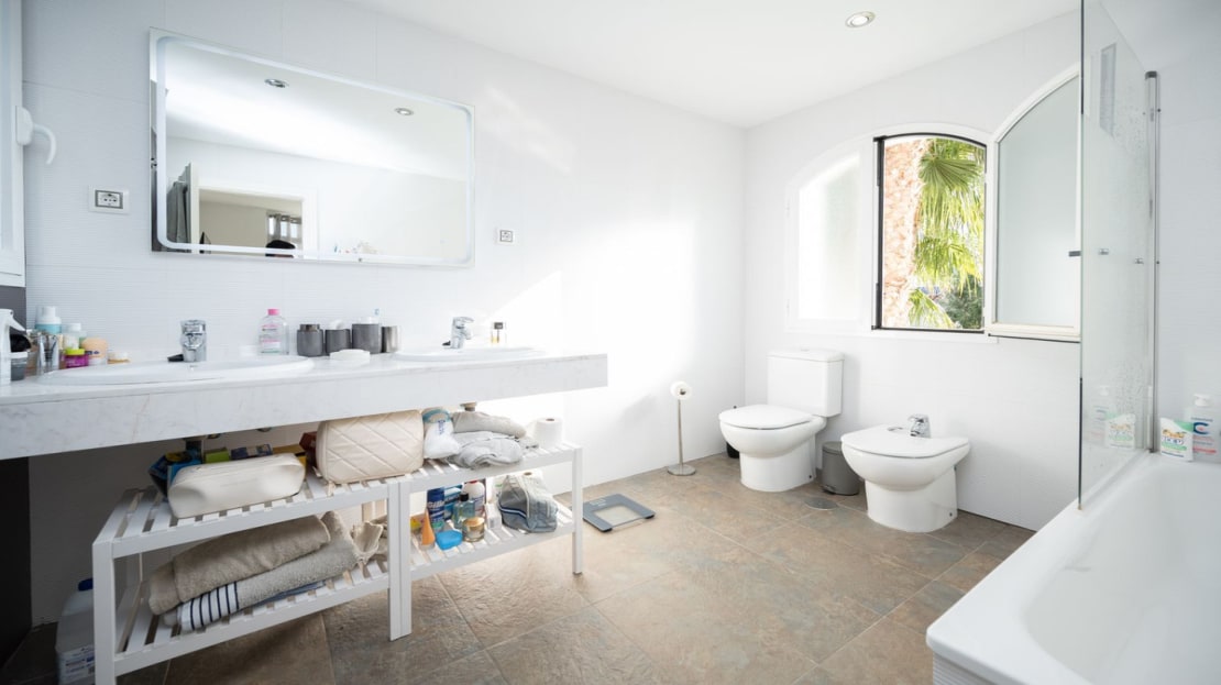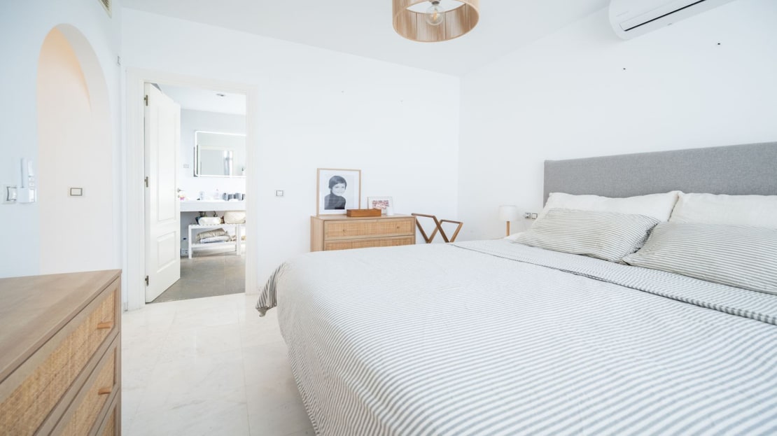 On the main entrance, ground level we have a beautiful master bedroom with dressing area including his and her wardrobes. Their is a large en-suite bathroom and from the main bed you can wake up to a wonderful south west sea view. On this level you have a guest toilet at the entrance.
