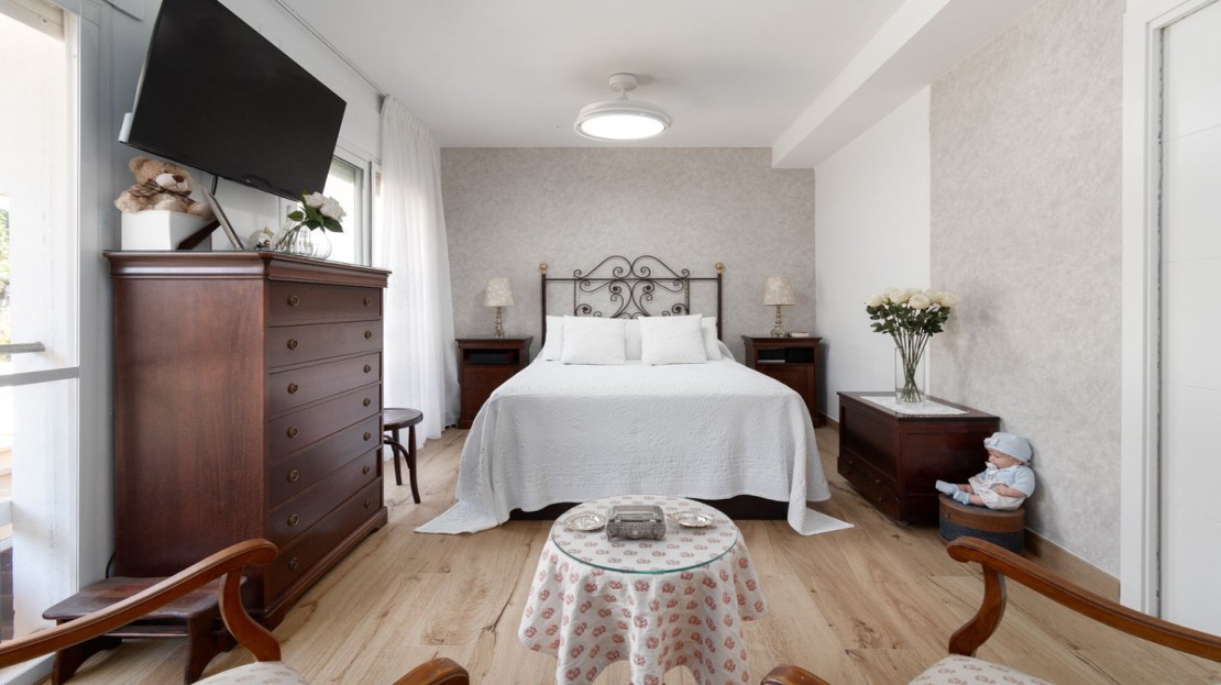 On the first floor there is a spacious living room, with access to a covered terrace and access to the upper park of the urbanization. There is also a toilet and a fully equipped kitchen next to a very cozy porch where you can spend the hot summer nights having a drink with friends.